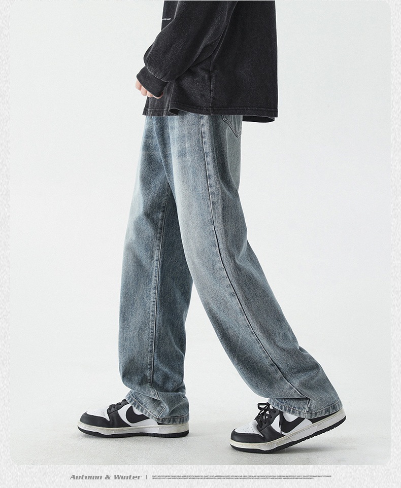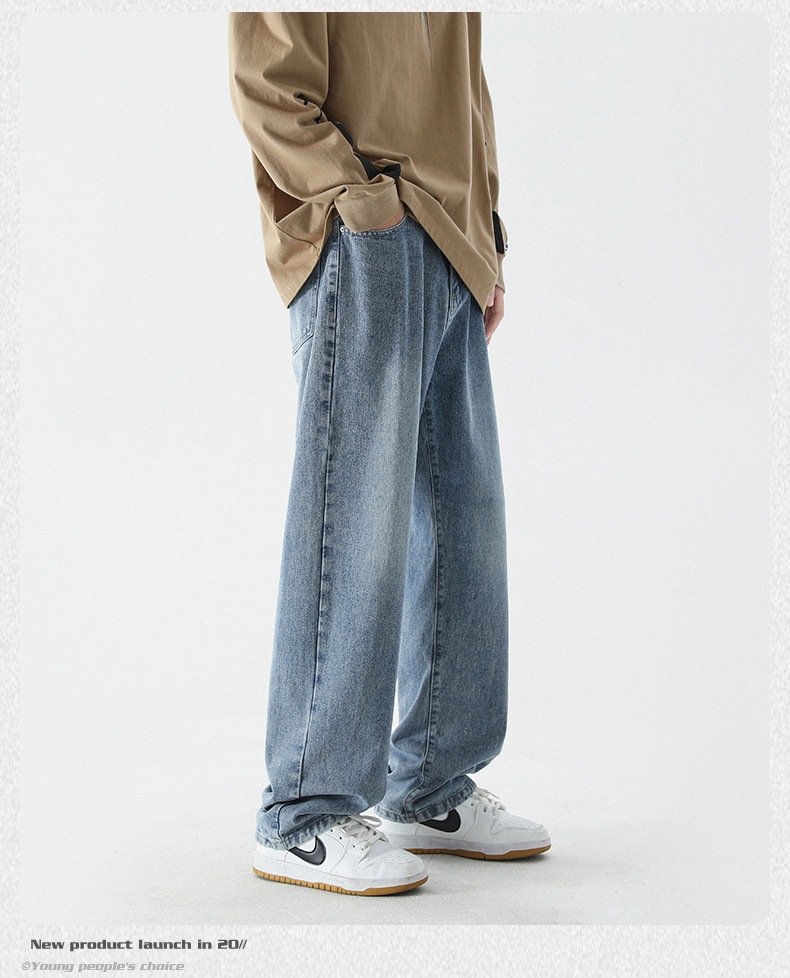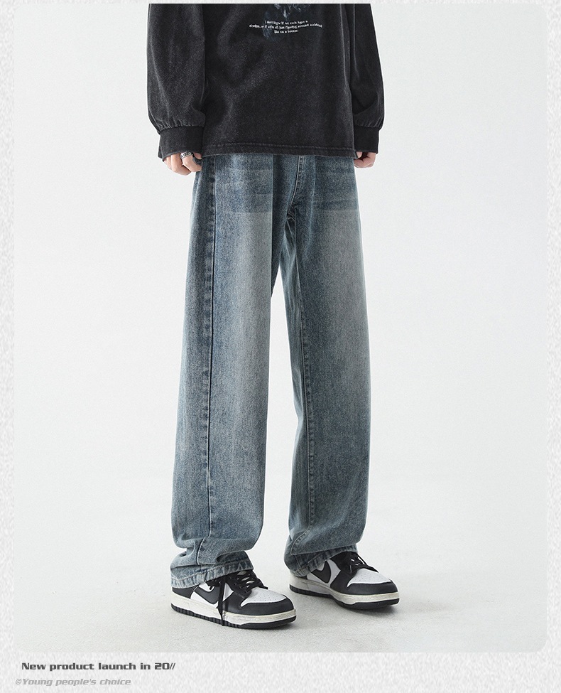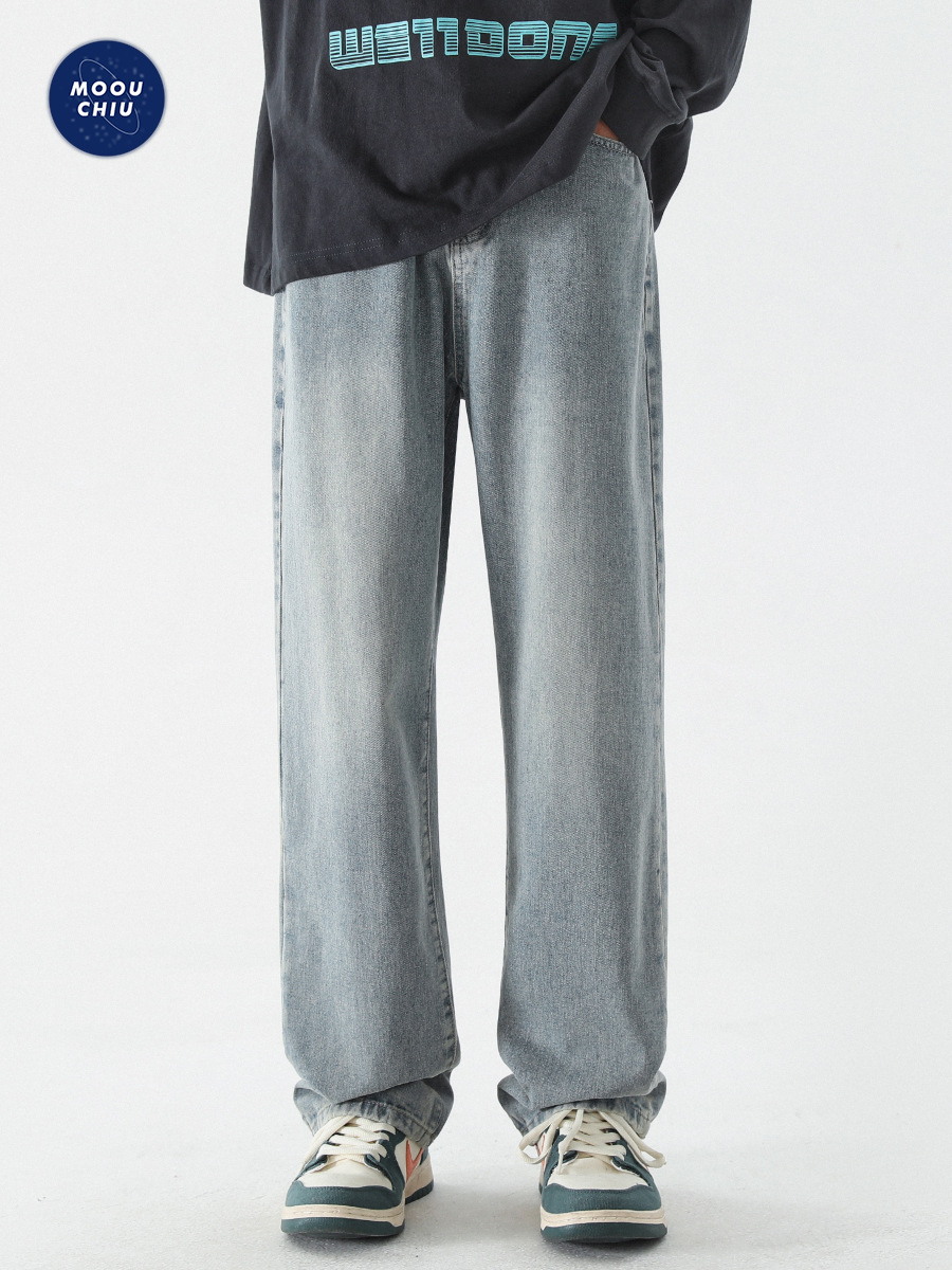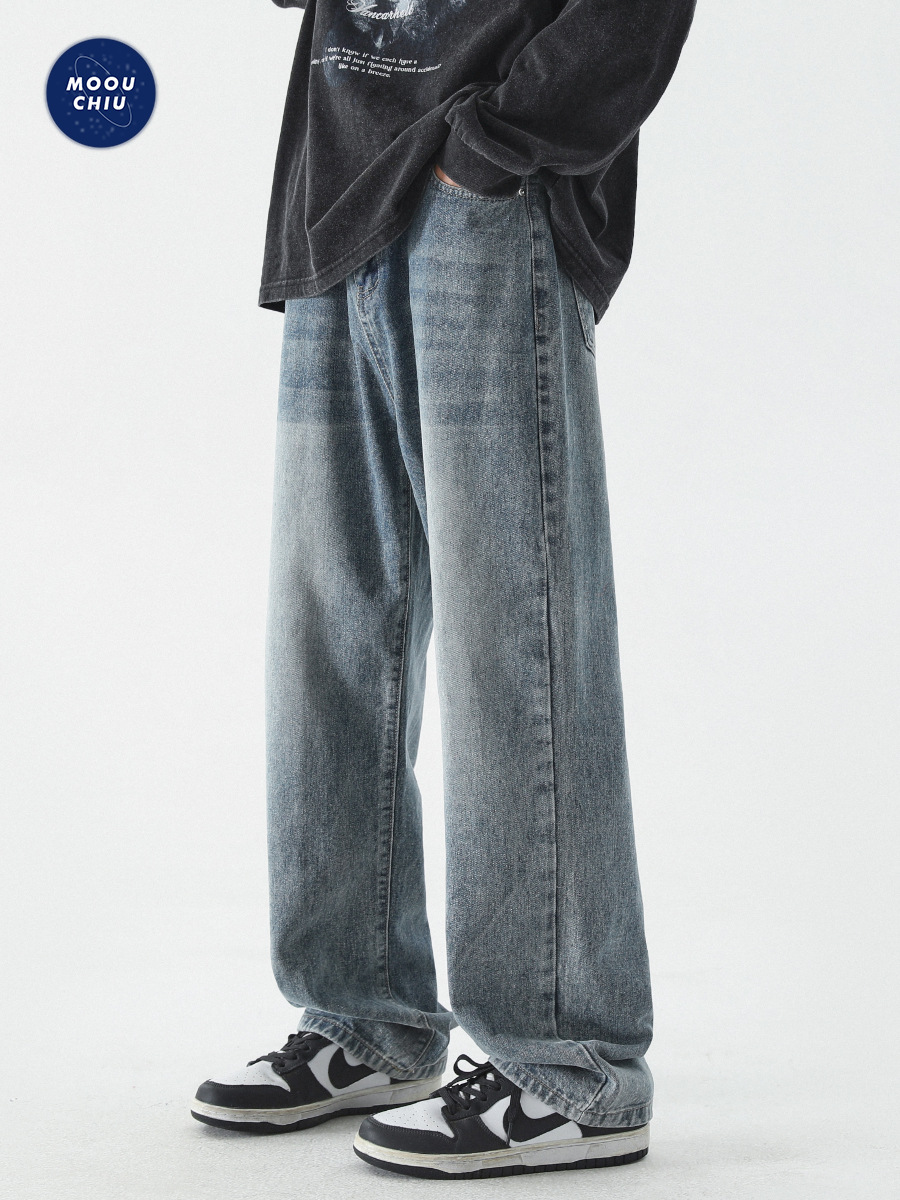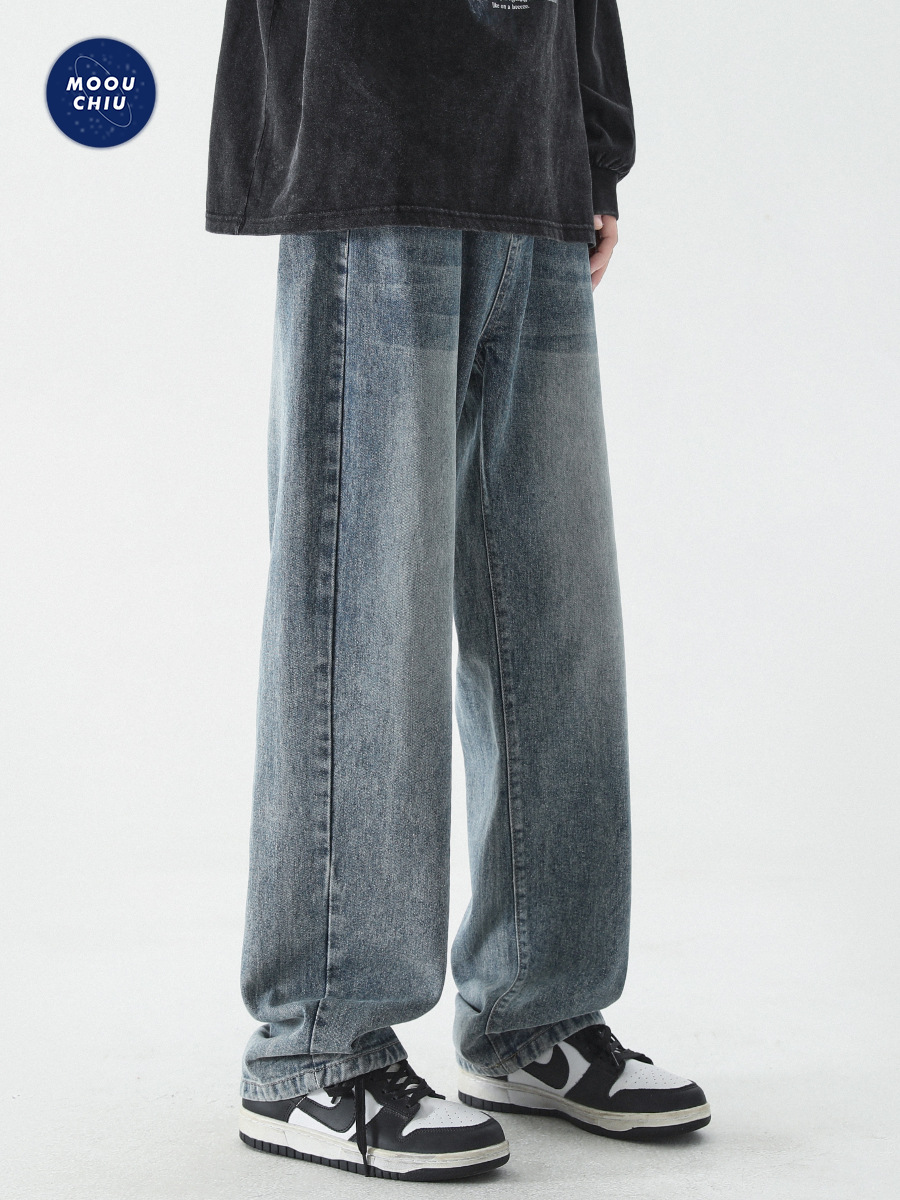 무추 남성복∣신탕 워싱 다용도 데님 팬츠 남성 트렌디 브랜드 루즈핏 스트레이트 레트로 아메리칸 하이스트릿 와이드 팬츠