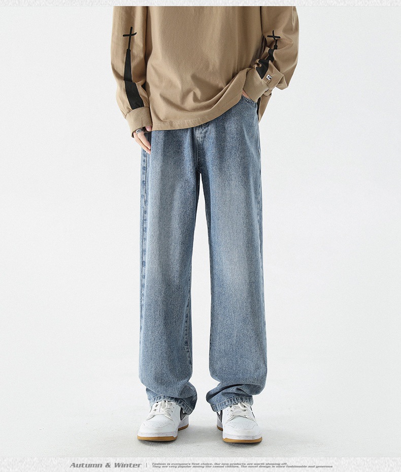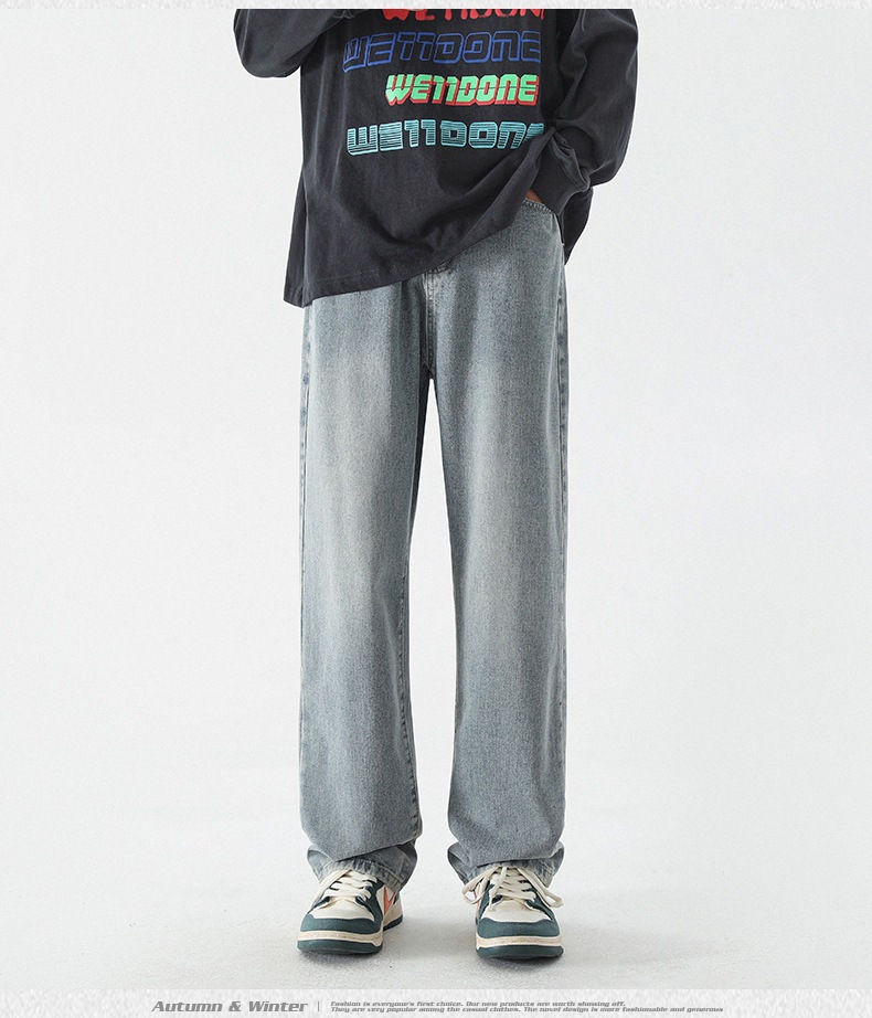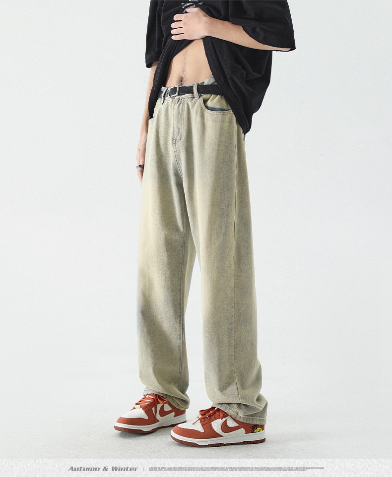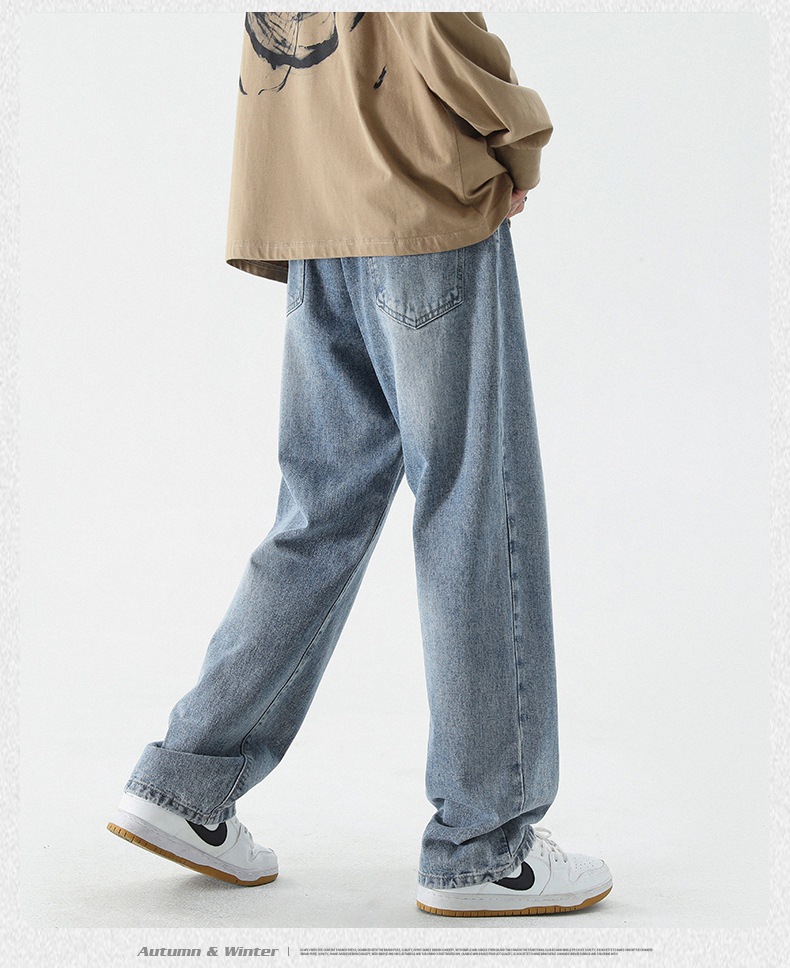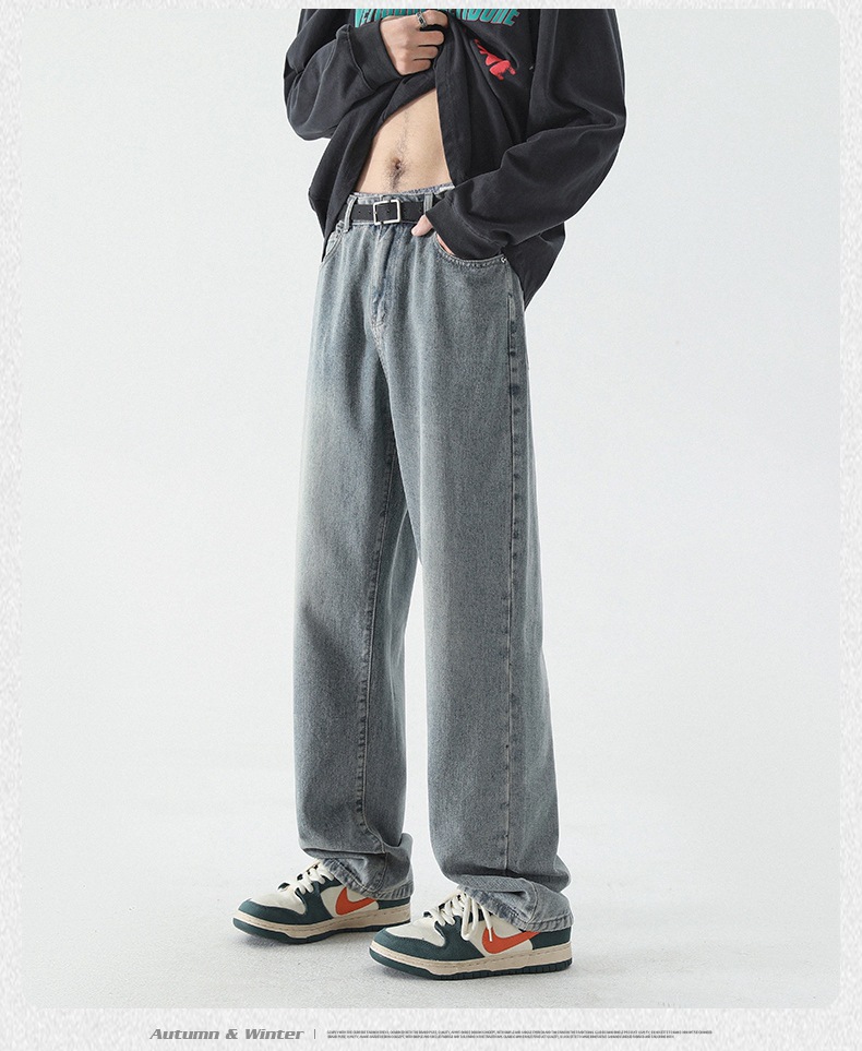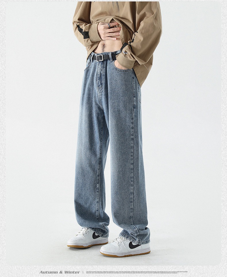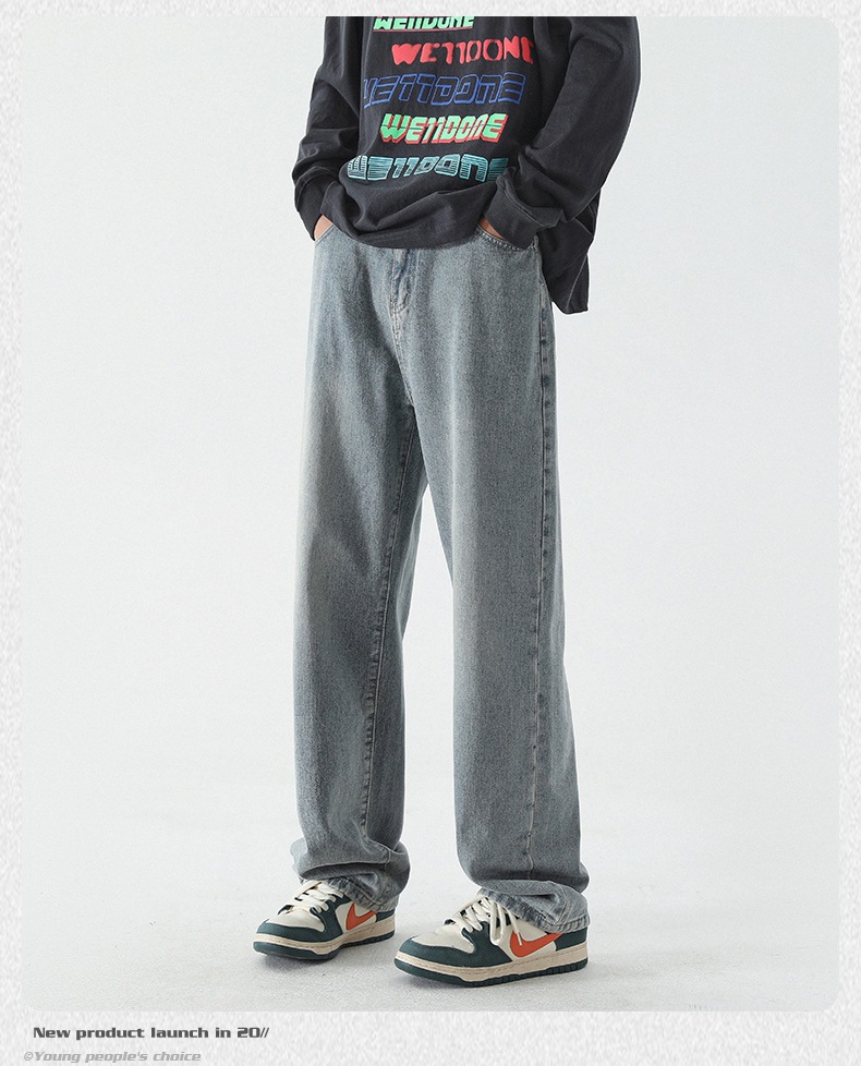 무추 남성복∣신탕 워싱 다용도 데님 팬츠 남성 트렌디 브랜드 루즈핏 스트레이트 레트로 아메리칸 하이스트릿 와이드 팬츠
