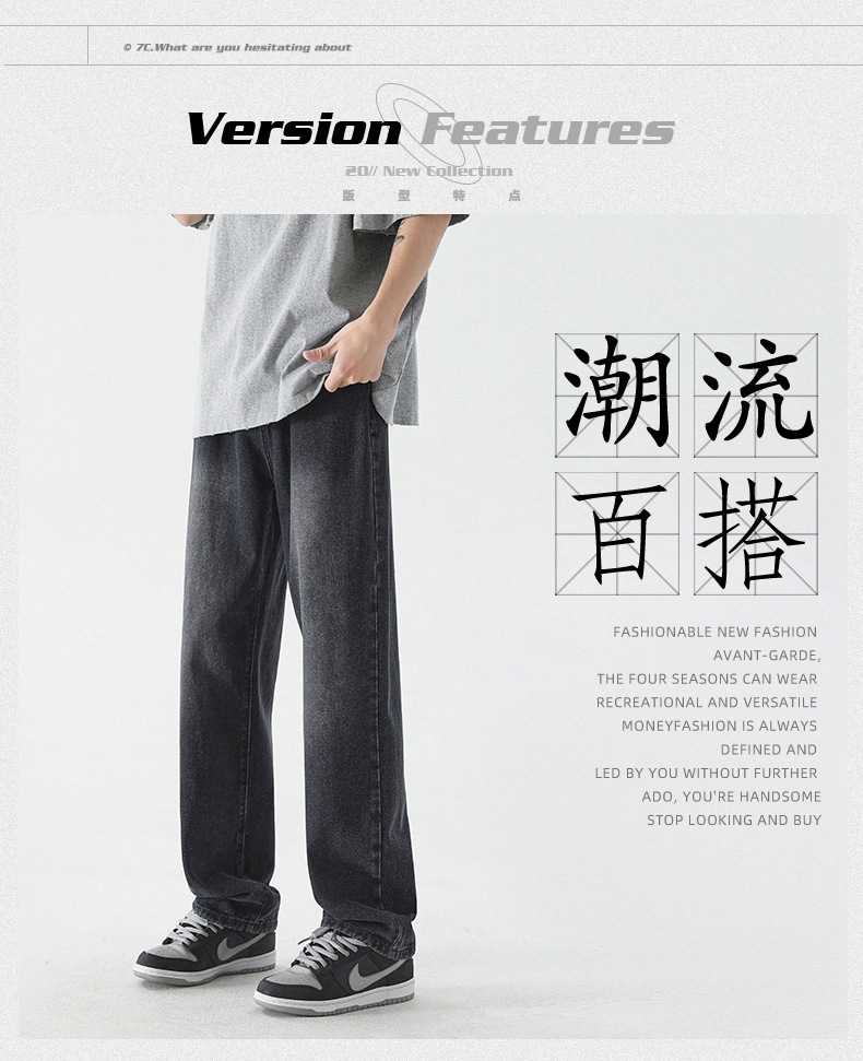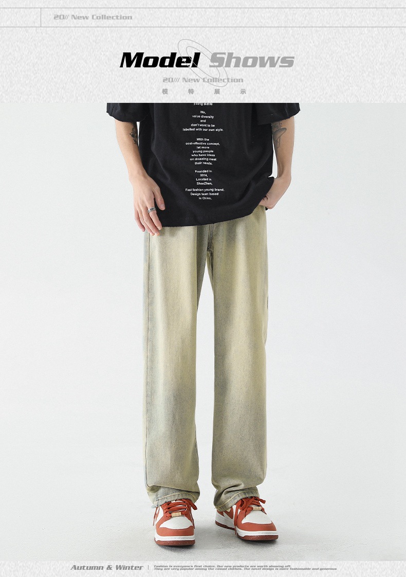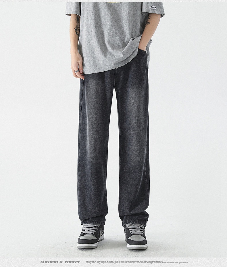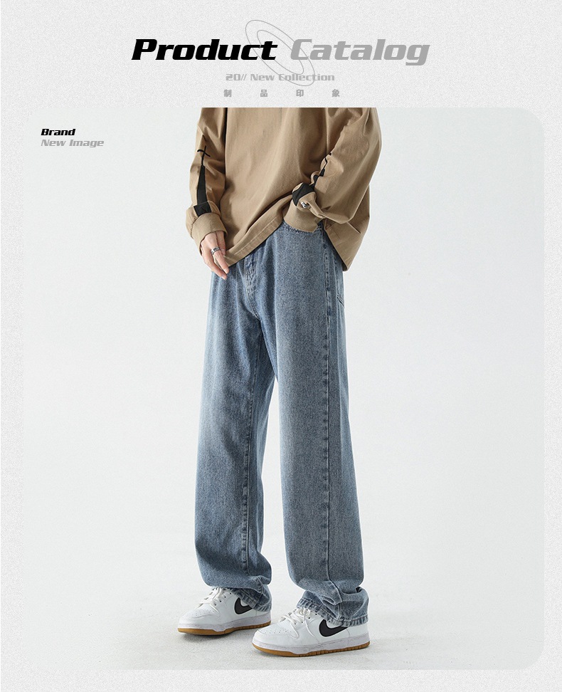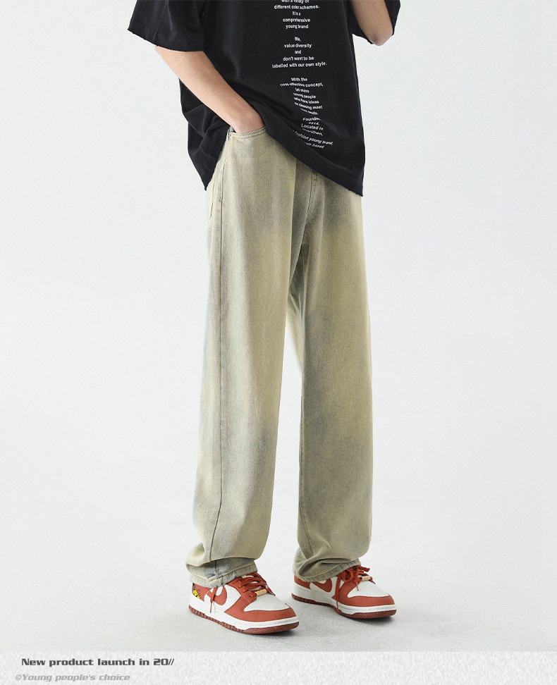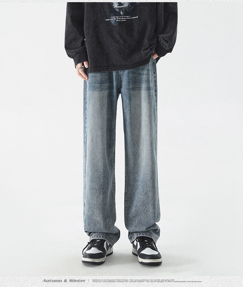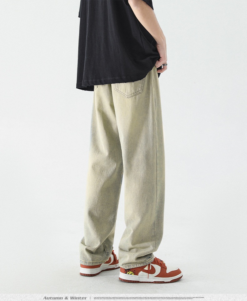 무추 남성복∣신탕 워싱 다용도 데님 팬츠 남성 트렌디 브랜드 루즈핏 스트레이트 레트로 아메리칸 하이스트릿 와이드 팬츠