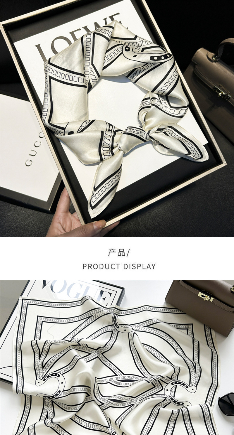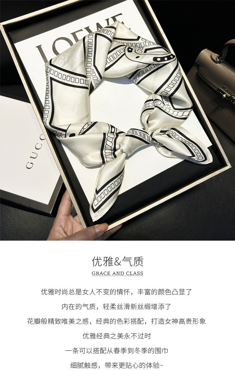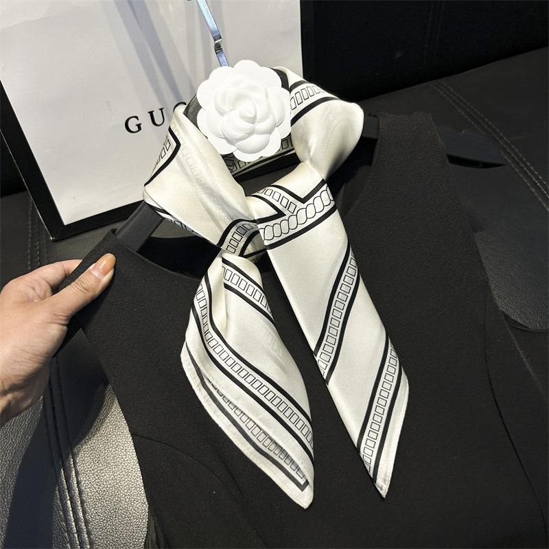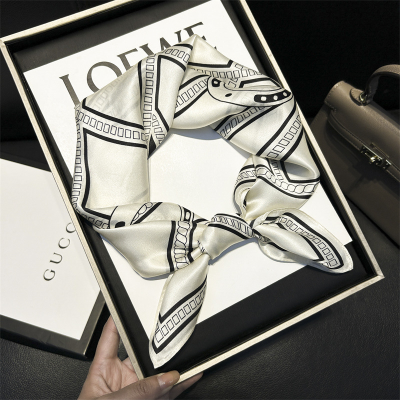 클래식 체인 실크 스카프 100 뽕나무 실크 스카프 세련된 모든 매치 70cm 스퀘어 스카프 봄과 가을 얇은 숄 여성