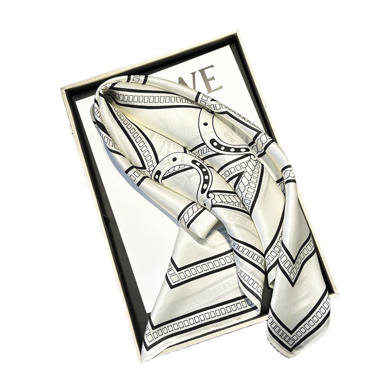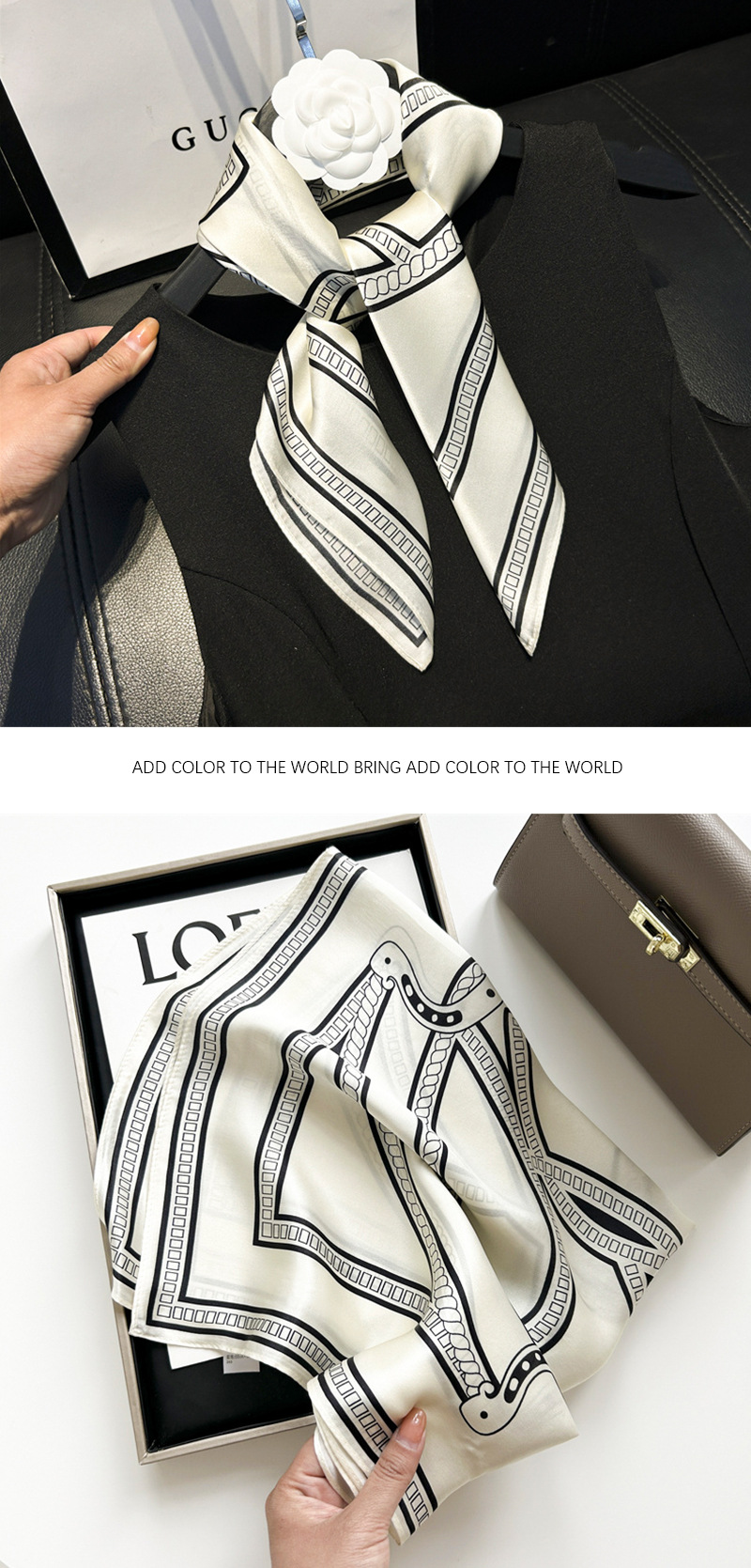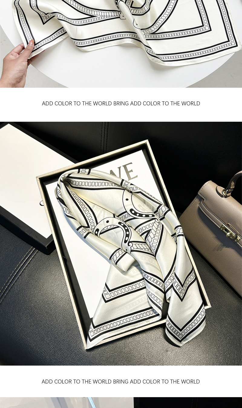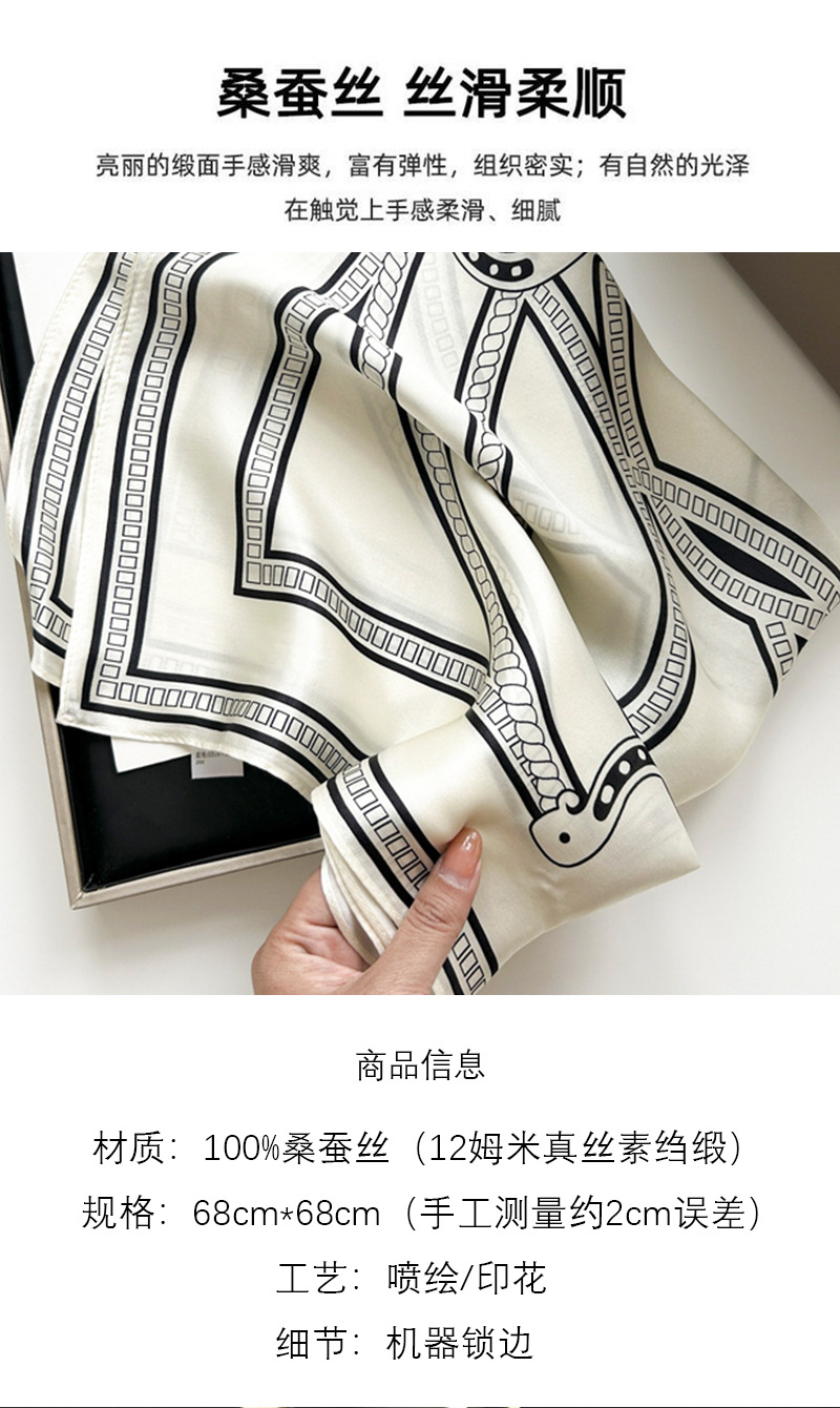 클래식 체인 실크 스카프 100 뽕나무 실크 스카프 세련된 모든 매치 70cm 스퀘어 스카프 봄과 가을 얇은 숄 여성