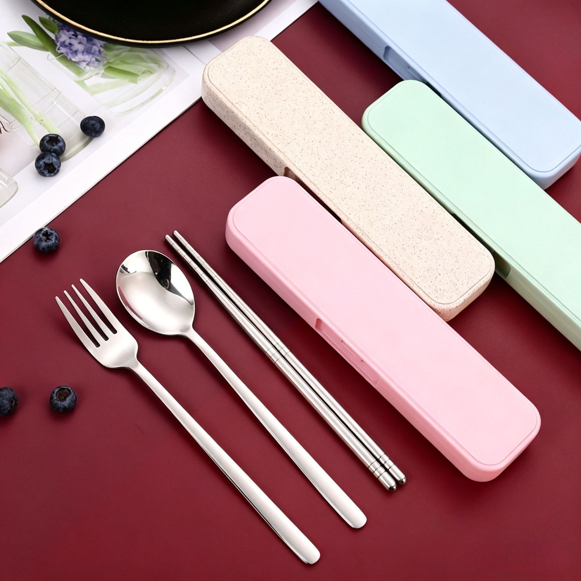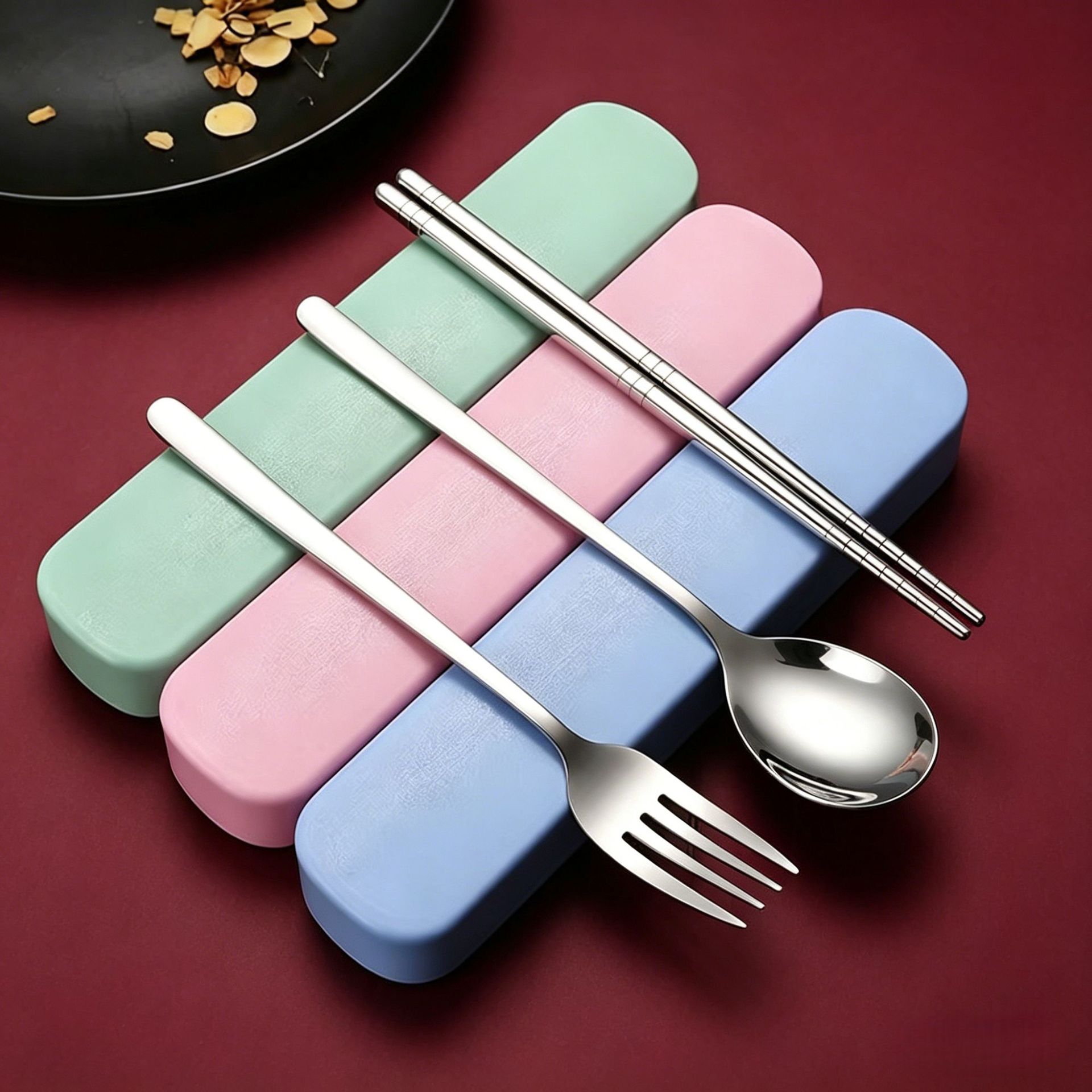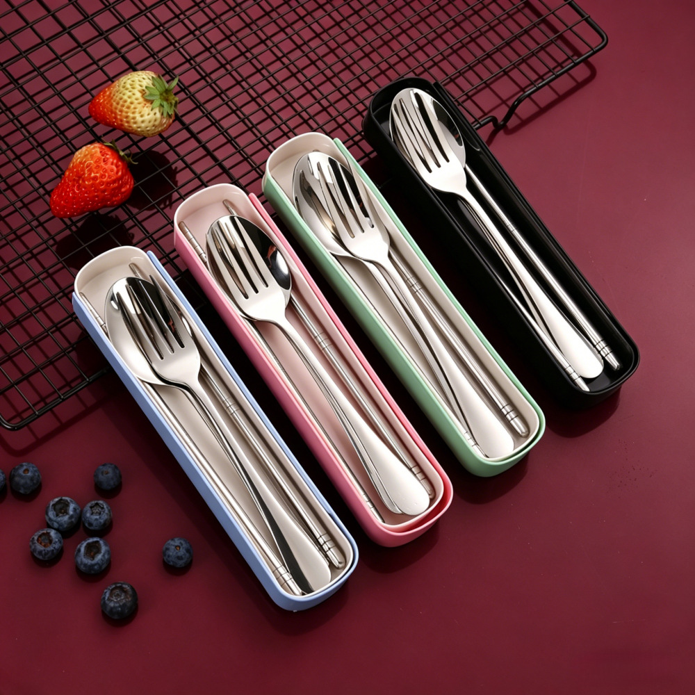 304 스테인리스 식기 세트 야외용 학생용 숟가락 젓가락 포크 세트 휴대용 3종 세트 선물용 로고