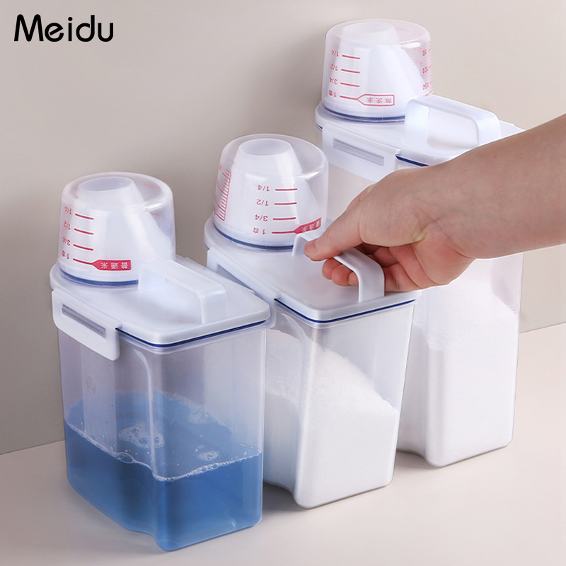 세탁 파우더 보관 상자 가정용 세탁 세제 보관 상자 세탁 뚜껑 밀폐 용기가있는 비즈 보관 버킷