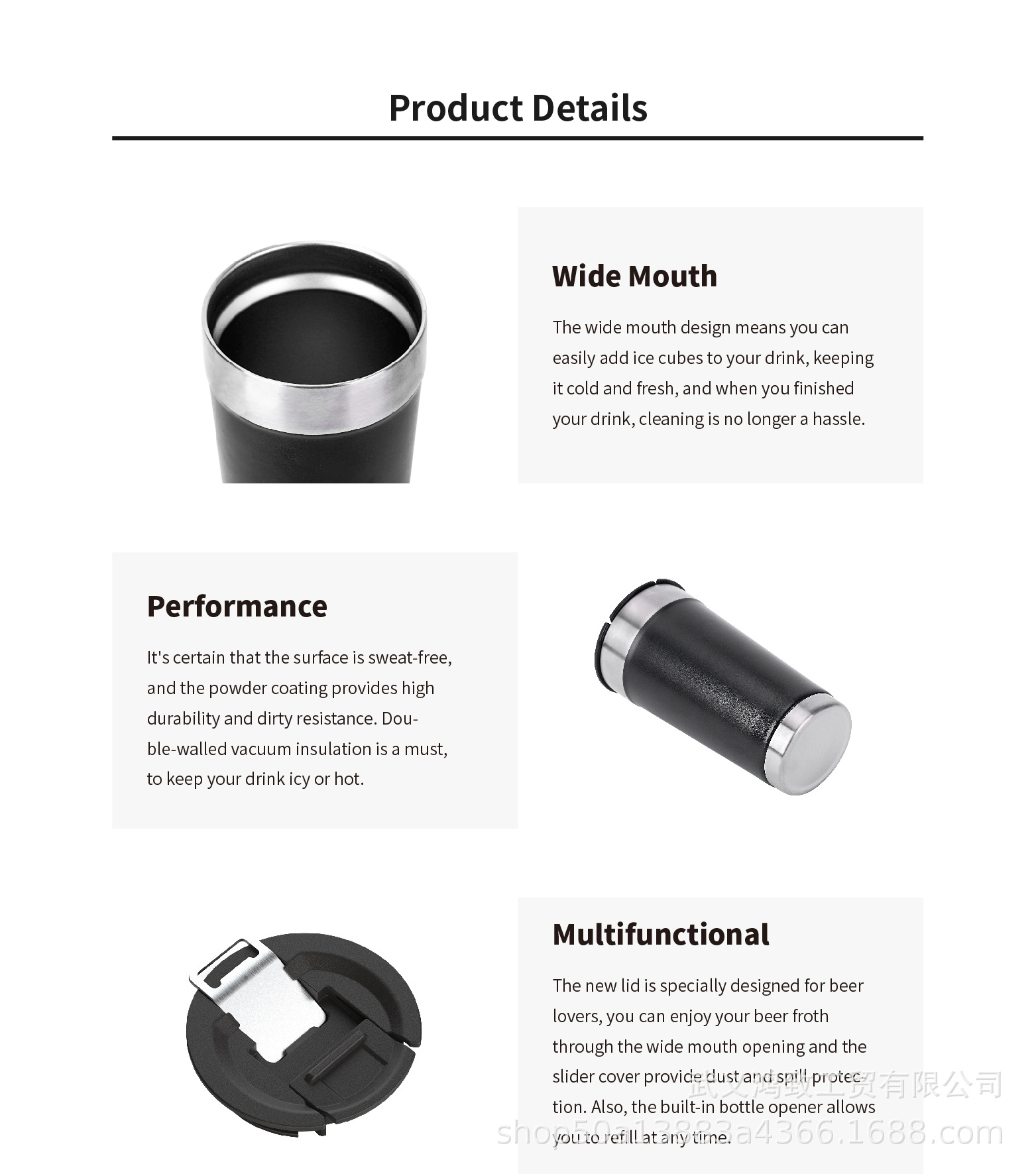 병따개가있는 국경 간 브라질 304 스테인레스 스틸 맥주 컵 더블 레이어 16/20oz 콜드 아이스 컵 자동차 컵