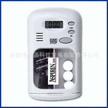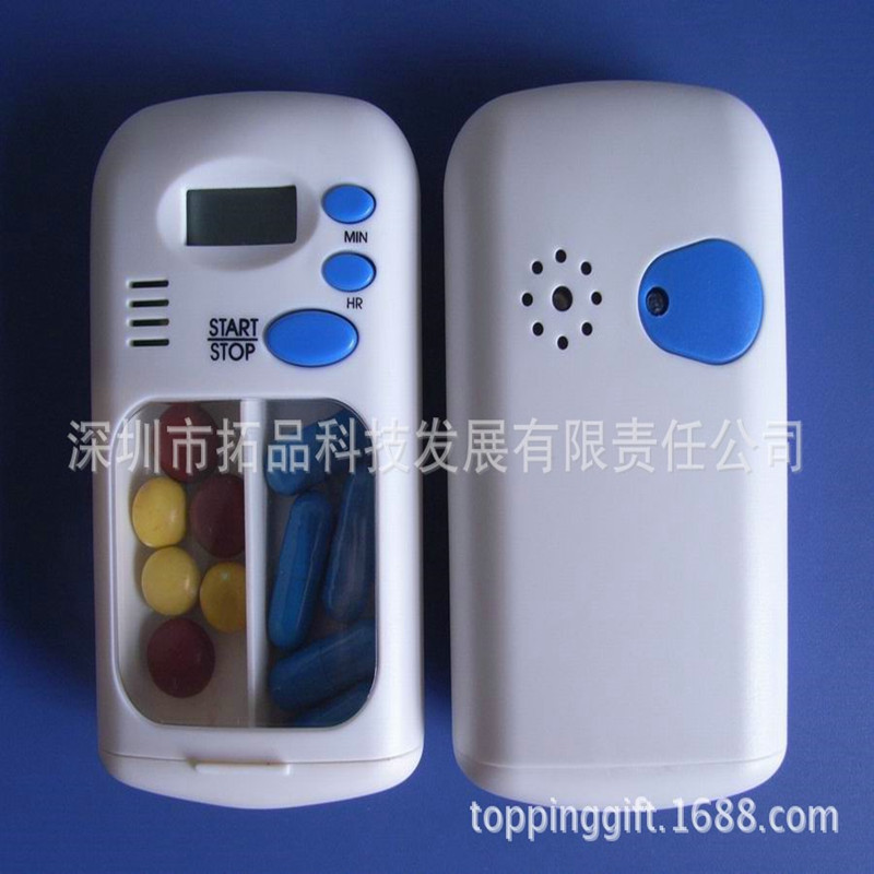 TP701电子定时药盒 闹铃提醒按时吃药,可以任意设定时间,最大可以设定99小时59分钟,设置时间到会响铃提醒,使忙碌的您与您的父母不致忘了按时服药,是您与父母健康身体的贴身小护士,适应于商务,家庭,医院,药品的促销礼品.可以印刷客户的LOGO,我司可以根据客户需要定制各种功能与款式的提醒药盒,计时器,欢迎来电,期待与您的真诚合作.产品尺寸:9*5*2.5CM,材质:食品级ABS.特点:外观小巧精美,携带方便,操作简单,使用方便.价格便宜,使用方便.