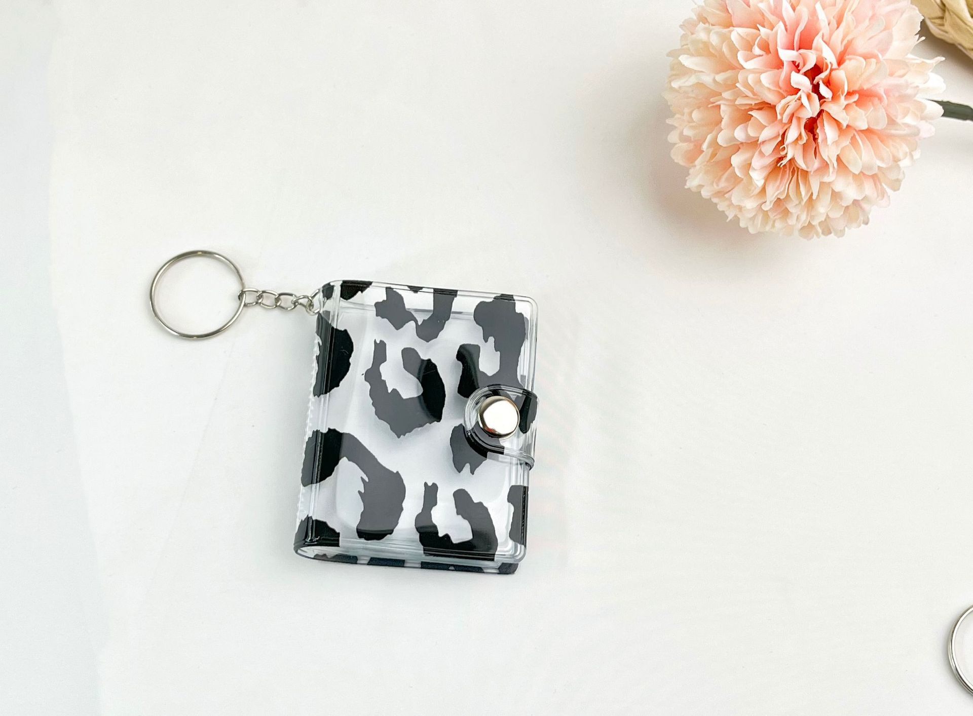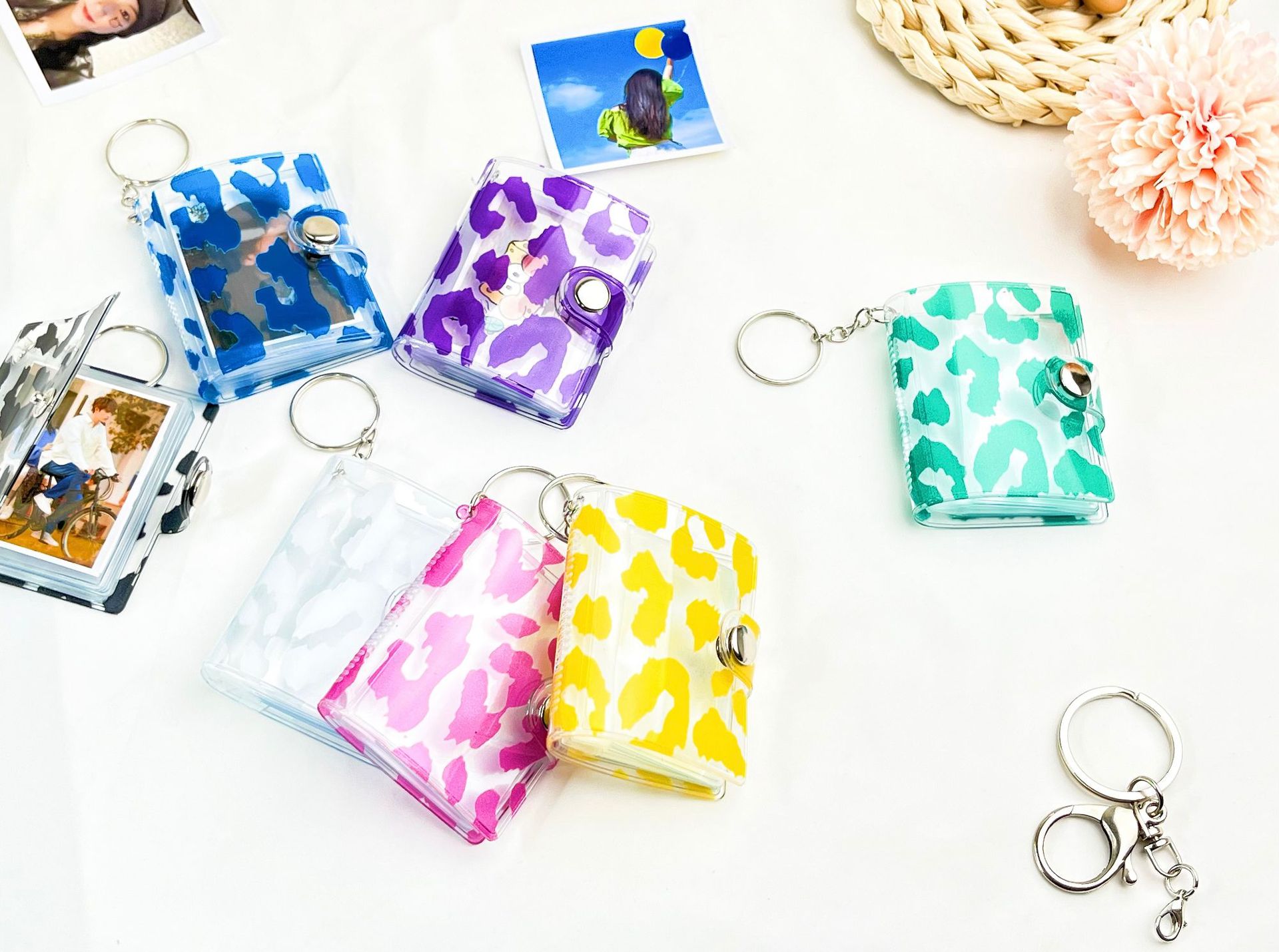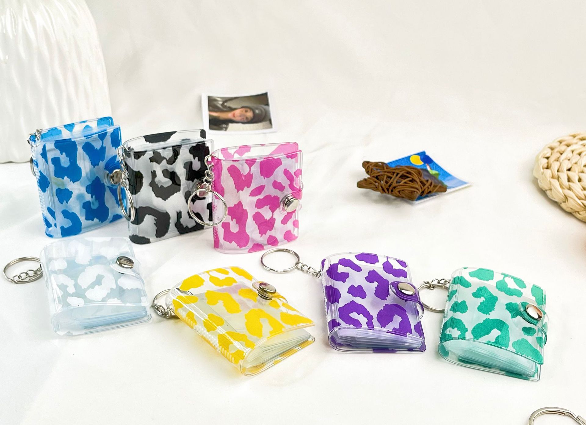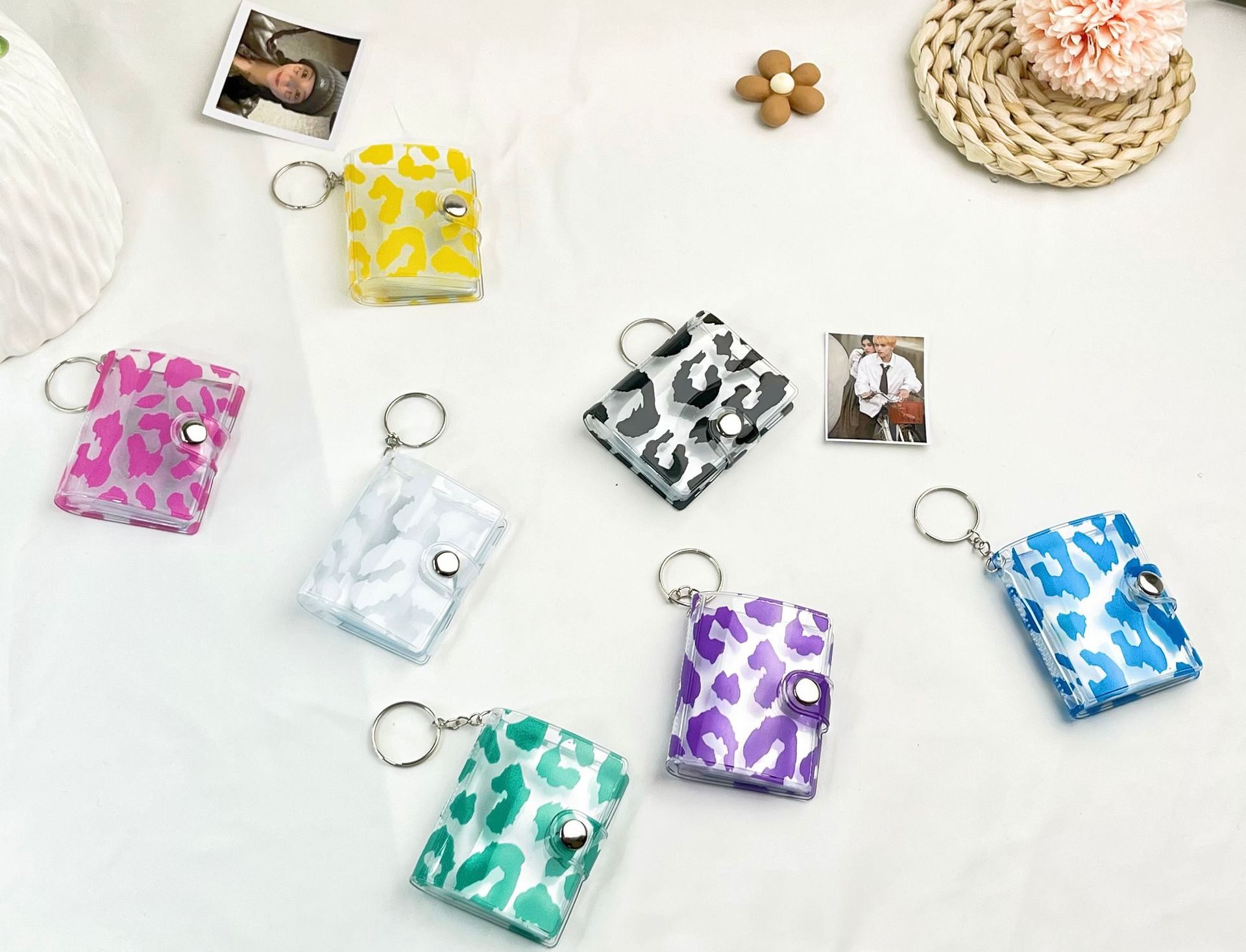 2023 패션 새로운 레오파드 무늬 미니 작은 사진 앨범 키 체인 압정 학생 포켓 삽입형 사진 앨범 인증서
