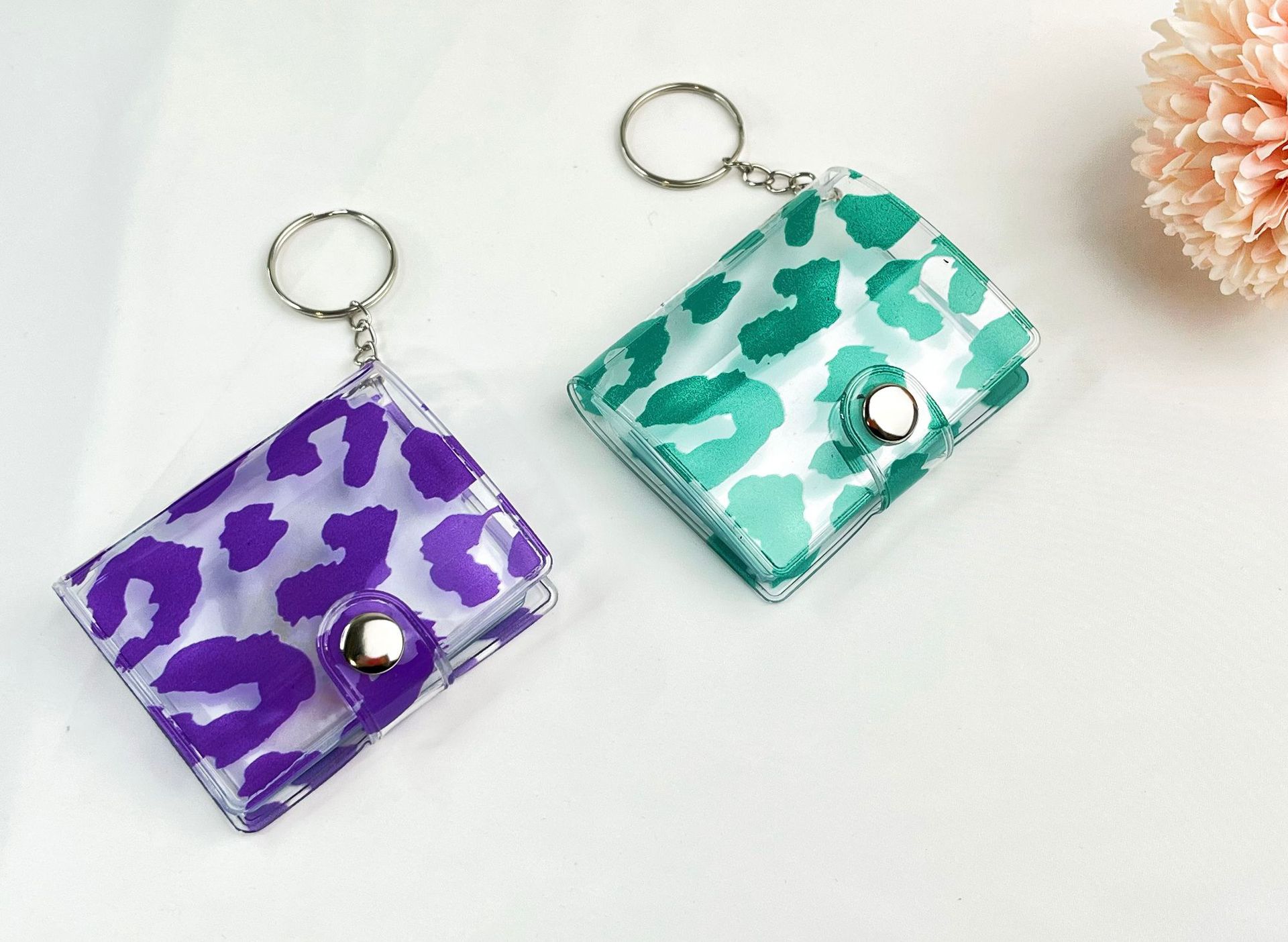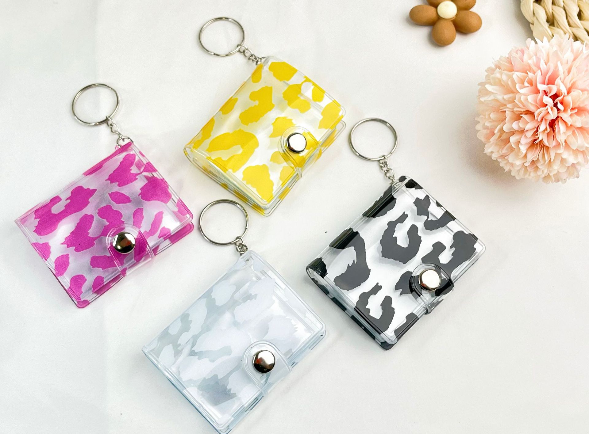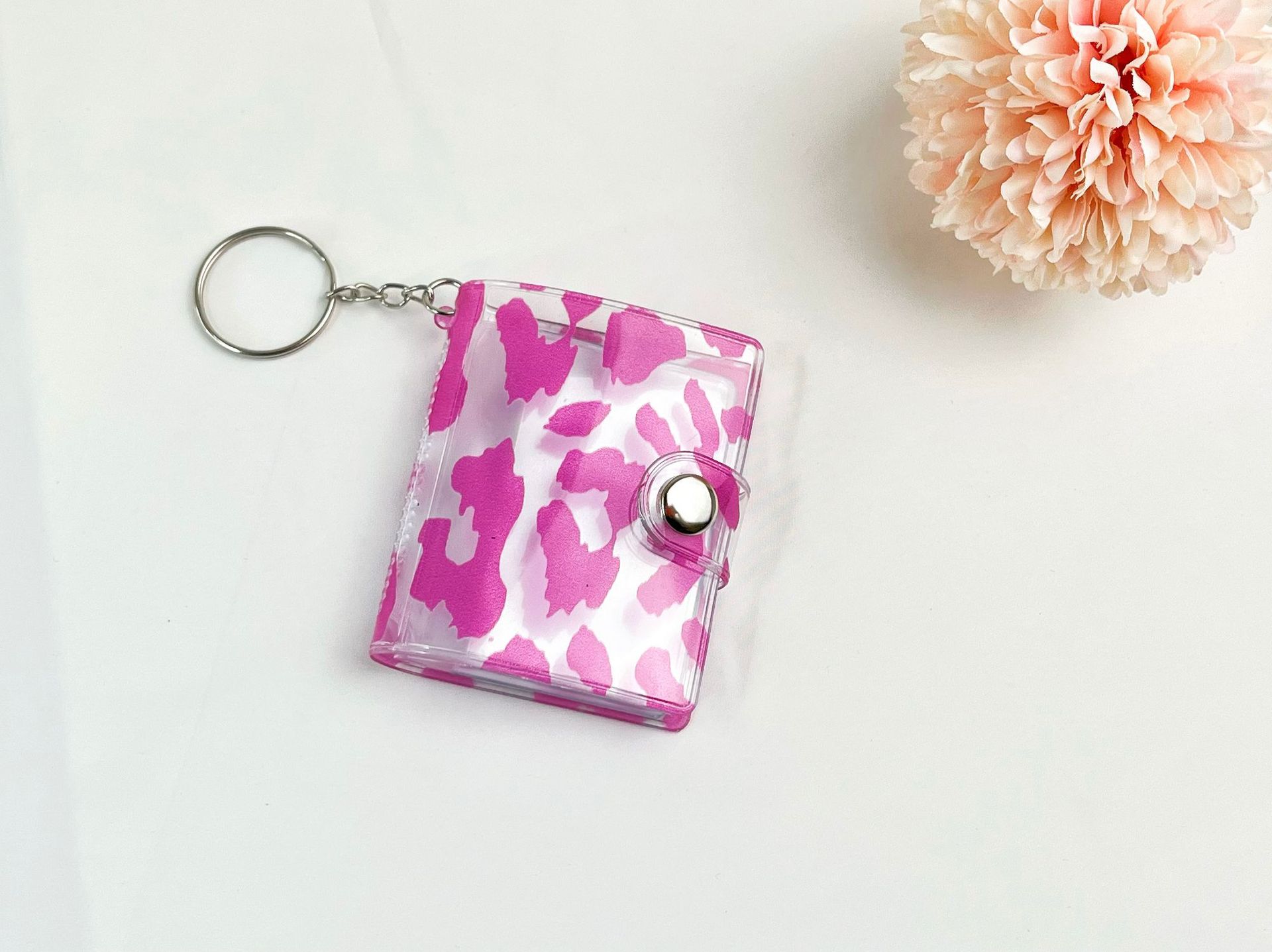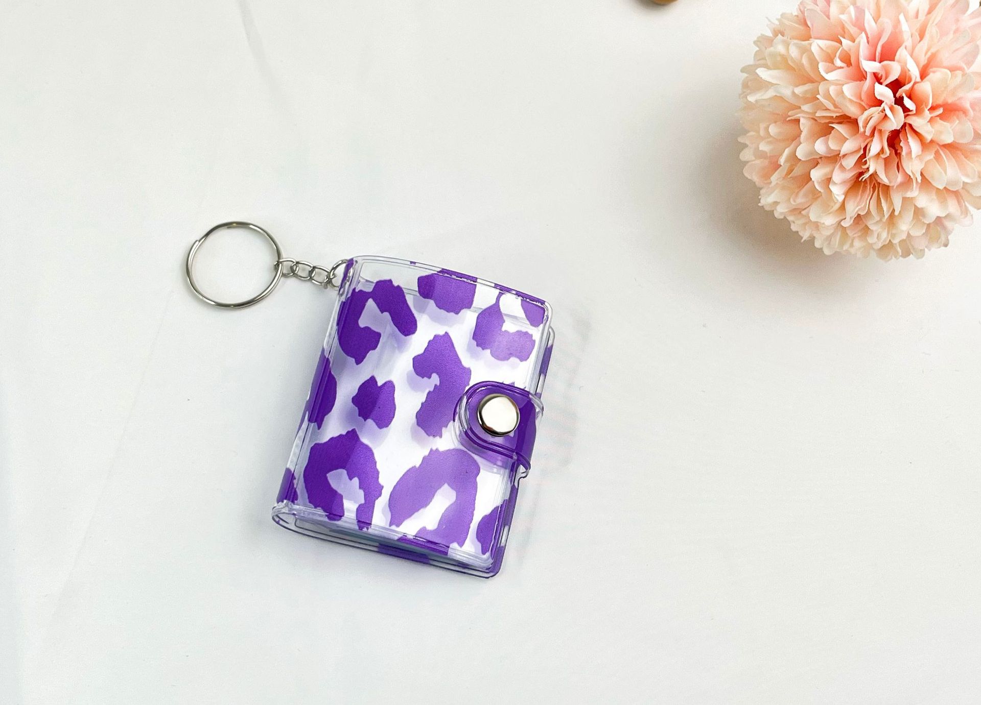 2023 패션 새로운 레오파드 무늬 미니 작은 사진 앨범 키 체인 압정 학생 포켓 삽입형 사진 앨범 인증서