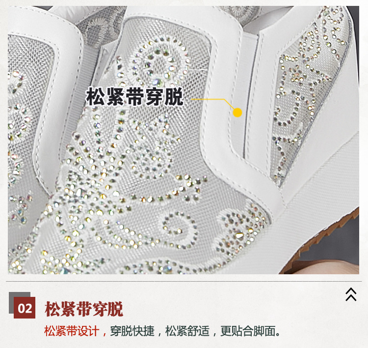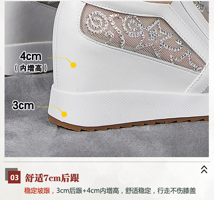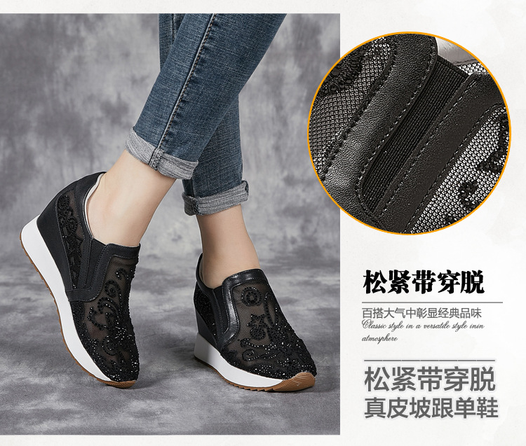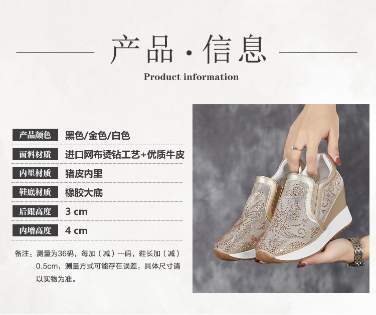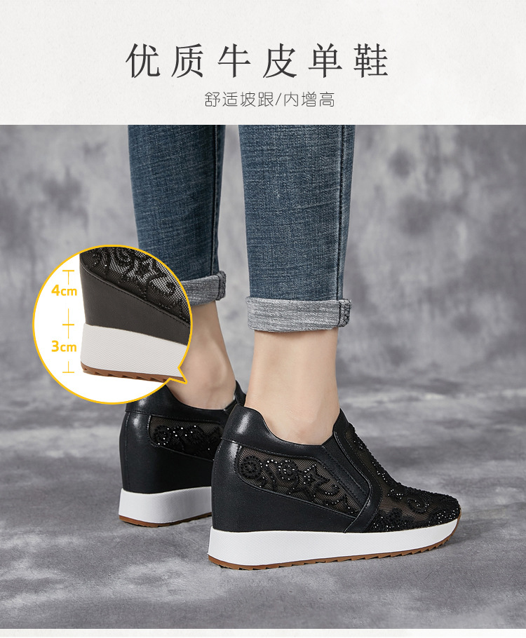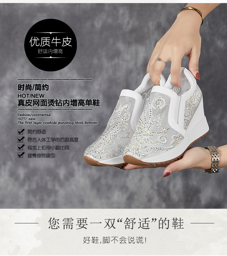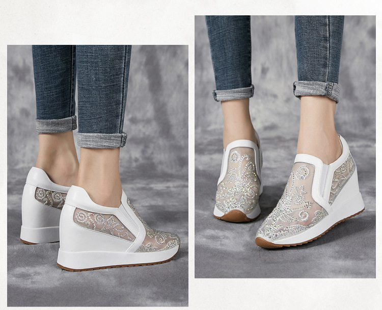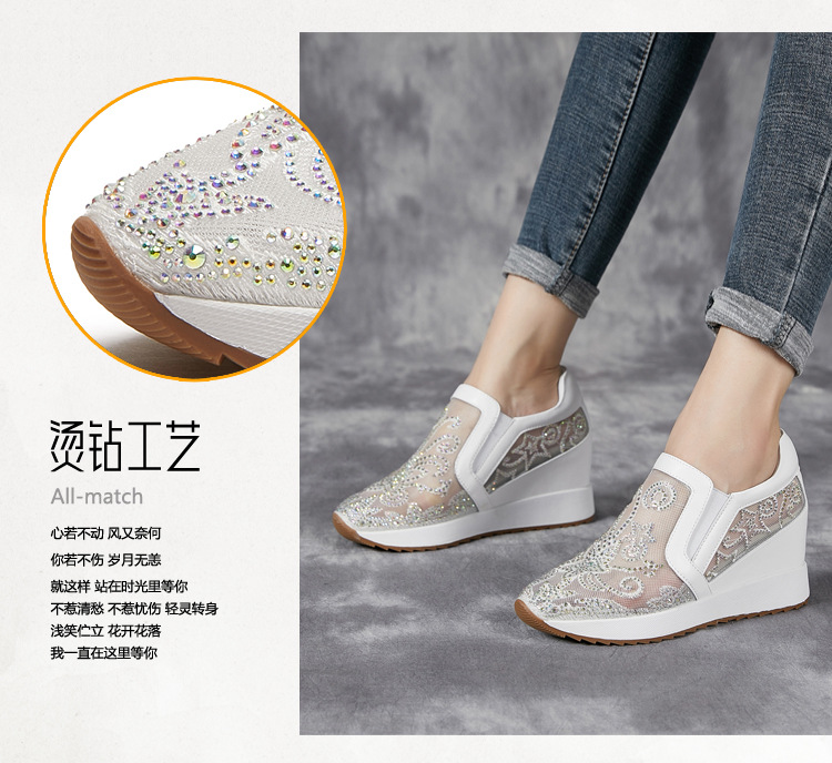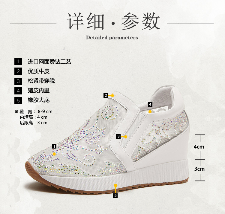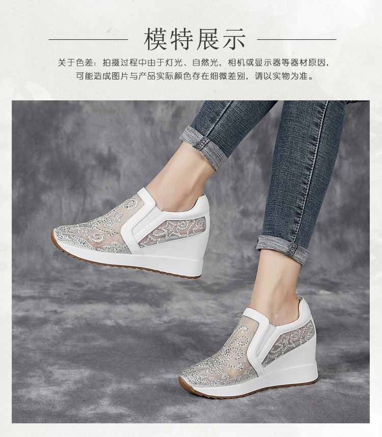 내부 높이 흰색 신발 여성의 2024 여름 새 스몰 사이즈 웨지 힐 신발 한 페달 메쉬 신발 라인스톤 올매치 싱글 레이어 신발