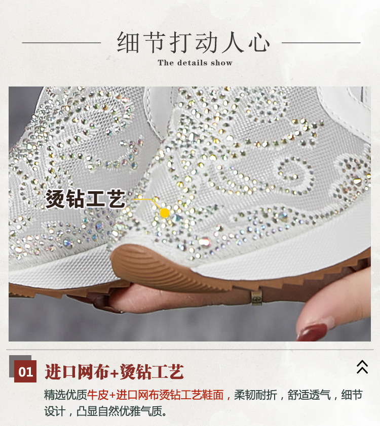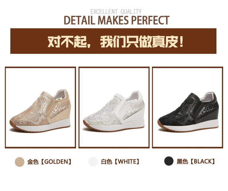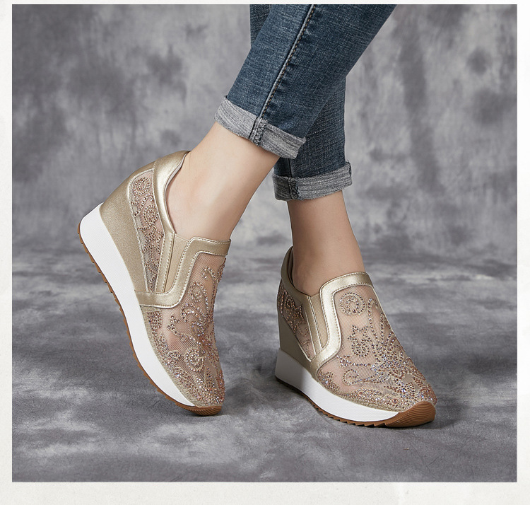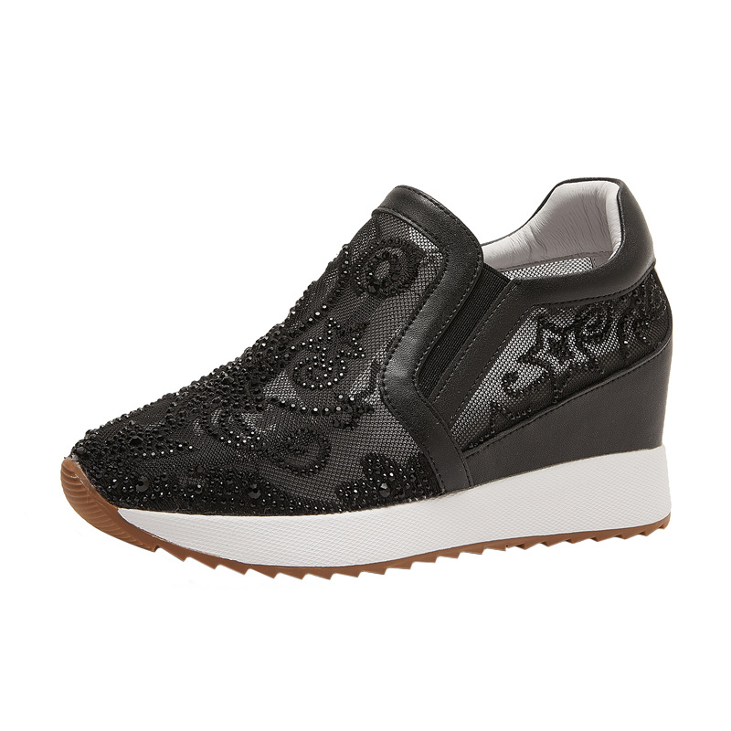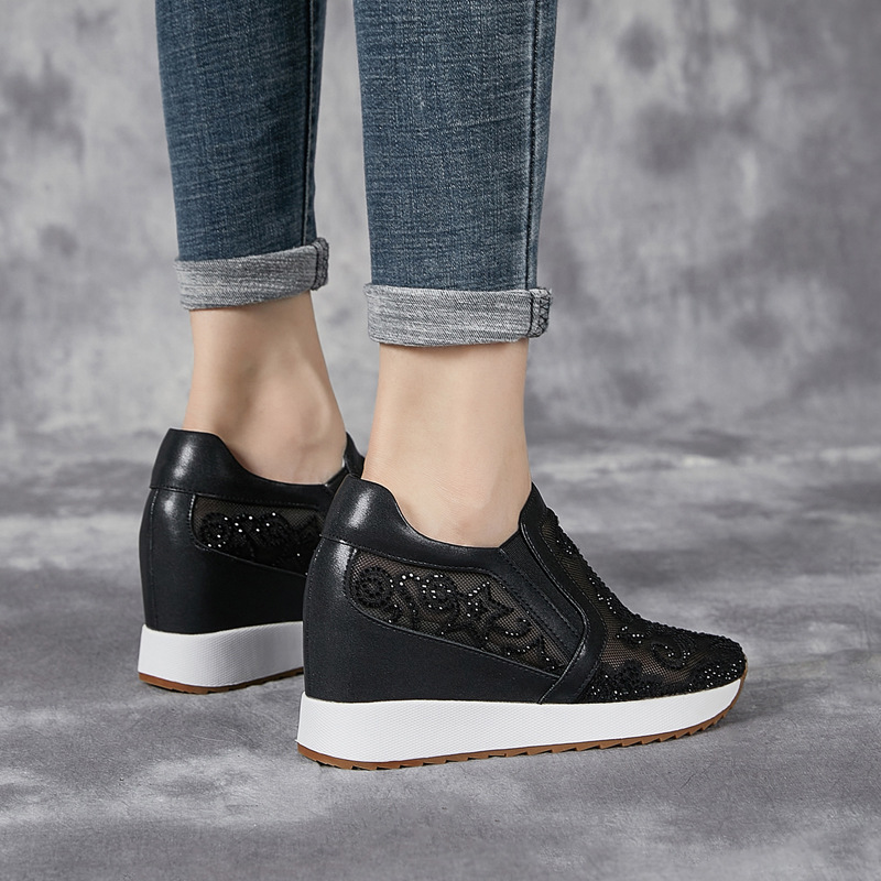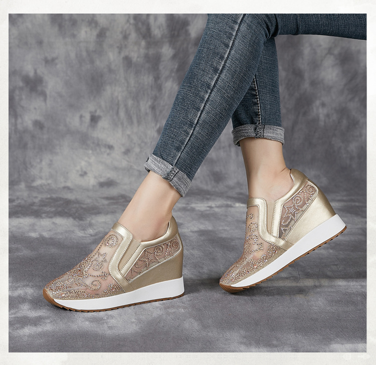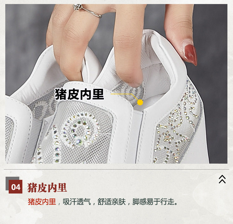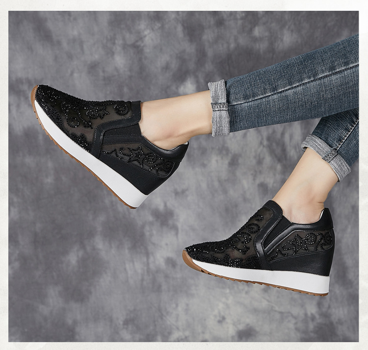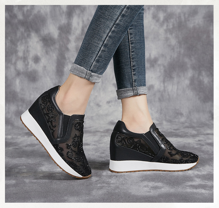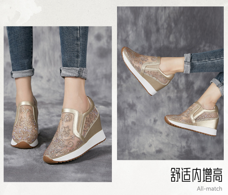 내부 높이 흰색 신발 여성의 2024 여름 새 스몰 사이즈 웨지 힐 신발 한 페달 메쉬 신발 라인스톤 올매치 싱글 레이어 신발