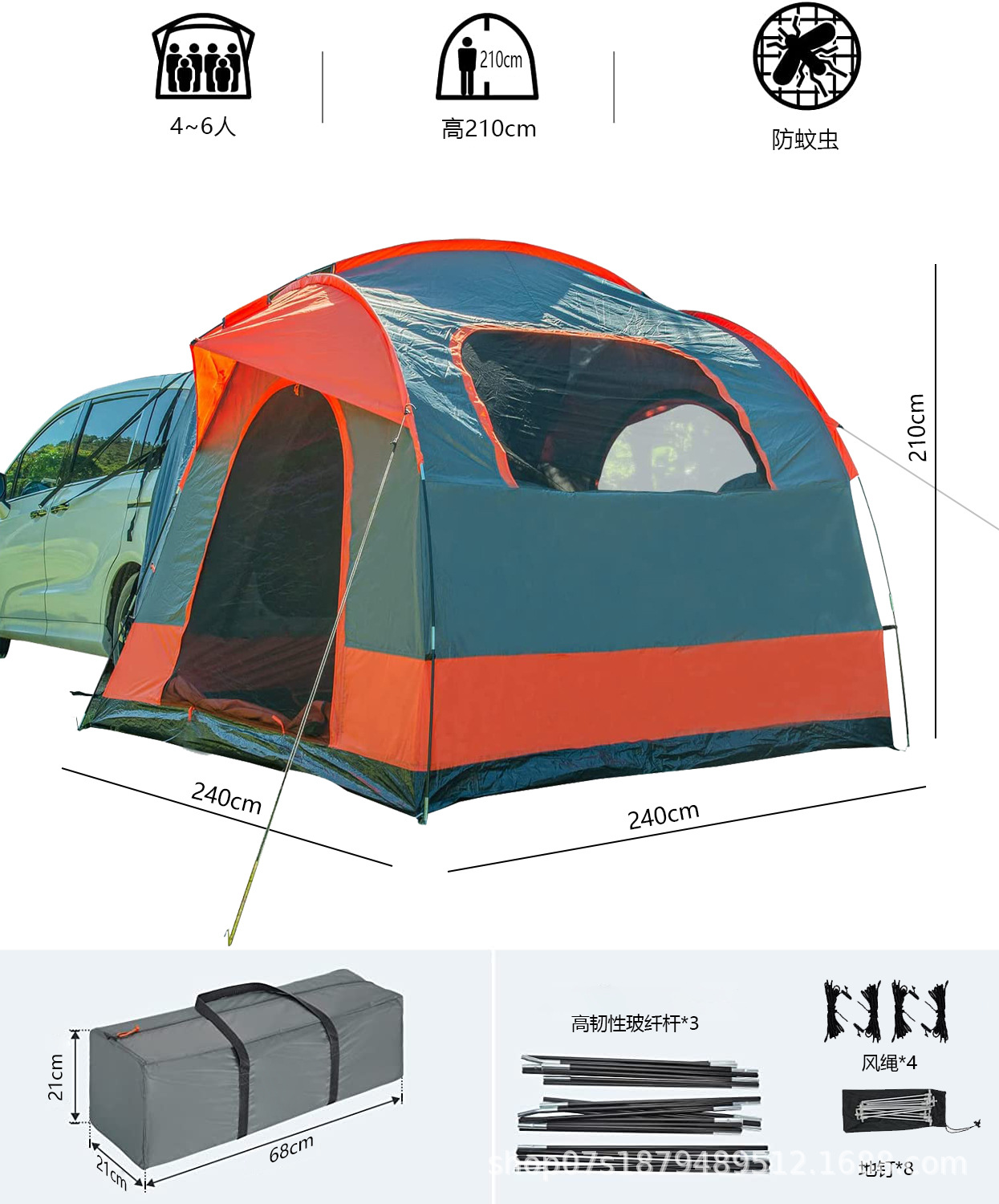 텐트, 캠핑 천막, 야외 해변 캠핑, 자동차 루프탑, 트렁크 확장형 테일 텐트, 자외선 차단, 방수, 터널형 방수