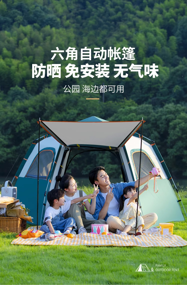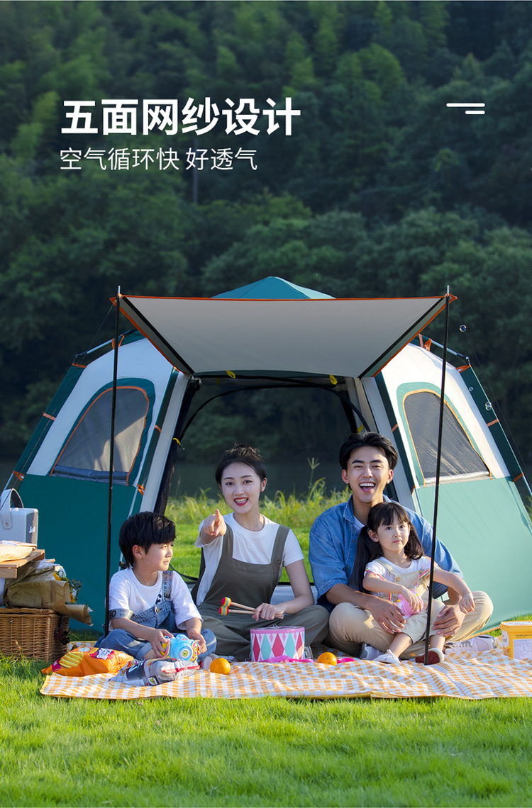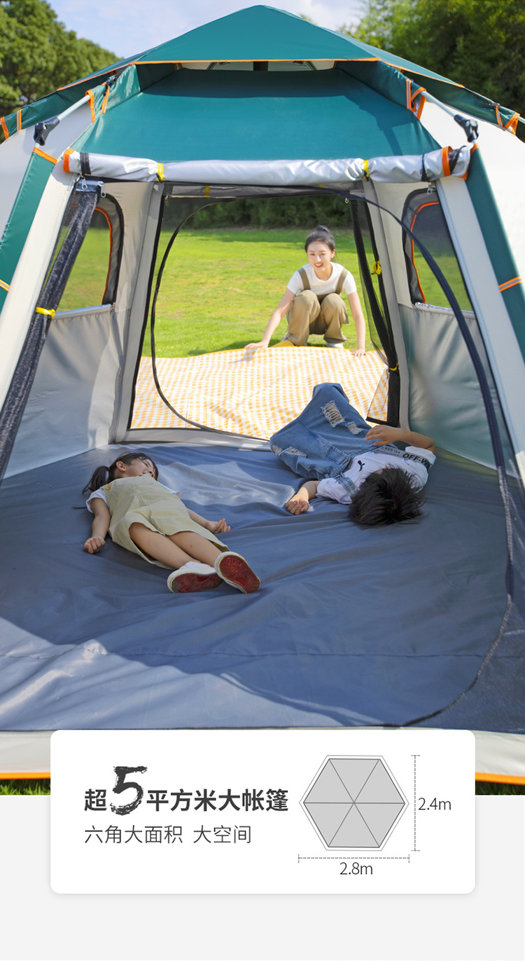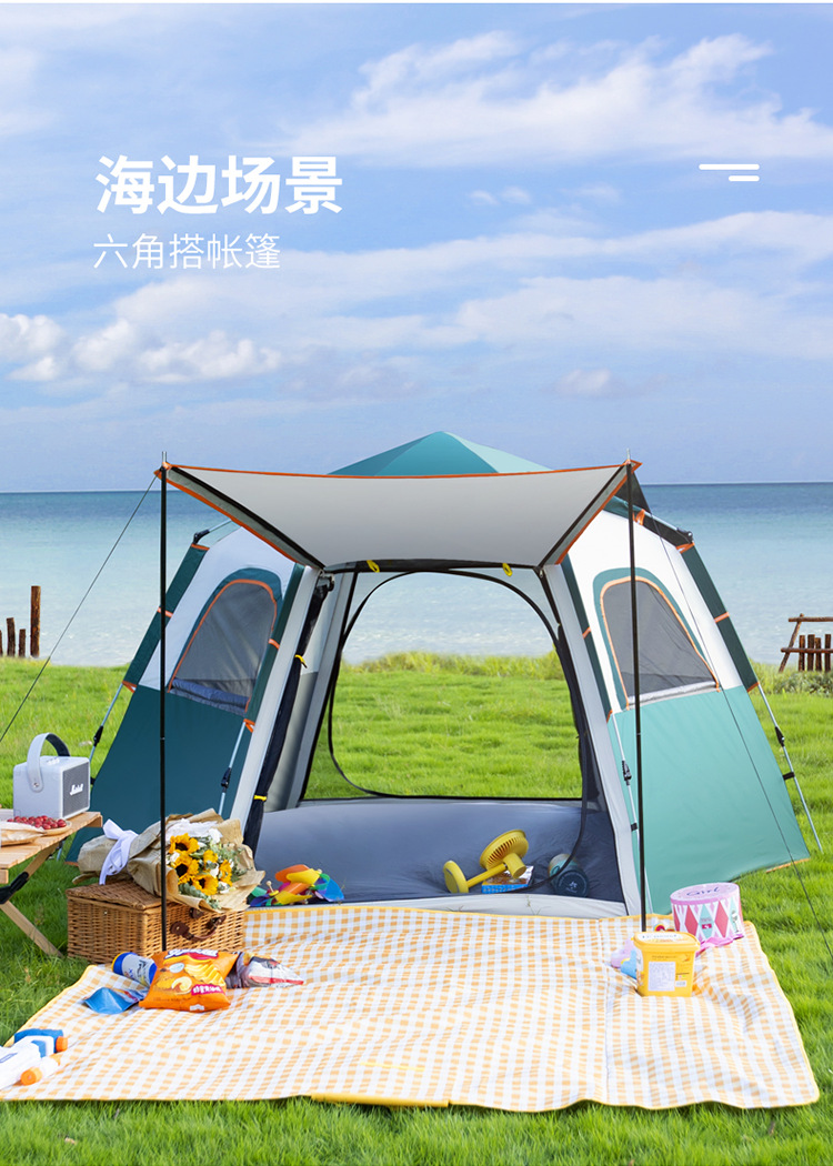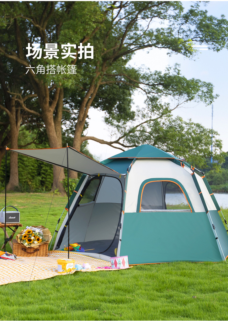 야외 휴대용 접이식 완전 자동 빠른 개방형 육각형 방수 두꺼운 태양 보호 실버 코팅 캠핑 야외 자동 텐트