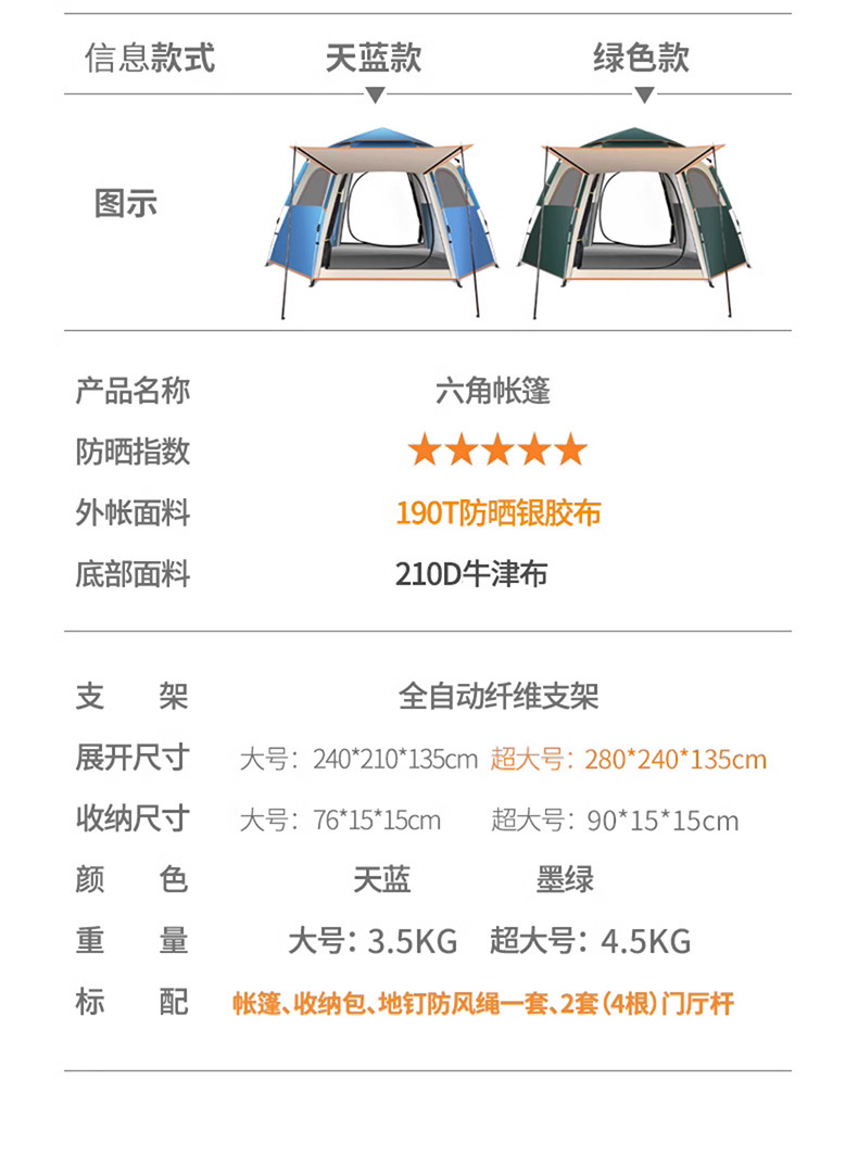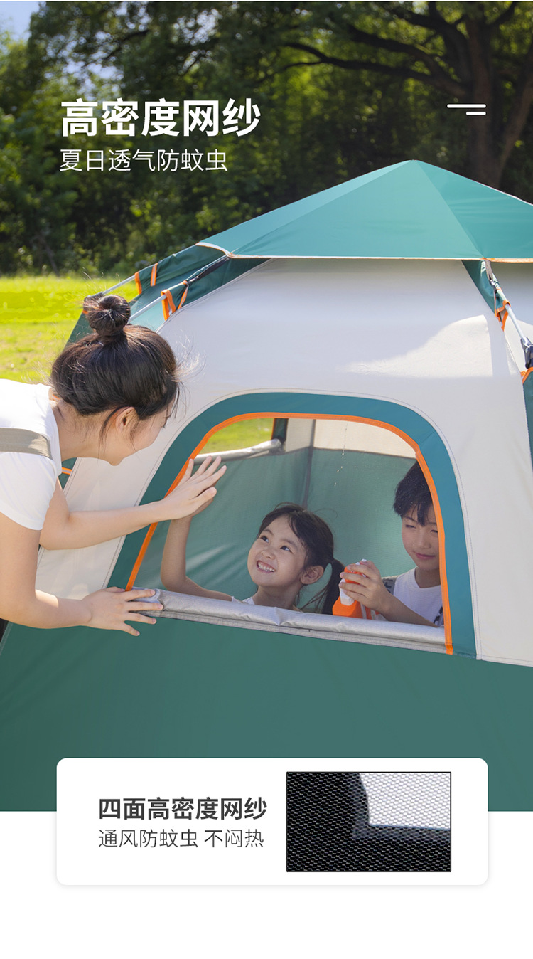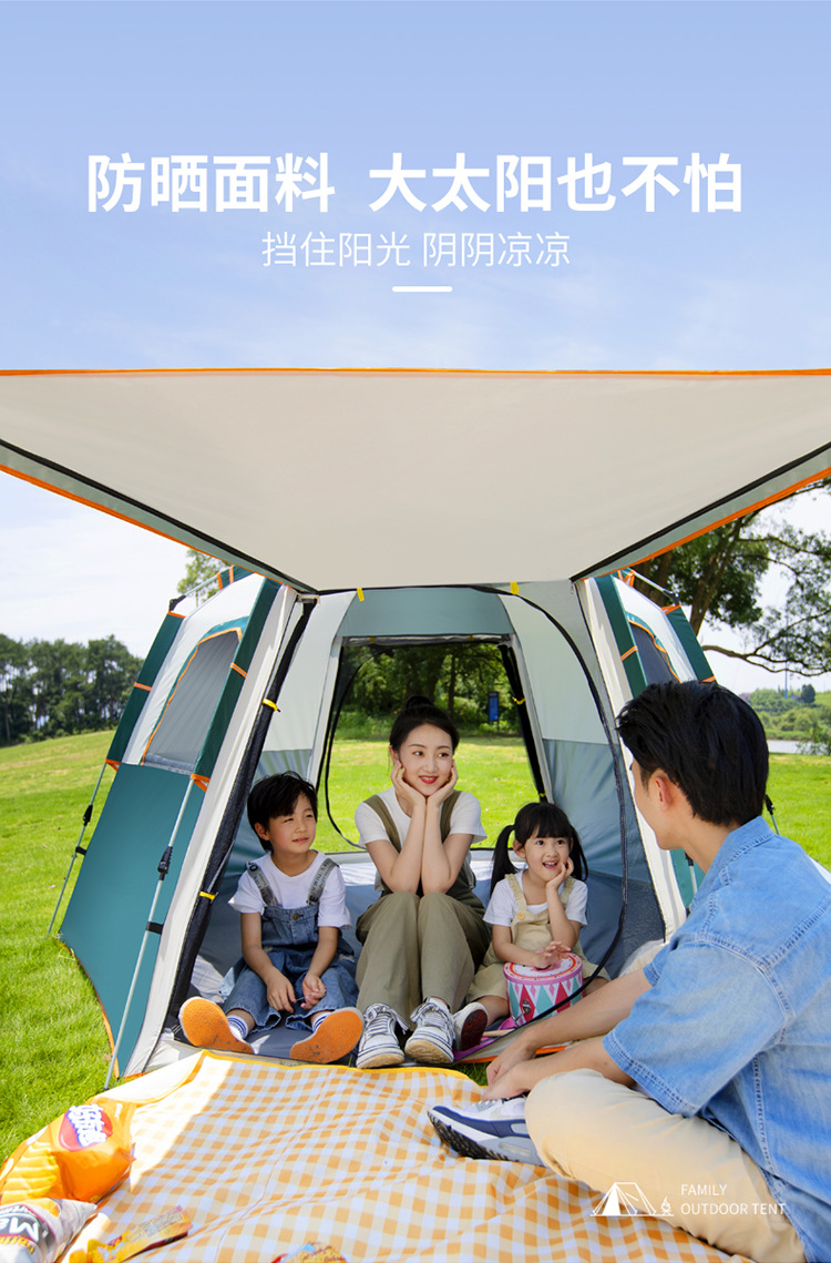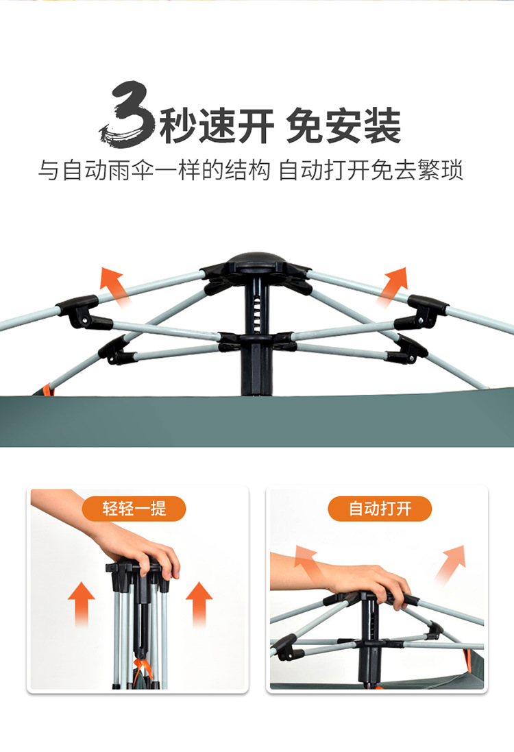 야외 휴대용 접이식 완전 자동 빠른 개방형 육각형 방수 두꺼운 태양 보호 실버 코팅 캠핑 야외 자동 텐트