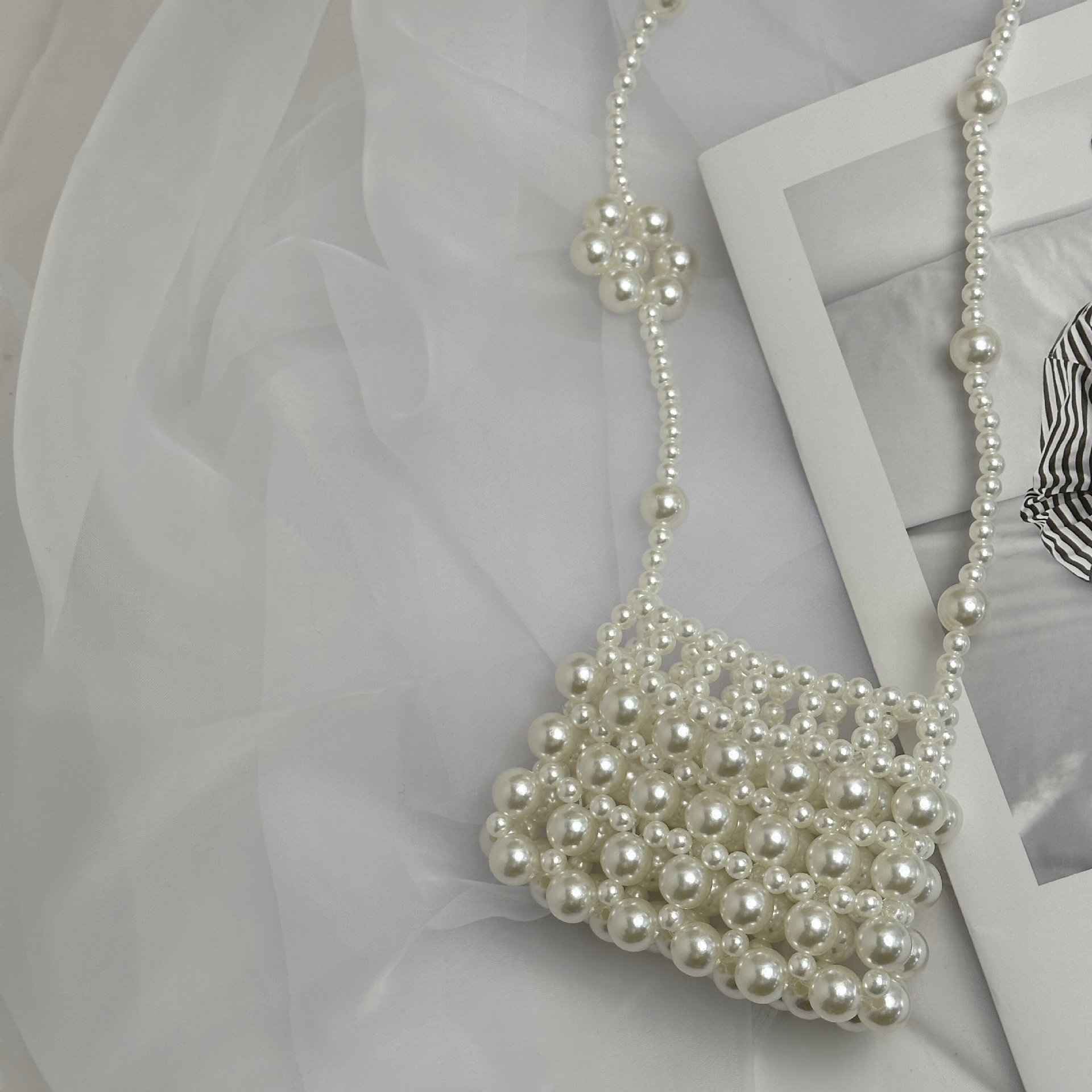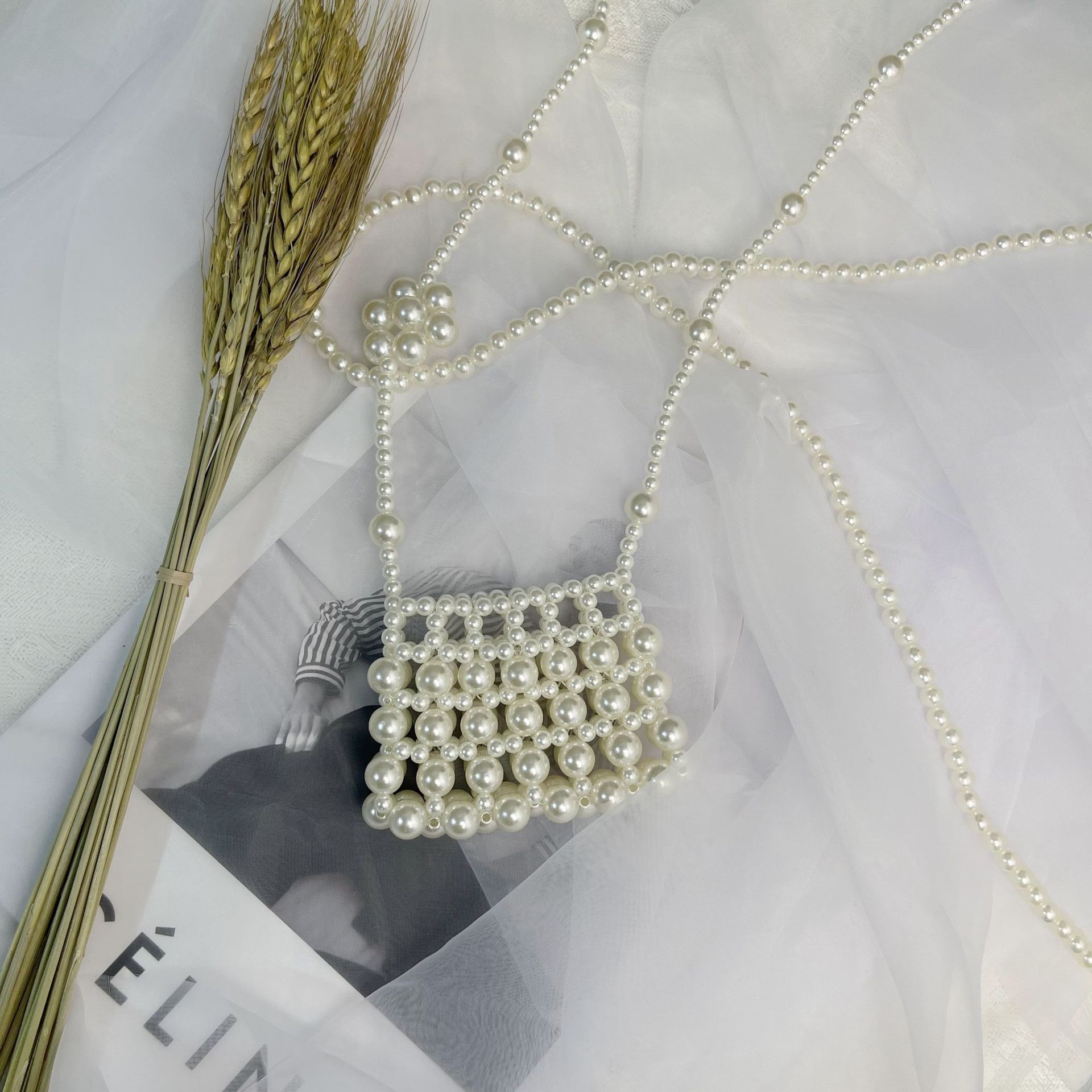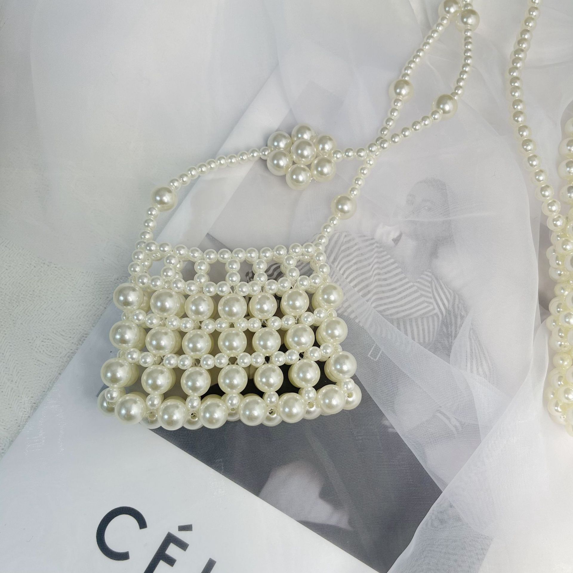 우아한 디자인 우아한 진주 중공 작은 가방 휴대용 어깨 크로스 바디 입 빨간 봉투 소녀 동전 지갑 가방