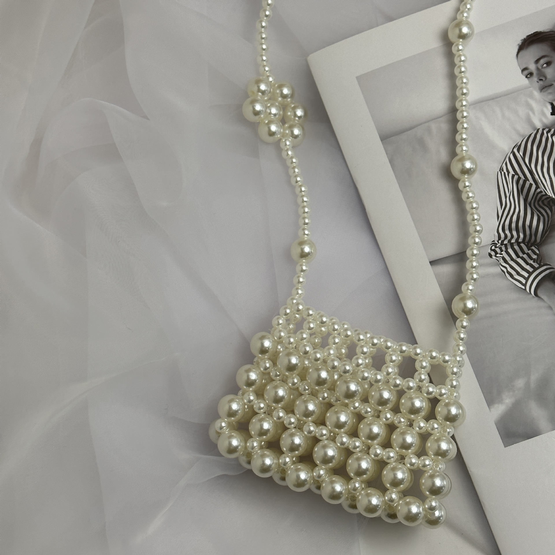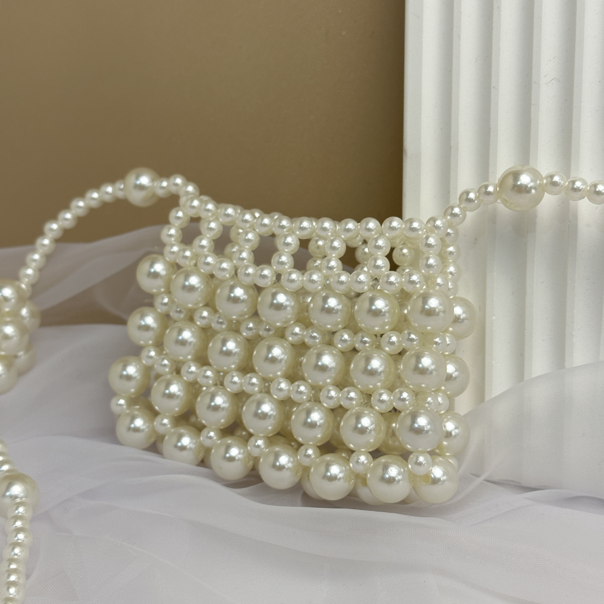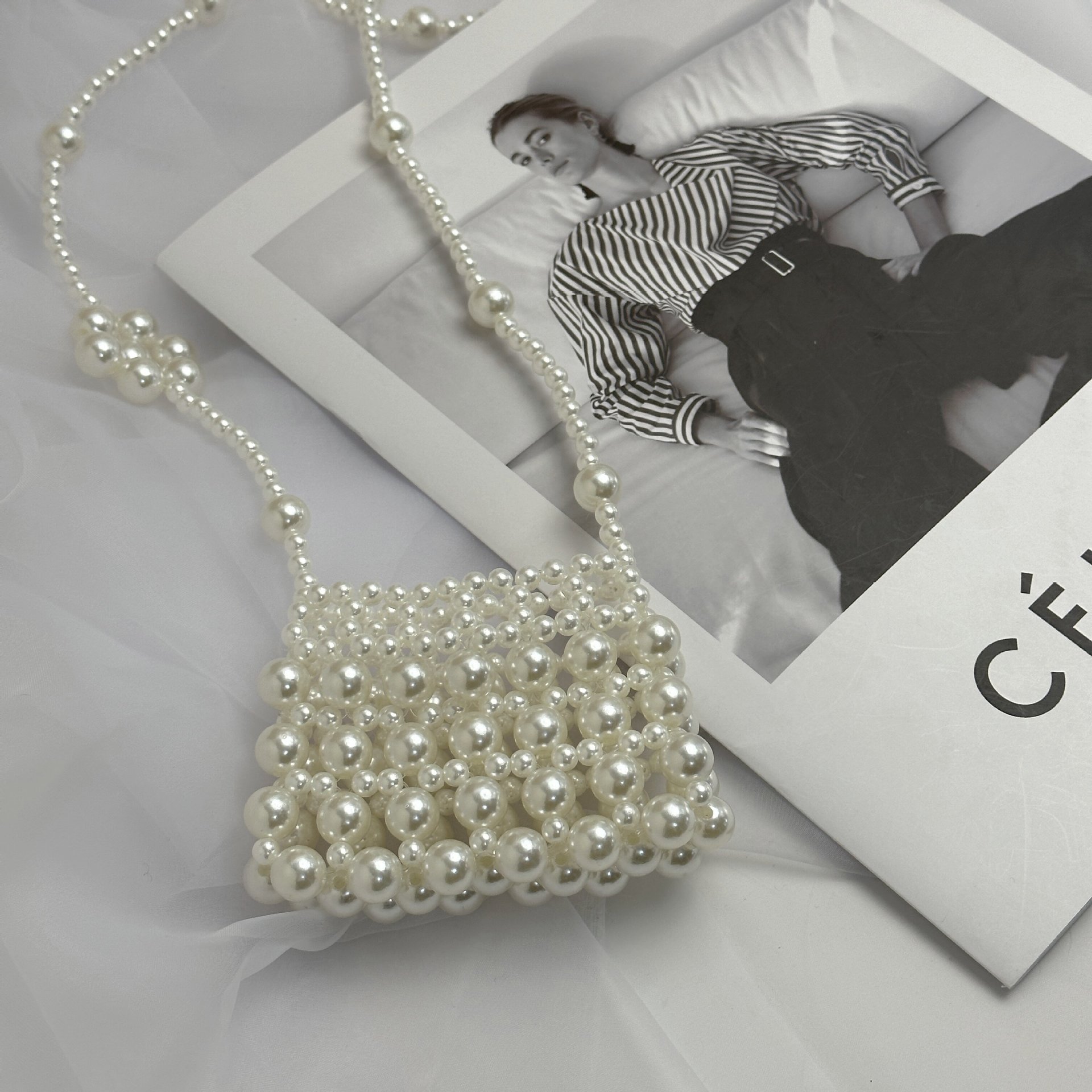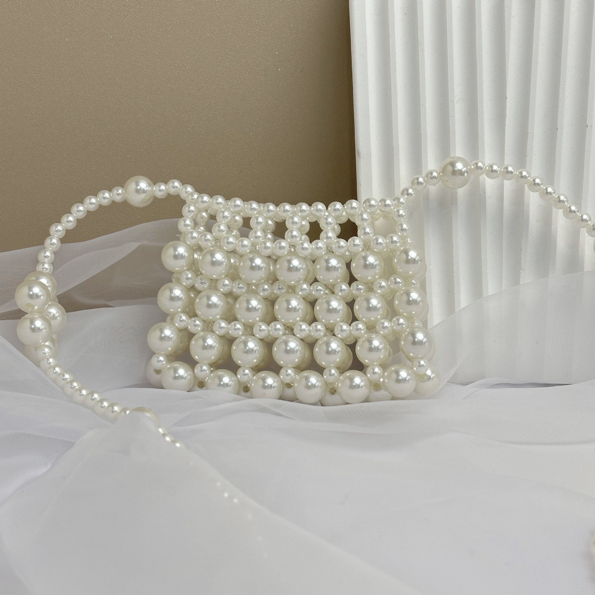 우아한 디자인 우아한 진주 중공 작은 가방 휴대용 어깨 크로스 바디 입 빨간 봉투 소녀 동전 지갑 가방