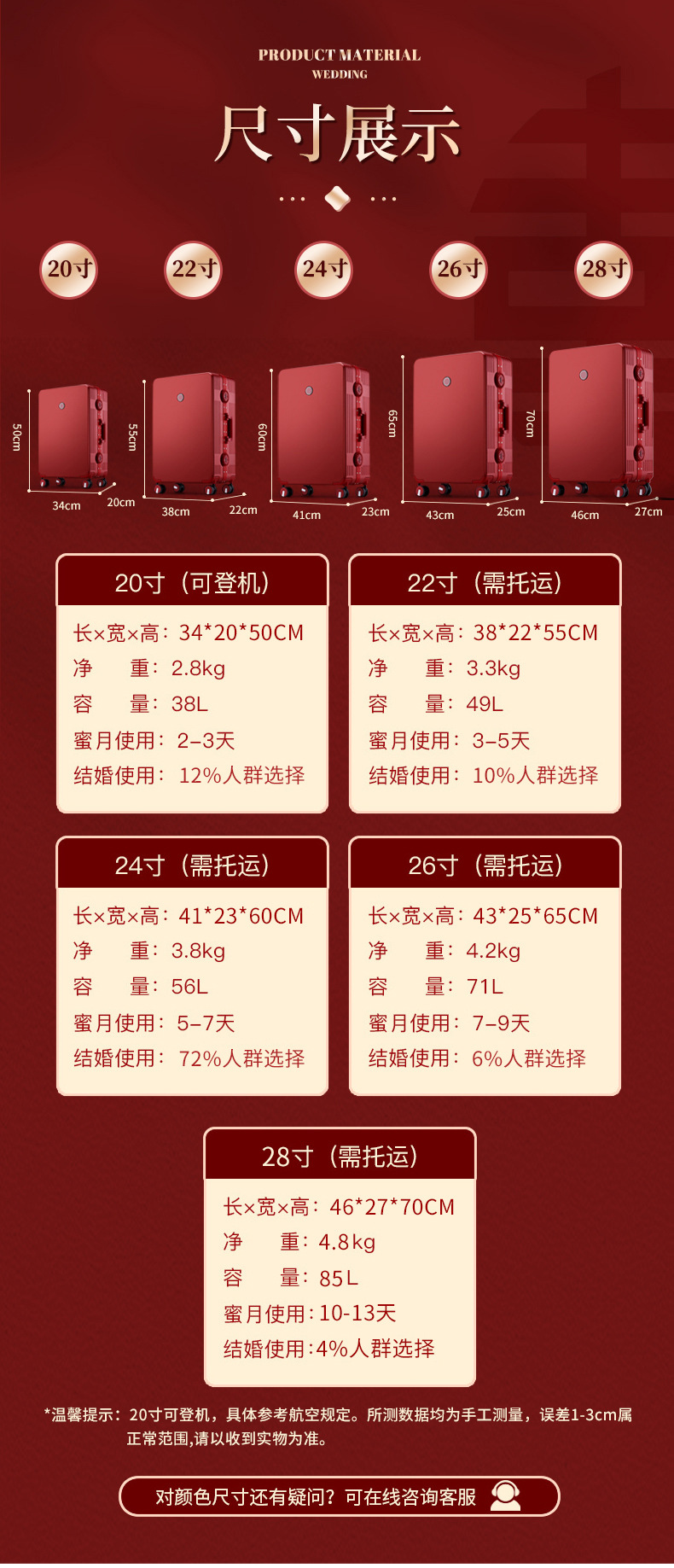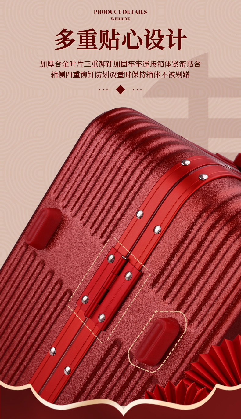 웨딩 수하물 케이스 여성용 웨딩 트롤리 케이스 범용 휠 여행 가방 동반 암호 상자 대용량 알루미늄 프레임 산악 보드 케이스