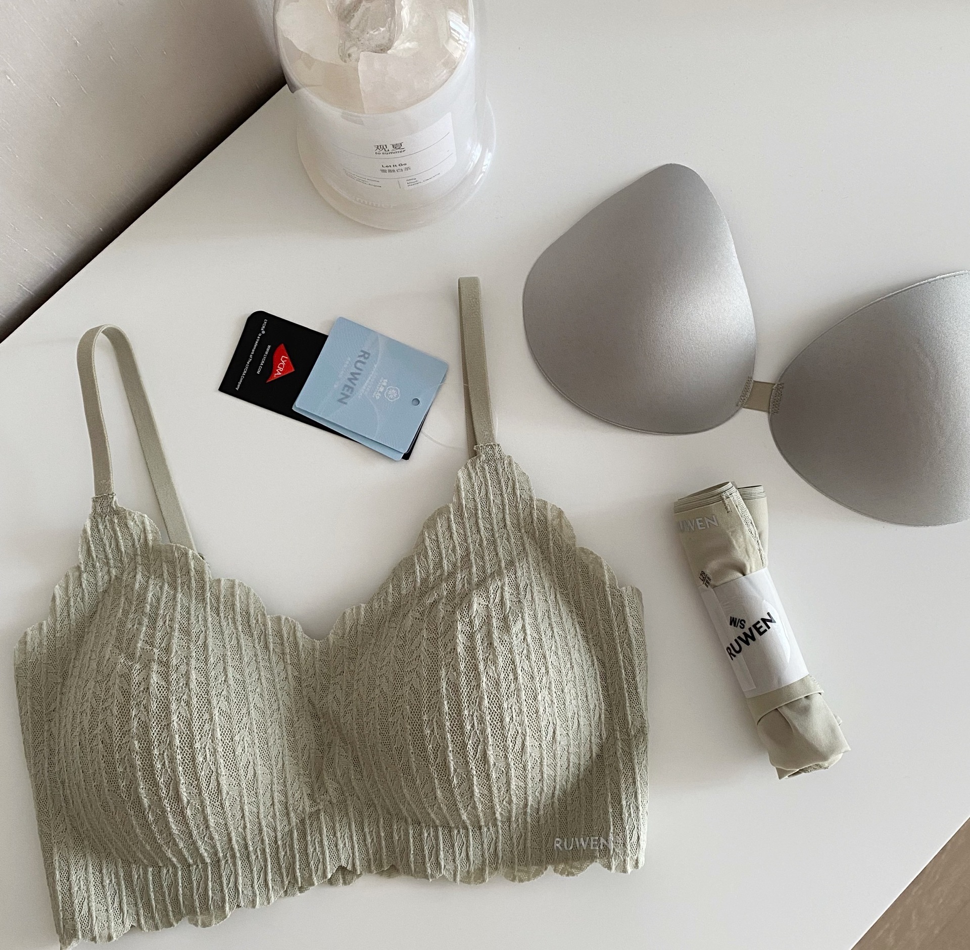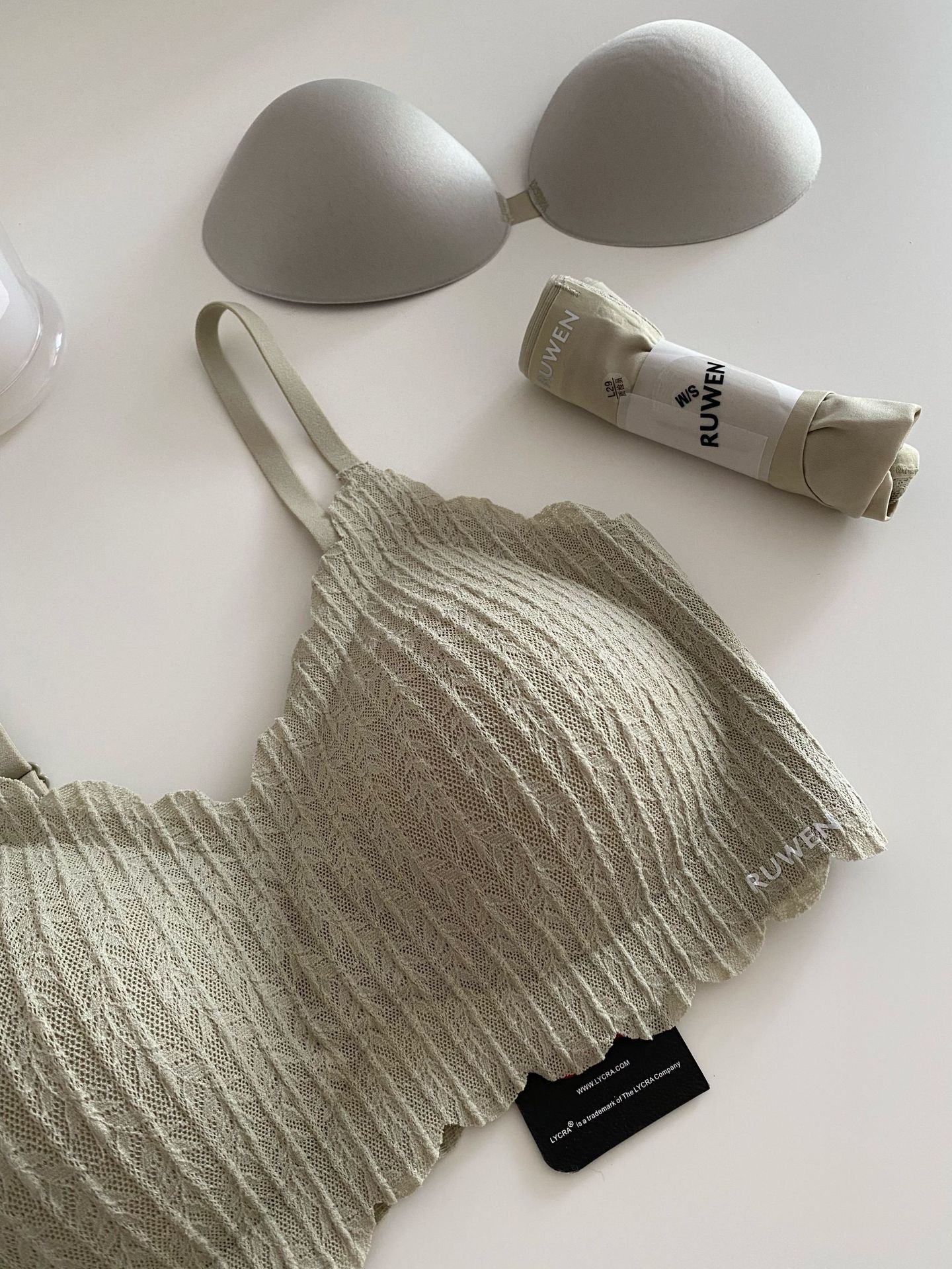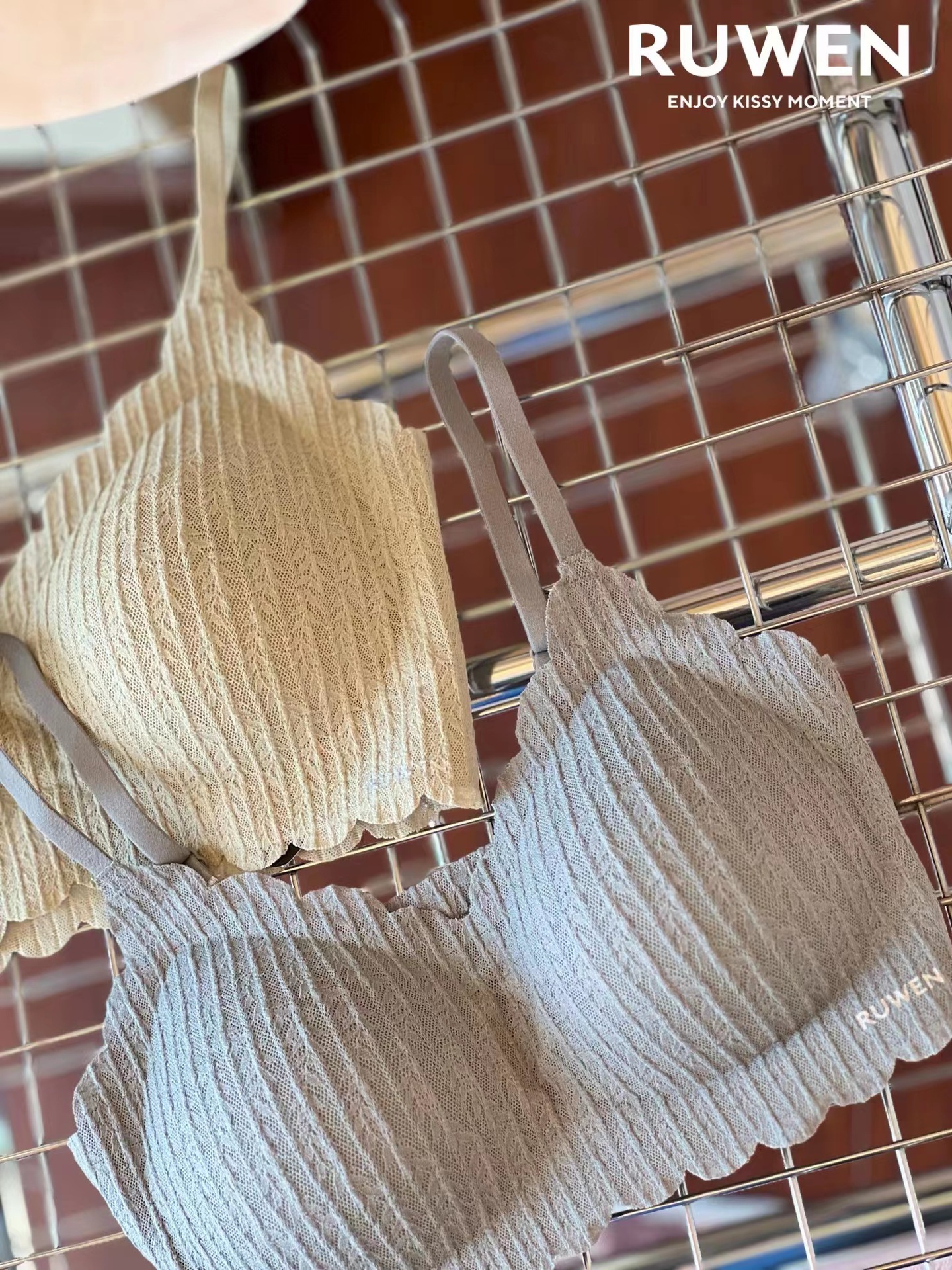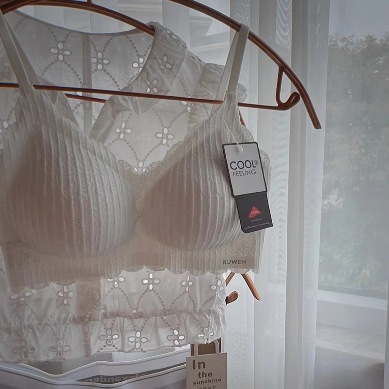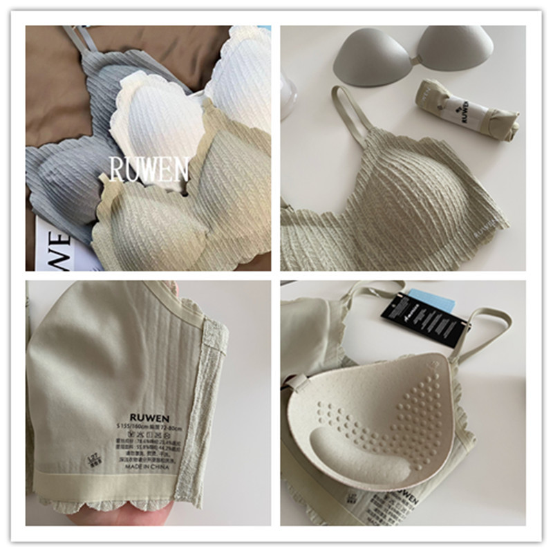2023 새로운 RUWEN 러브 키스 봄 레이스 공동 브랜드 속옷 키시 핑크 조끼 심리스 브라 세트