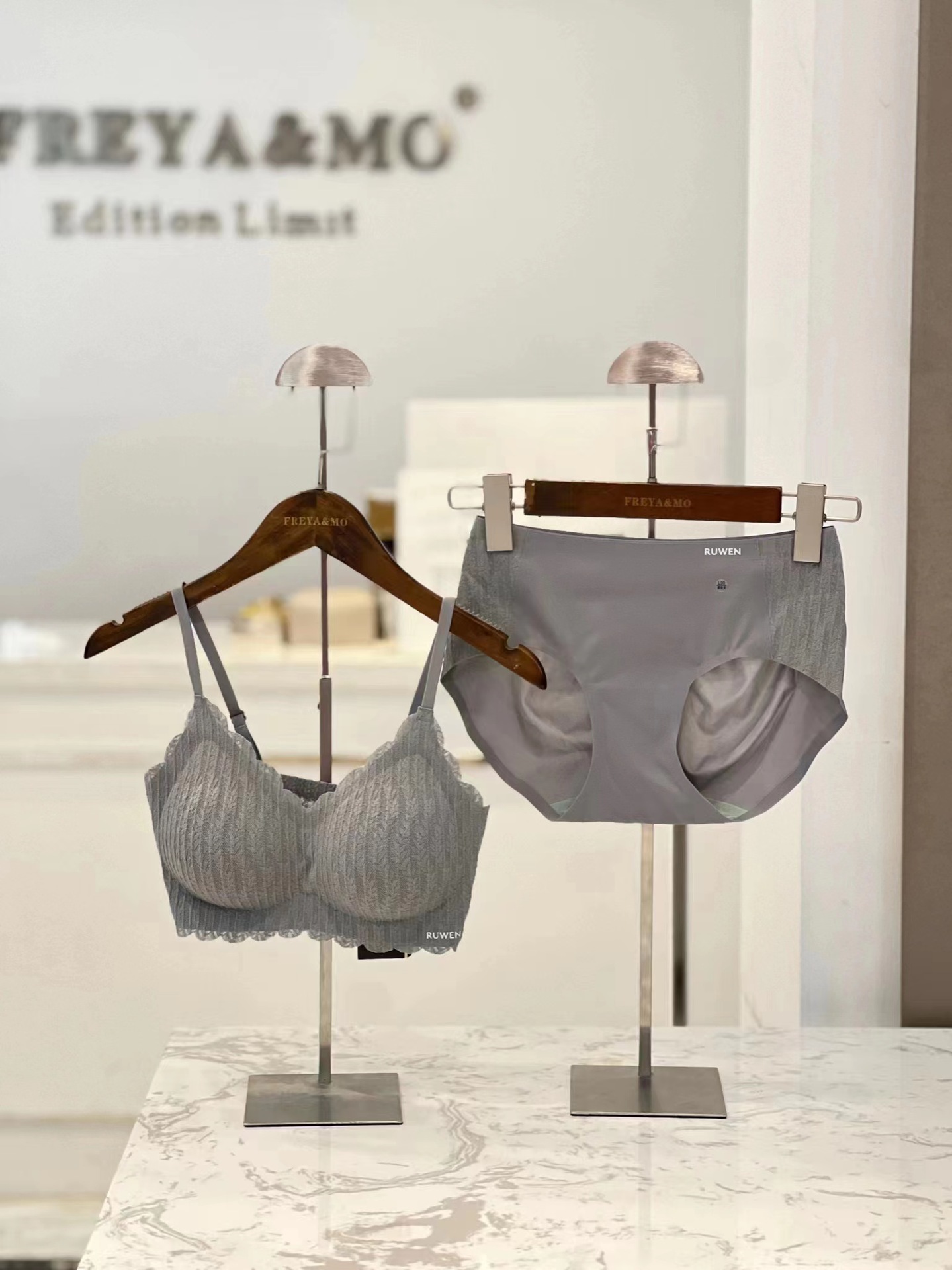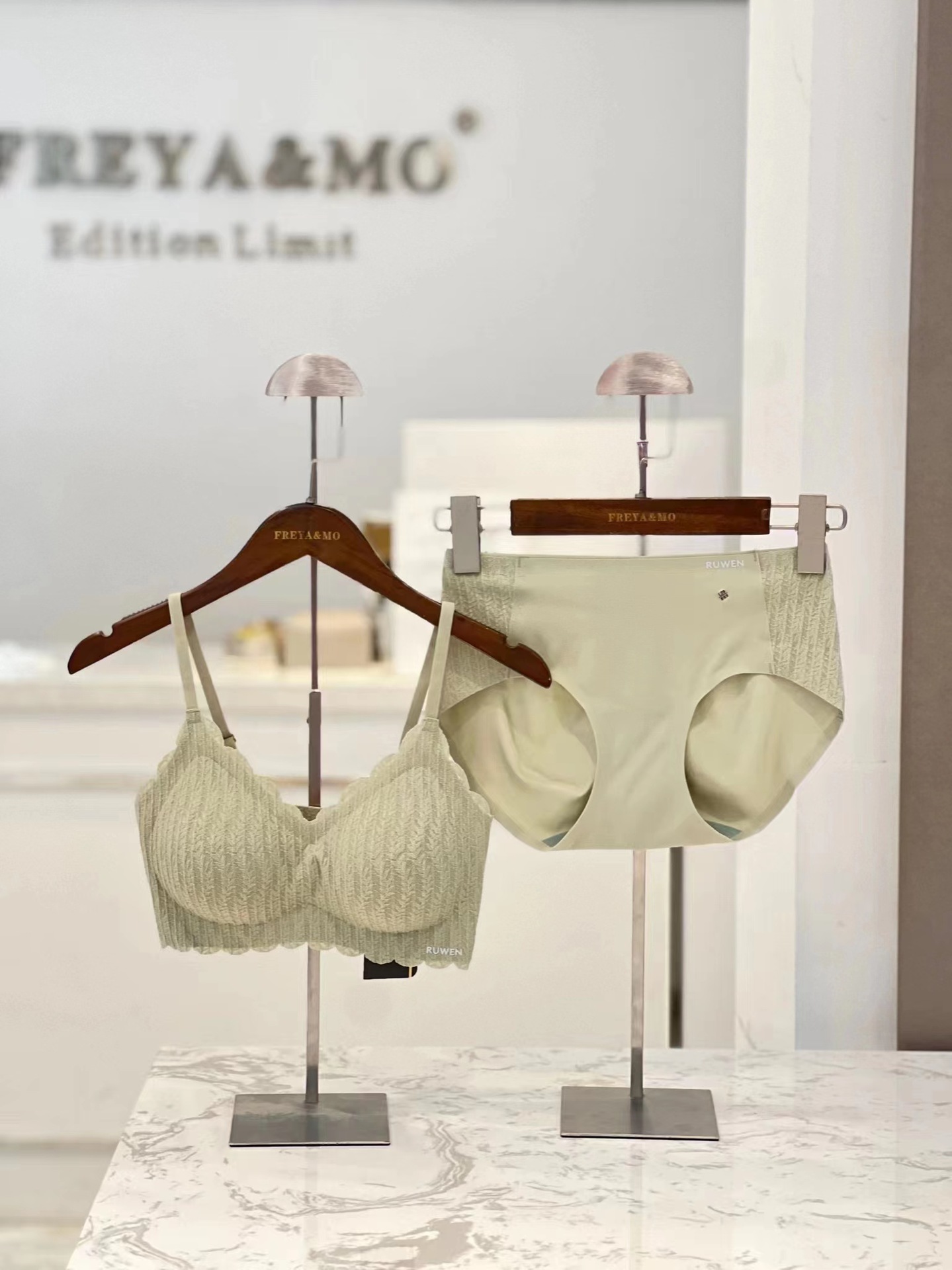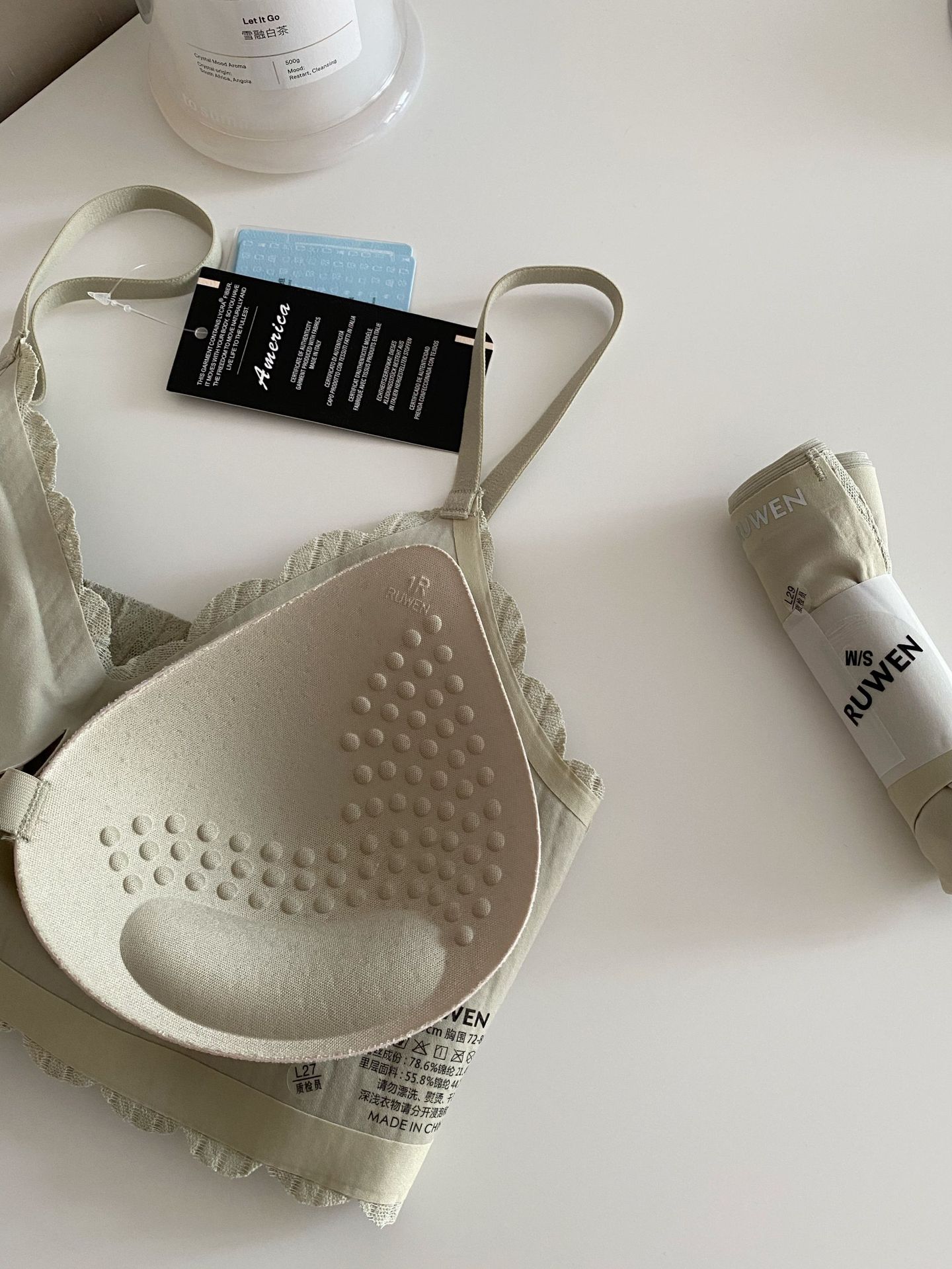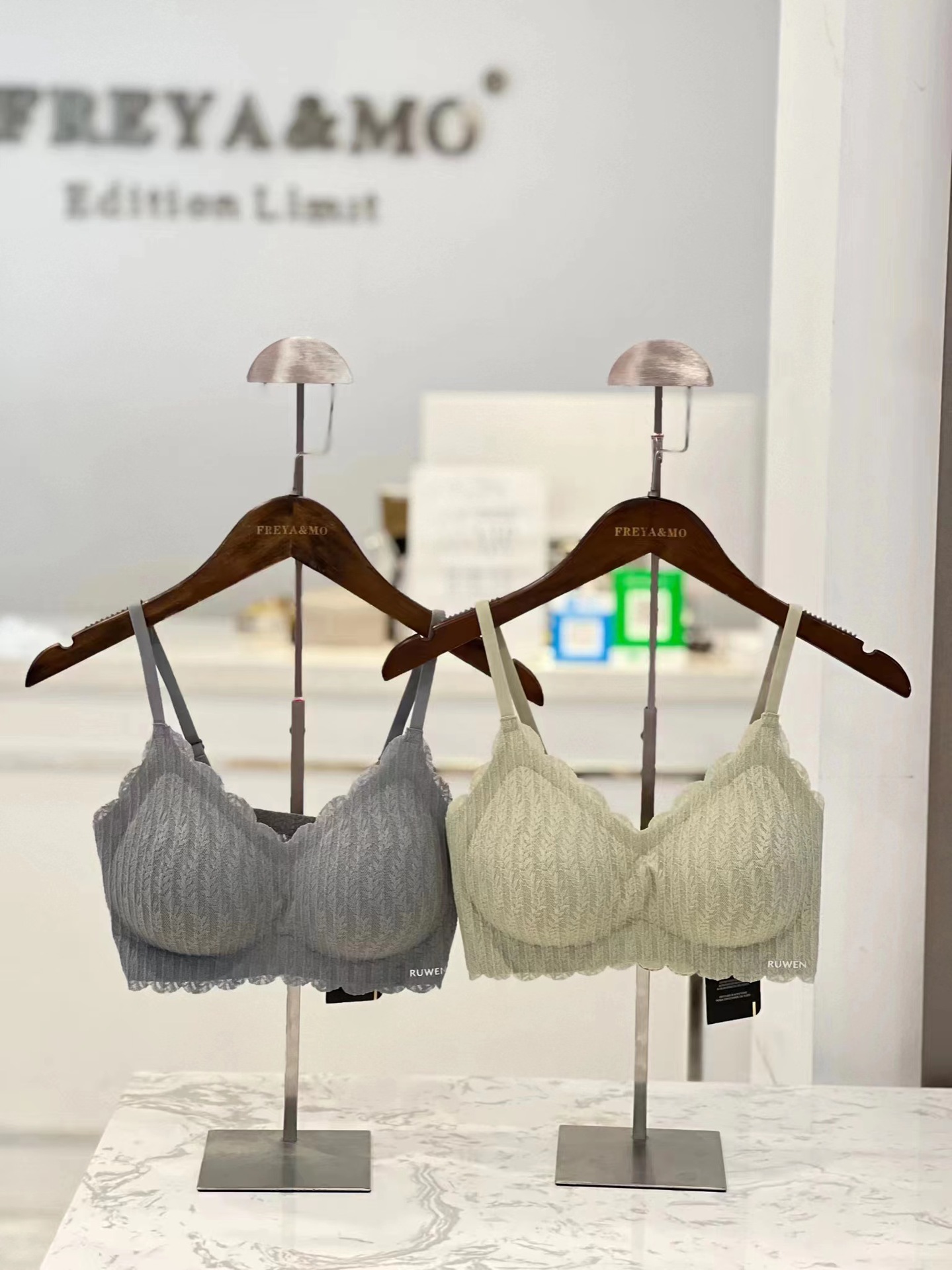 2023 새로운 RUWEN 러브 키스 봄 레이스 공동 브랜드 속옷 키시 핑크 조끼 심리스 브라 세트