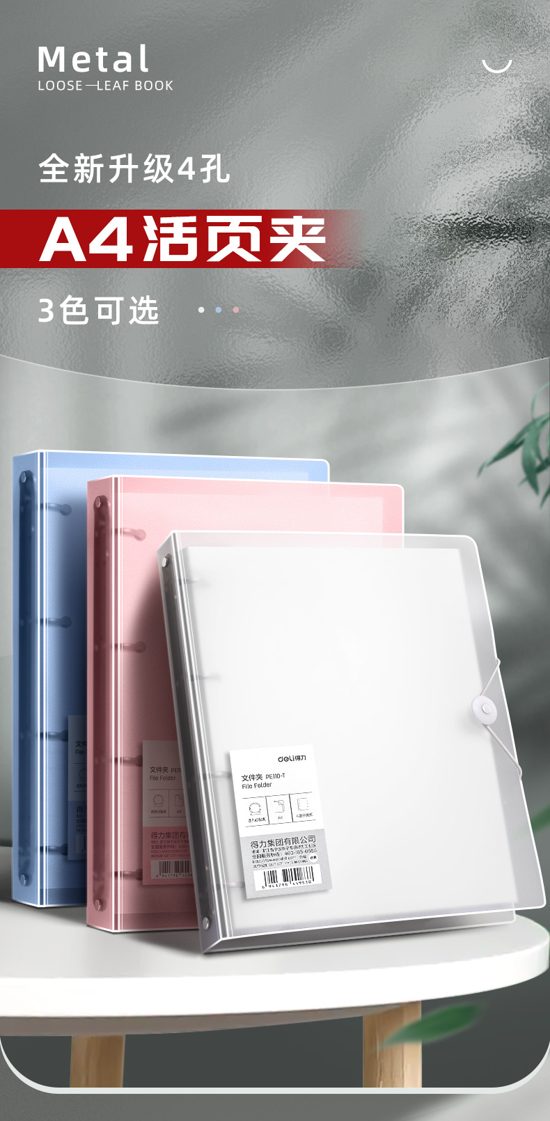 델리 4 홀 천공 바인더 폴더 A4 데이터 북 보관 투명 삽입 가방 대용량 사무실 도매