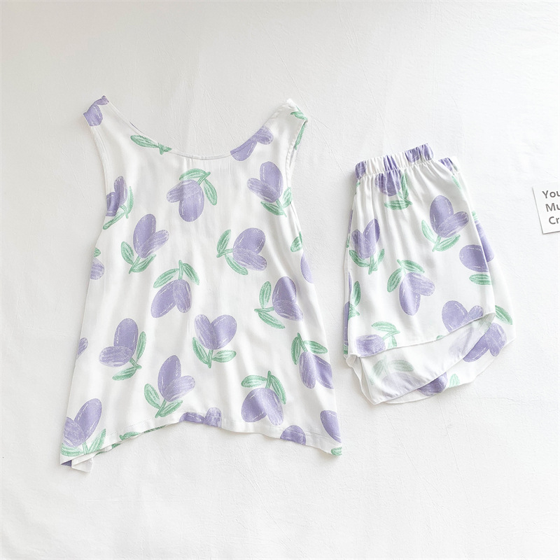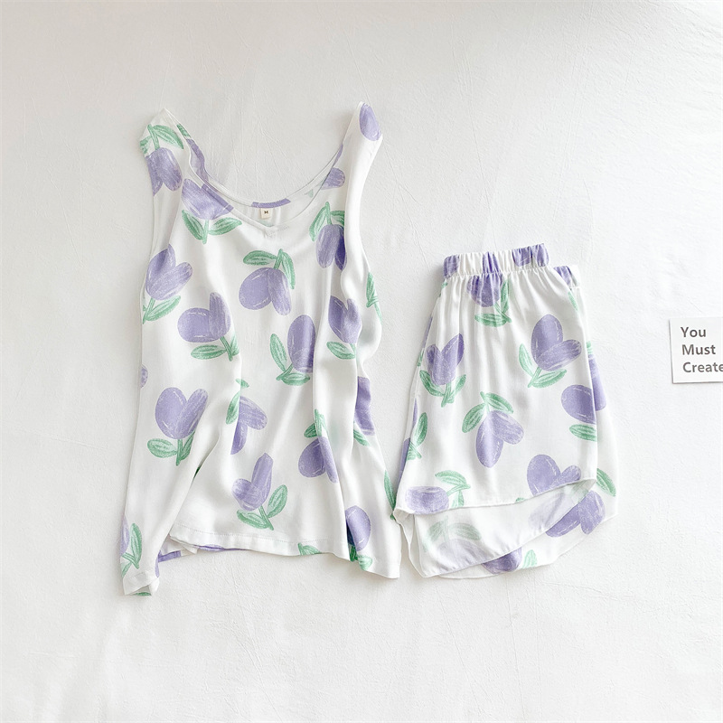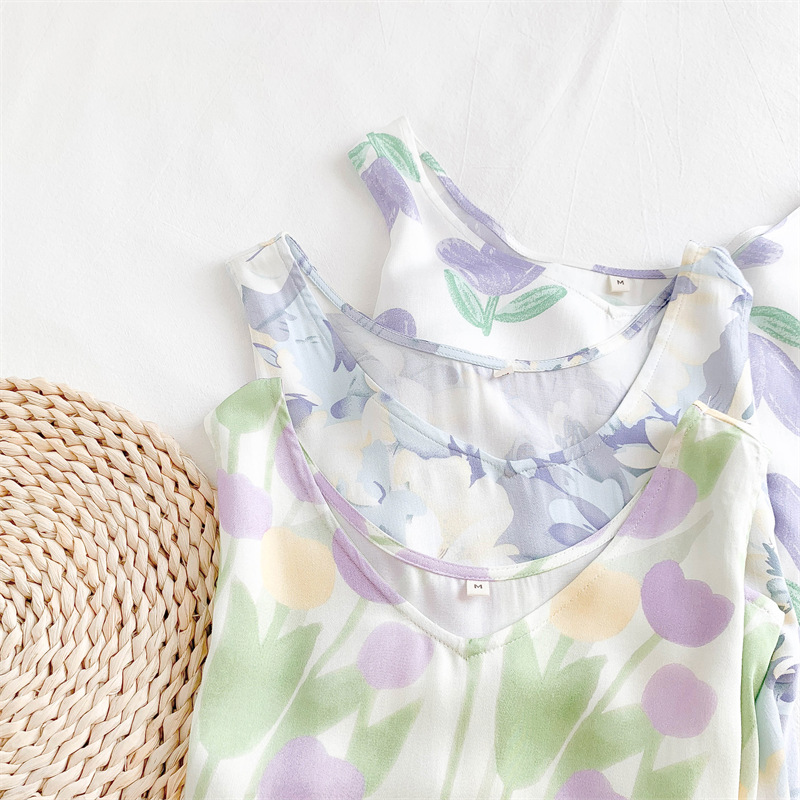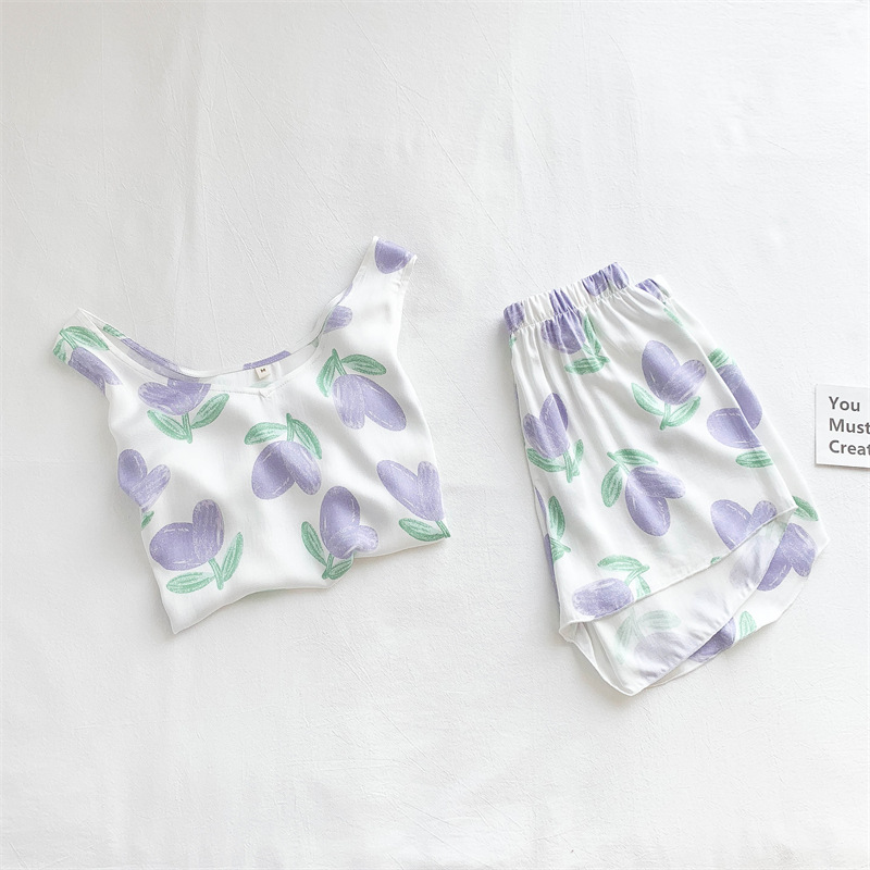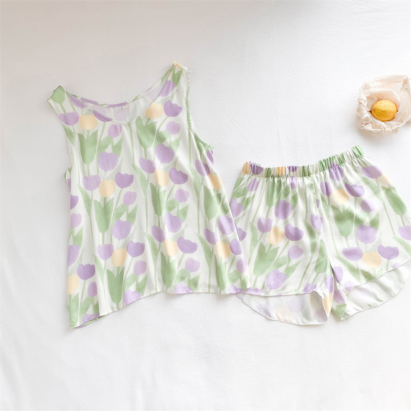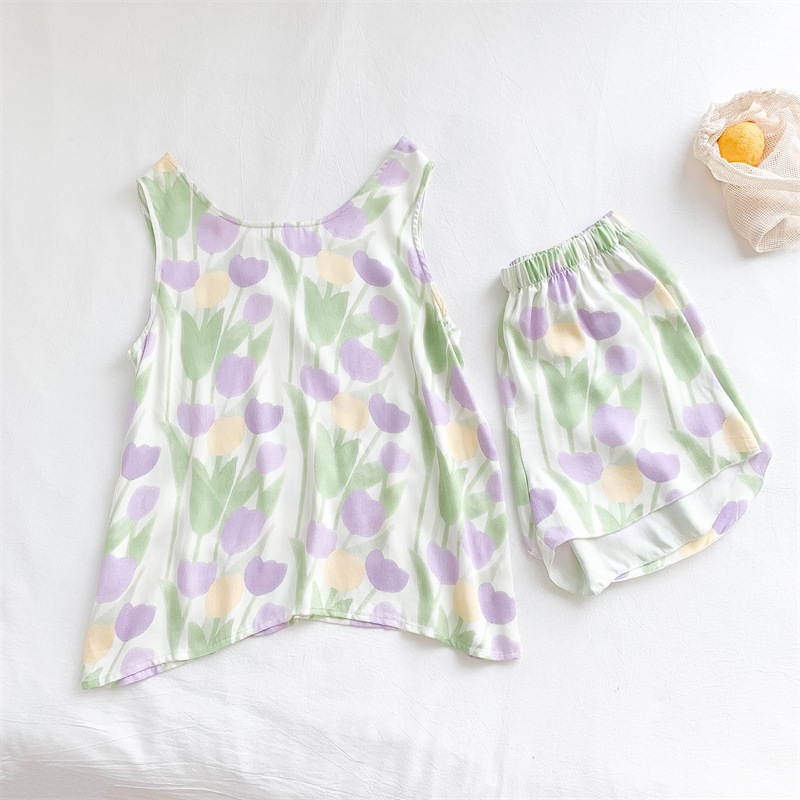 캐미솔 잠옷 여자의 여름 얇고 부드럽고 편안한 튤립 여름 느슨한 플러스 사이즈 투피스 가정 의류