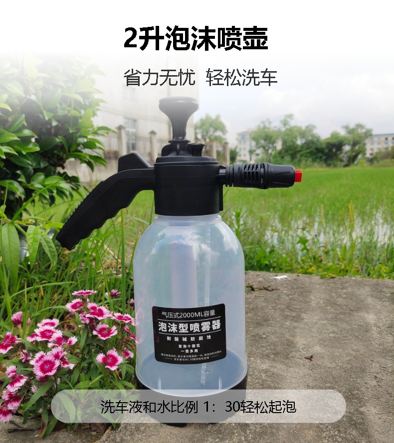 거품 물뿌리개 2 리터 수동 공기 압력 세차 주전자 물뿌리개 이중 용도 휴대용 분무기 가정 원예 배치 거품