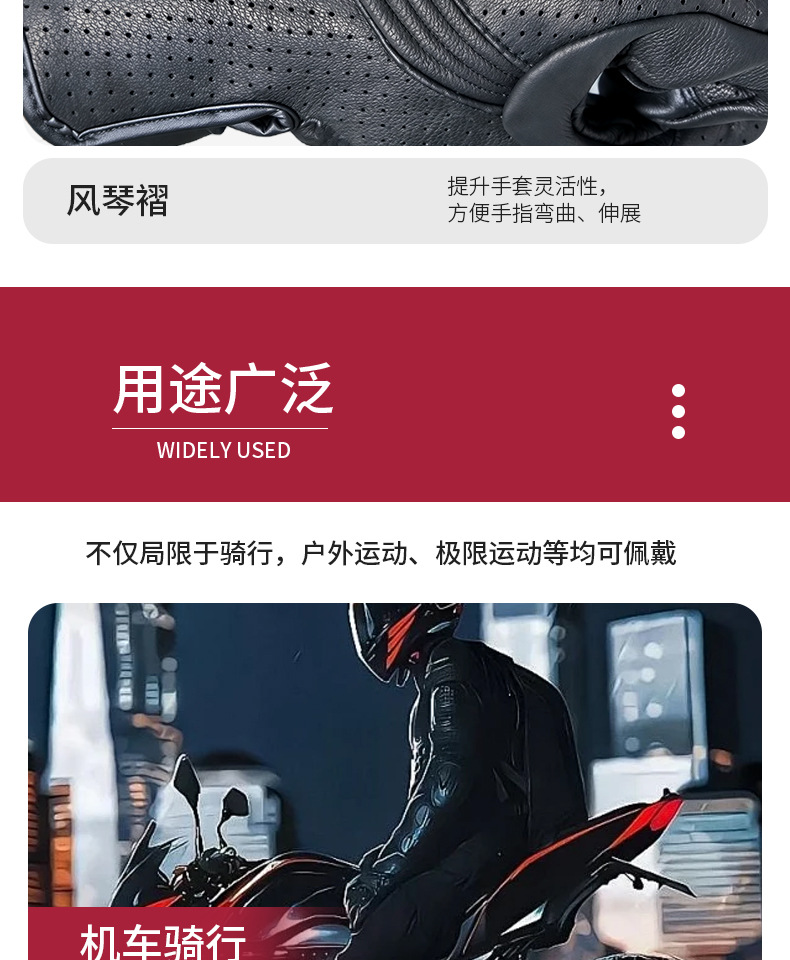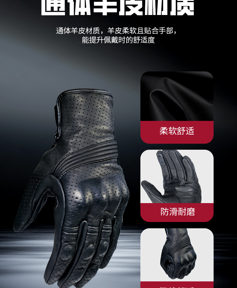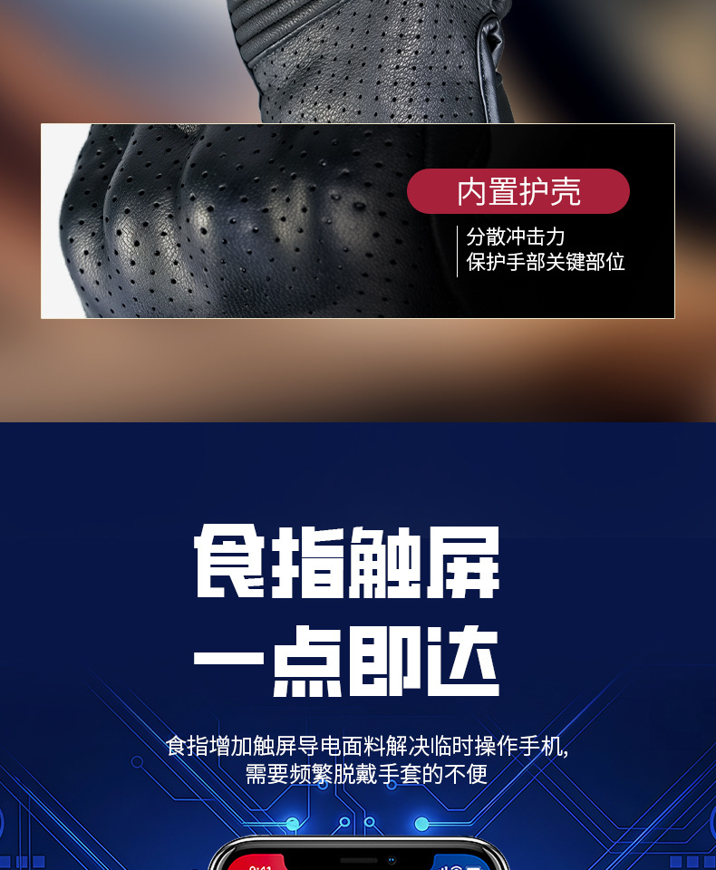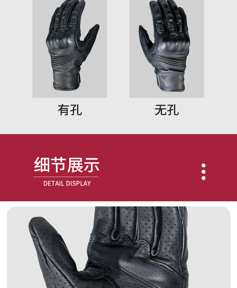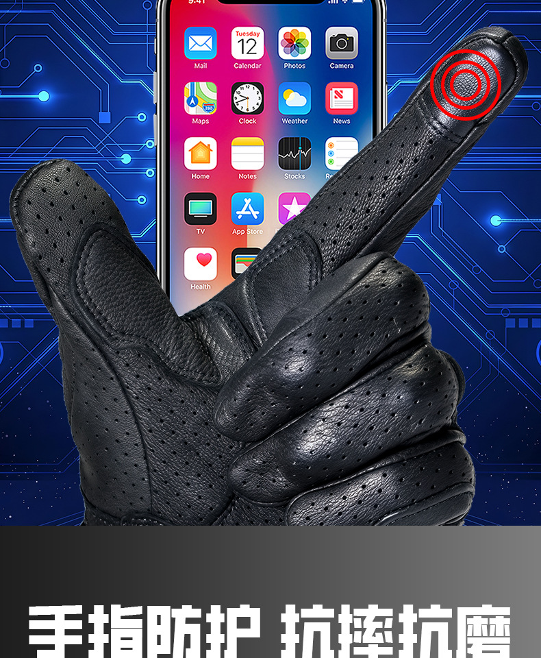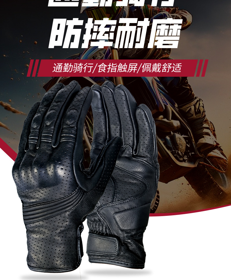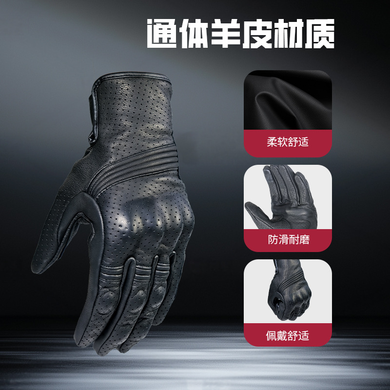 모터사이클 라이딩 장갑, 사계절 사용 가능, 낙상 방지, 터치스크린 가능 레이싱 장갑, 통기성 있는 천공 가죽 레이싱 장갑