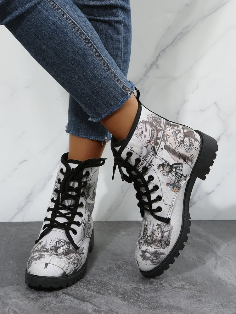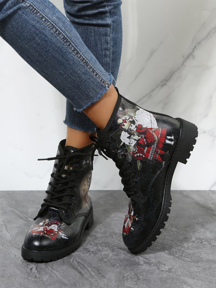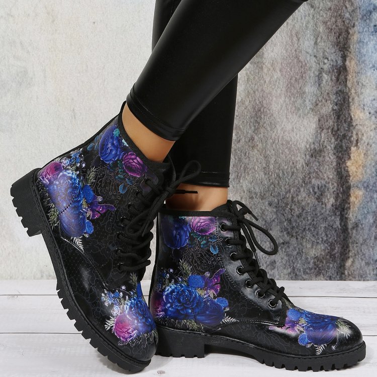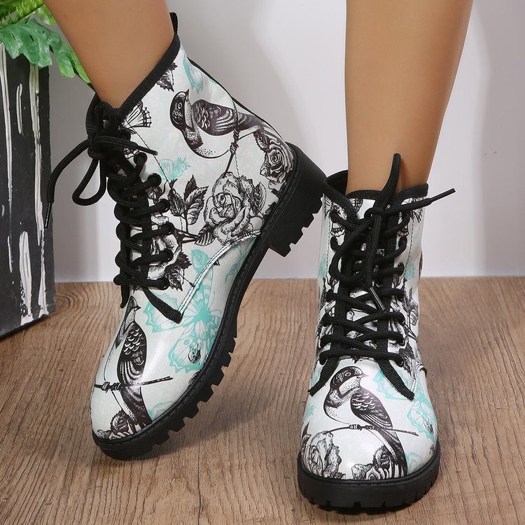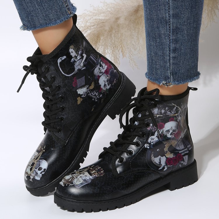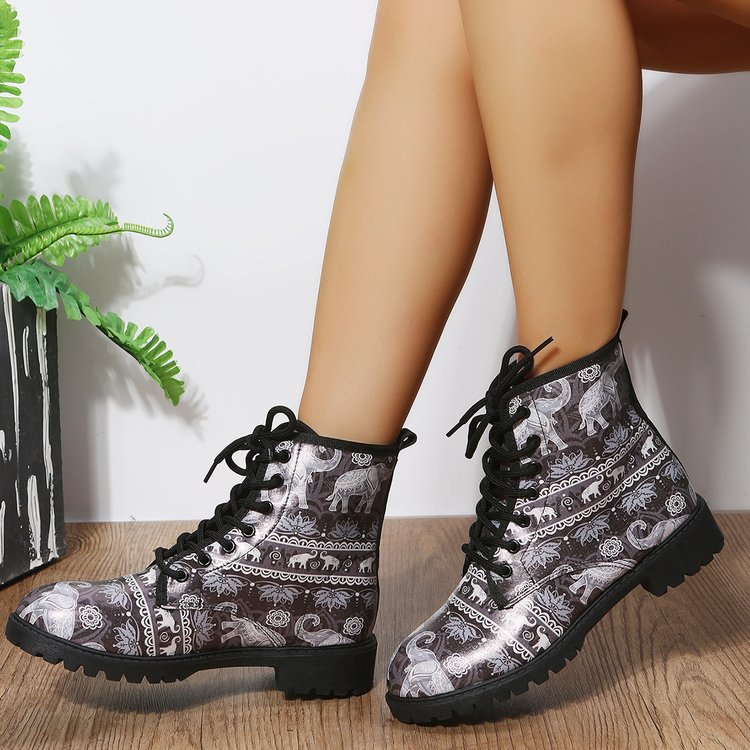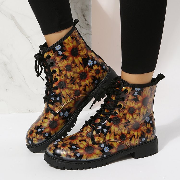 2023 대외 무역 플러스 사이즈 숙녀 인쇄 멀티 컬러 인쇄 패션 마틴 부츠 제조 업체 도매, 대량 콩