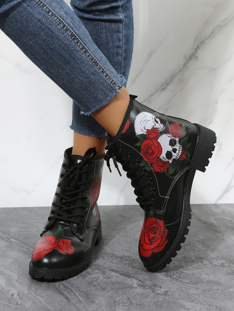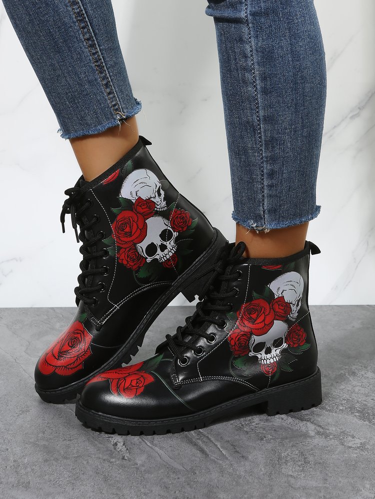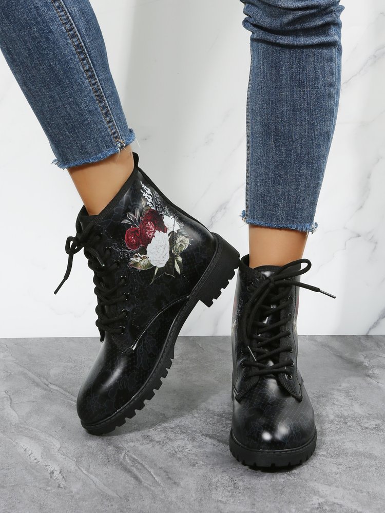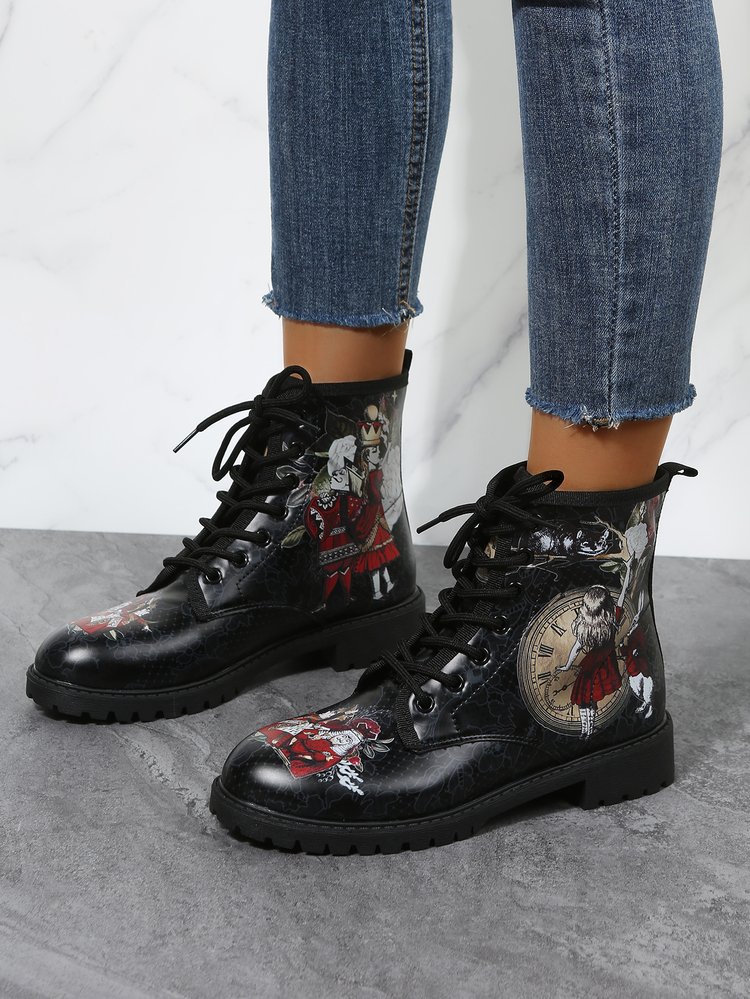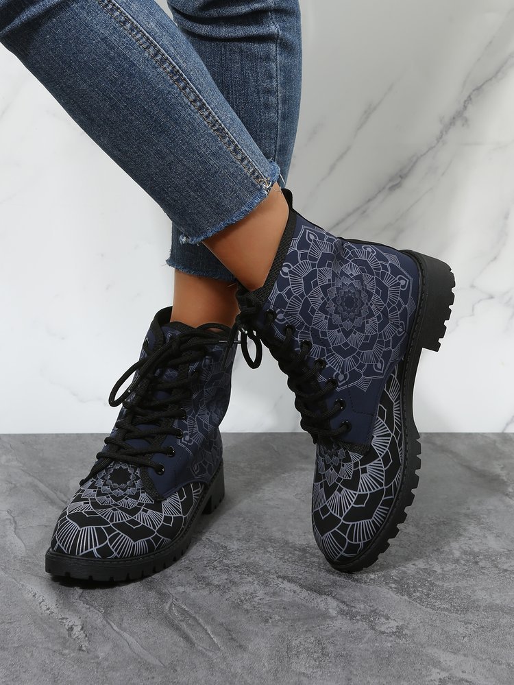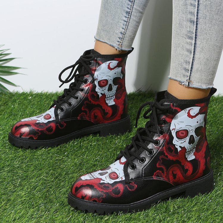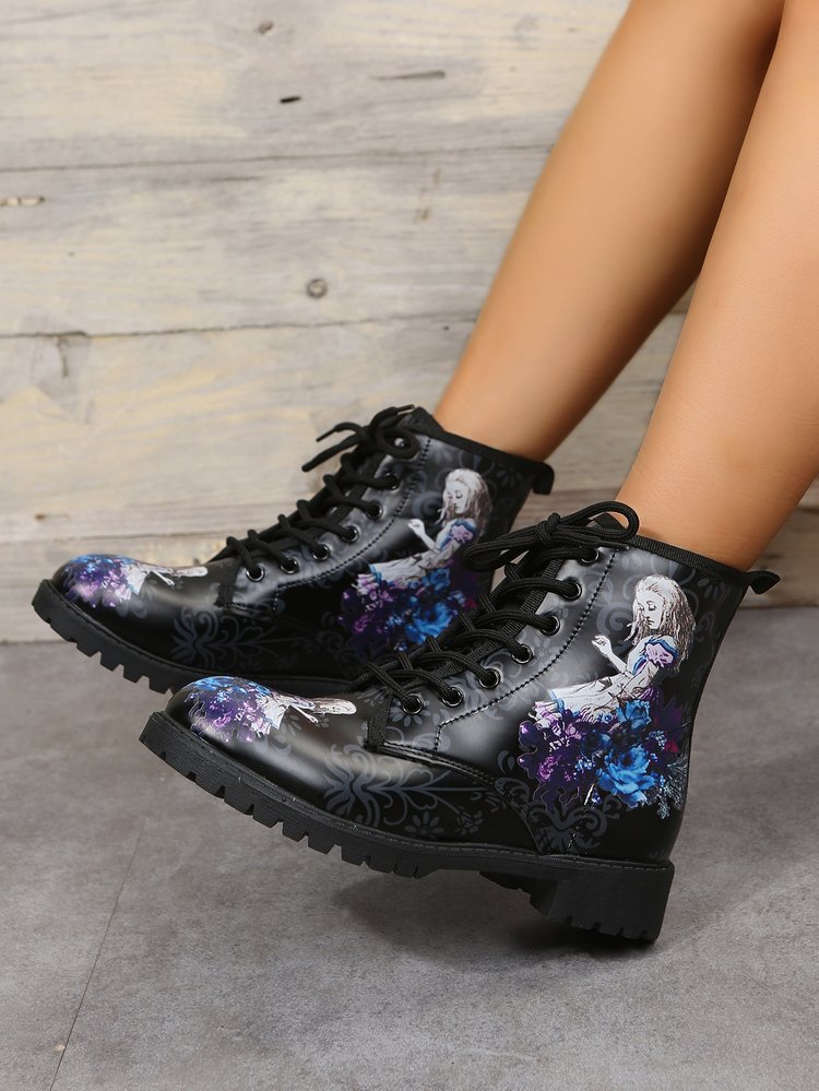 2023 대외 무역 플러스 사이즈 숙녀 인쇄 멀티 컬러 인쇄 패션 마틴 부츠 제조 업체 도매, 대량 콩