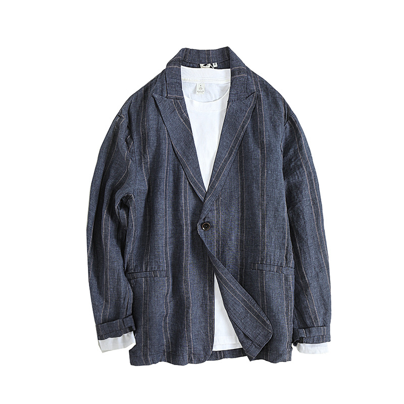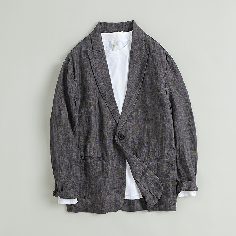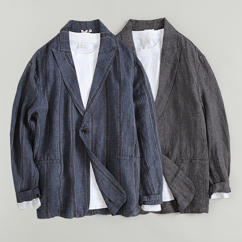 봄과 여름 새로운 작은 세트 싱글 브레스트 린넨 자켓 남성 캐주얼 복고풍 면화와 린넨 느슨한 세트 제조 업체 8331