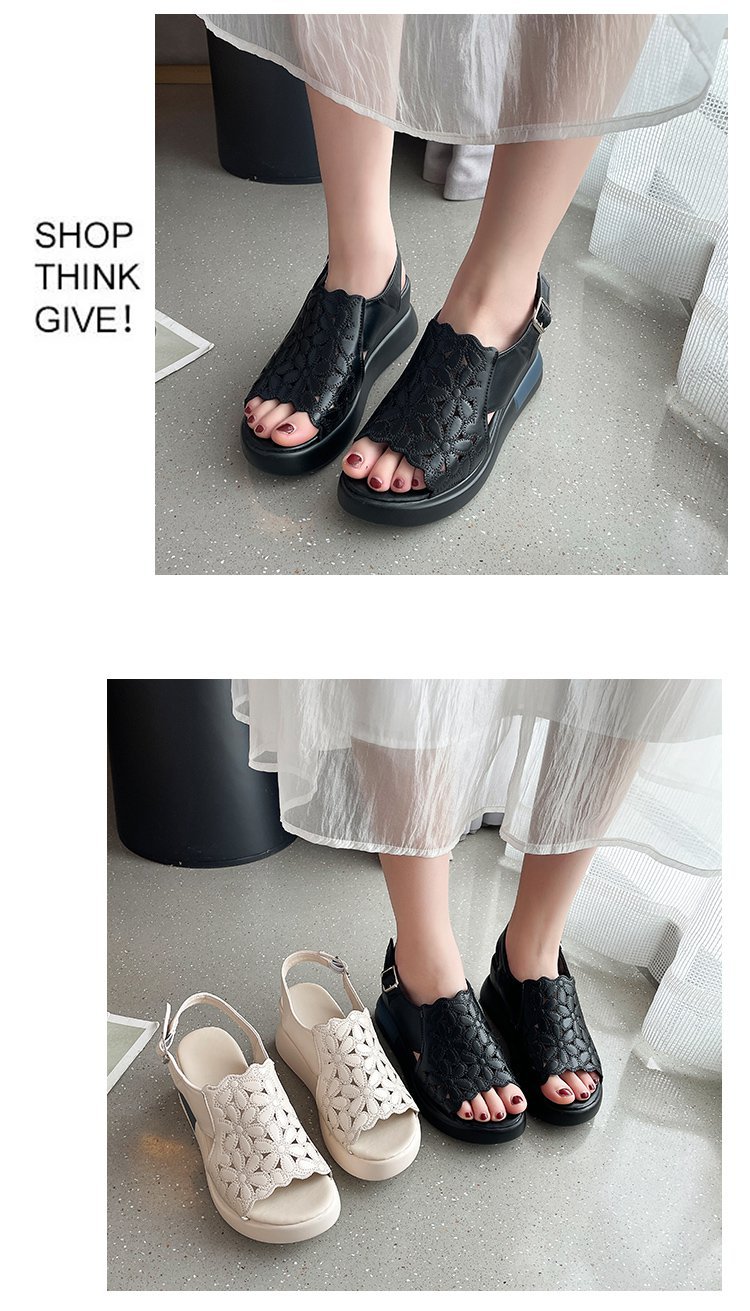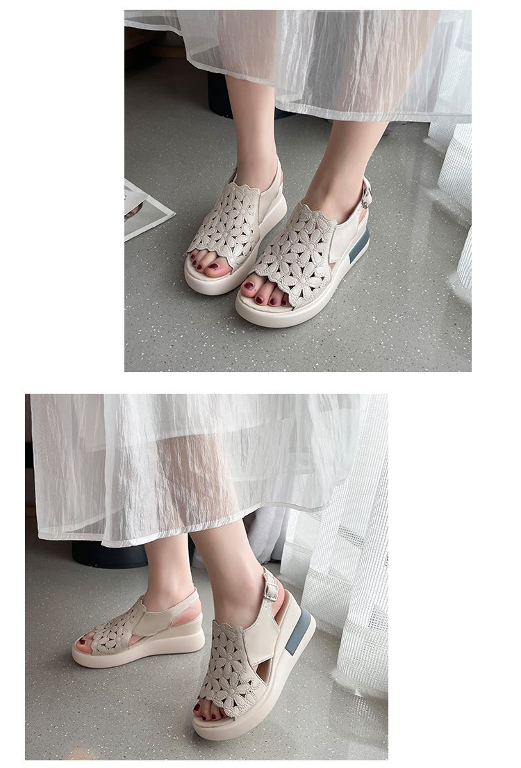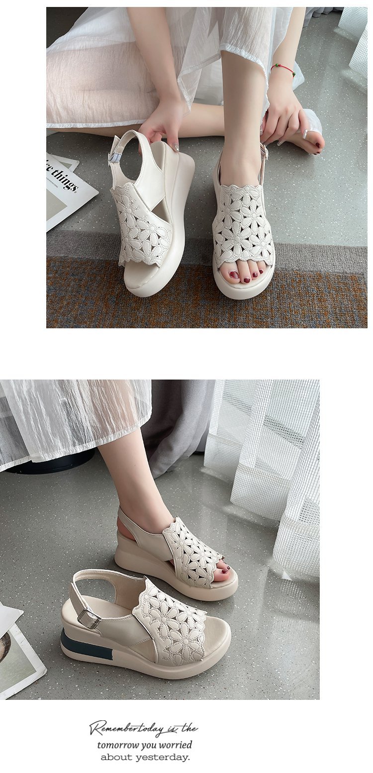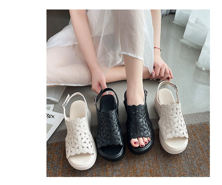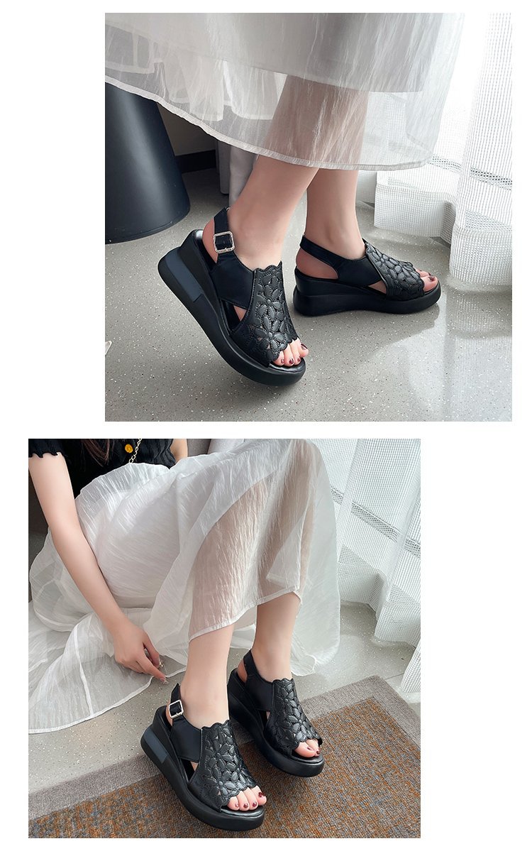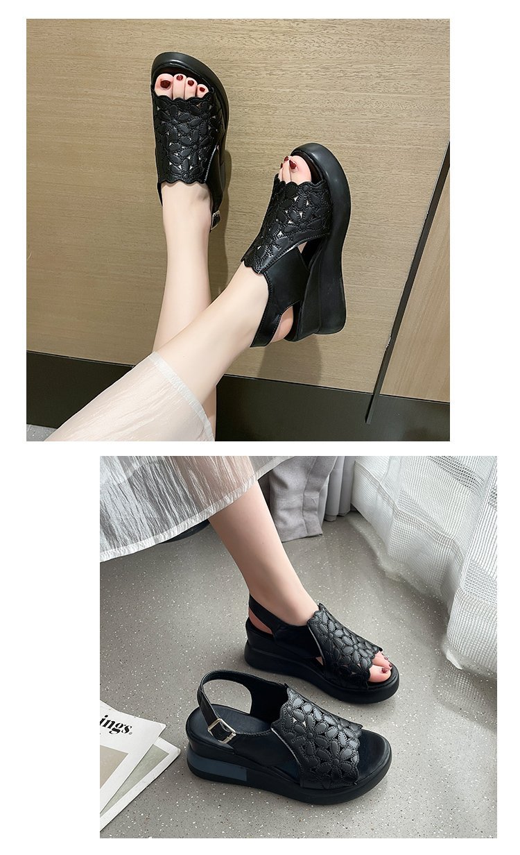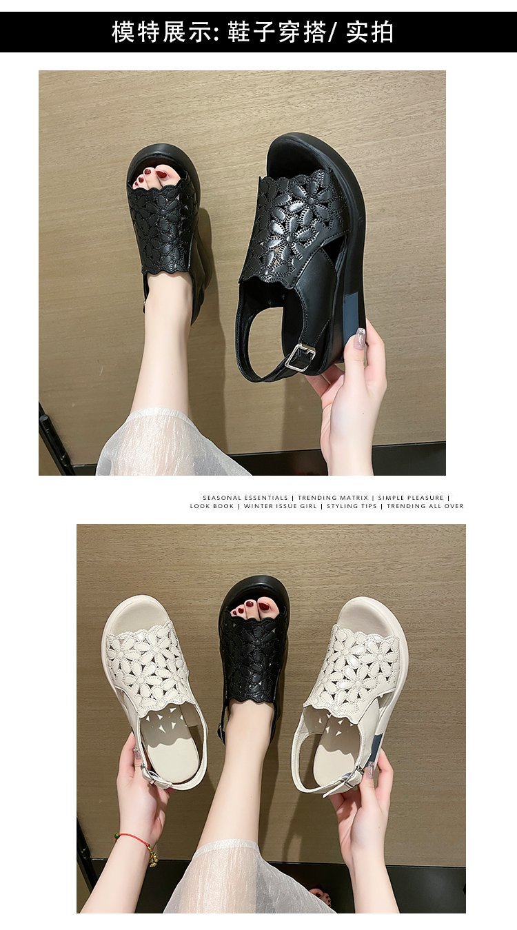 웨지 샌들 도매 여성 2025 여름 새로운 플랫폼 꽃 두꺼운 밑창 샌들 물고기 입 패션 중공 샌들 여성