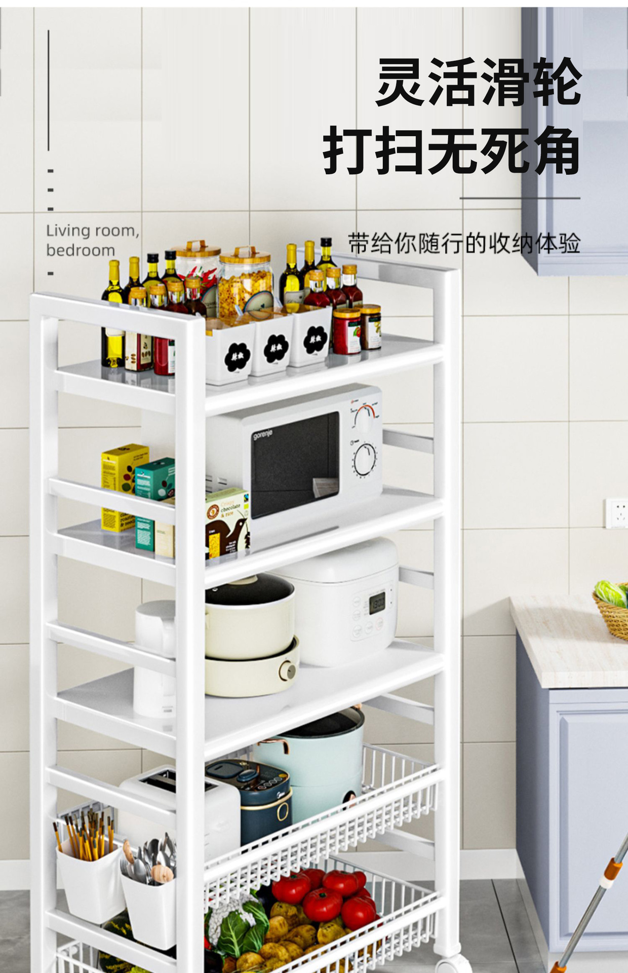 주방 수납 랙 플로어 스탠딩 다층 전자 레인지 수납 랙 냄비 선반 냄비 수납 랙 가정용