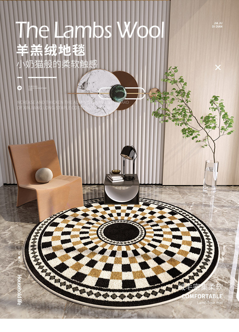 거실 라운드 카펫 회전 의자 흔들 의자 바닥 매트 연구 컴퓨터 의자 고급 감각 의자 매트 미끄럼 방지 커피 테이블 담요