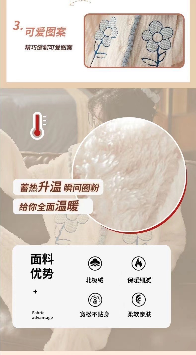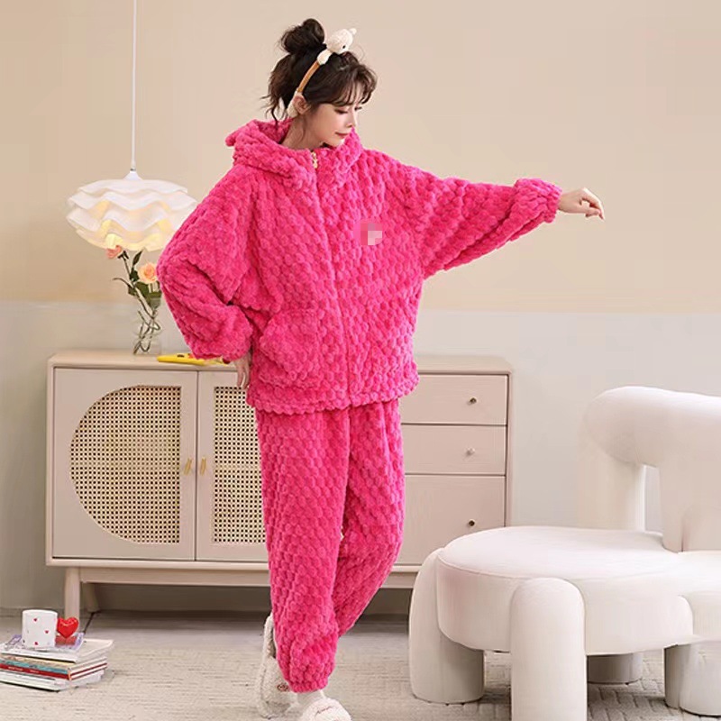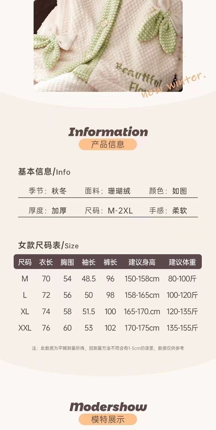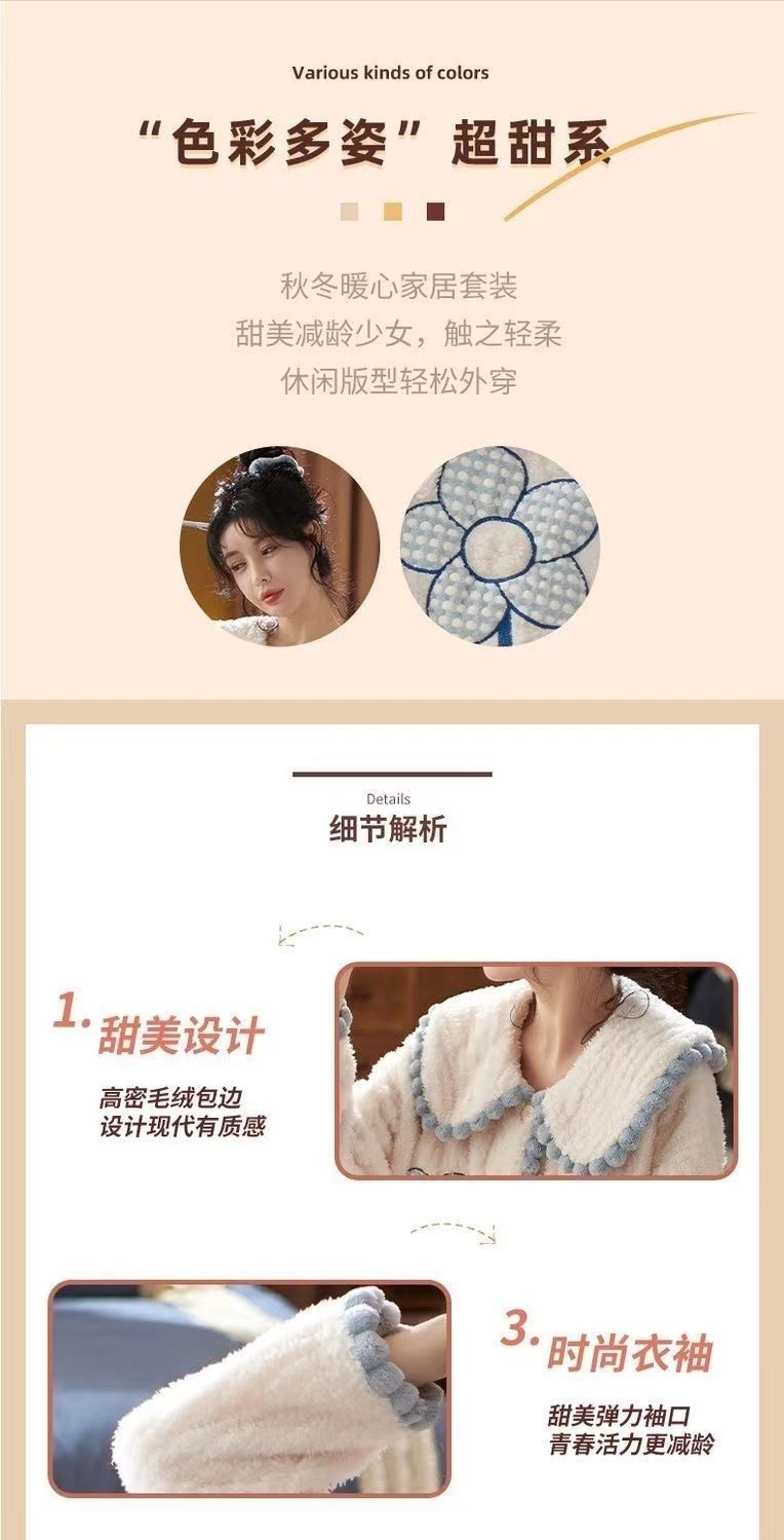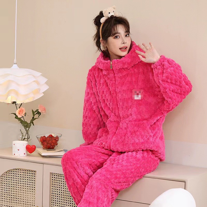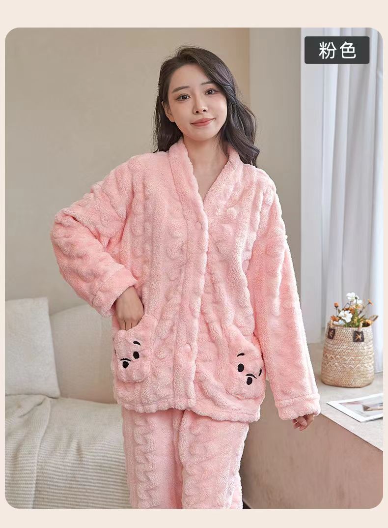 2023 새로운 산호 양털 잠옷 V-넥 가정 옷 세트 입고 봉제 따뜻한 잠옷 세트