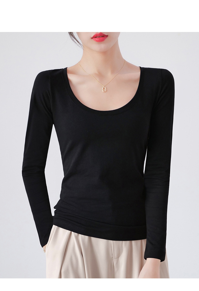 순면 라운드넥 슬림핏 긴팔 블랙 이너웨어 여성용 봄 2026 신상 티셔츠 단색 티셔츠 봄가을