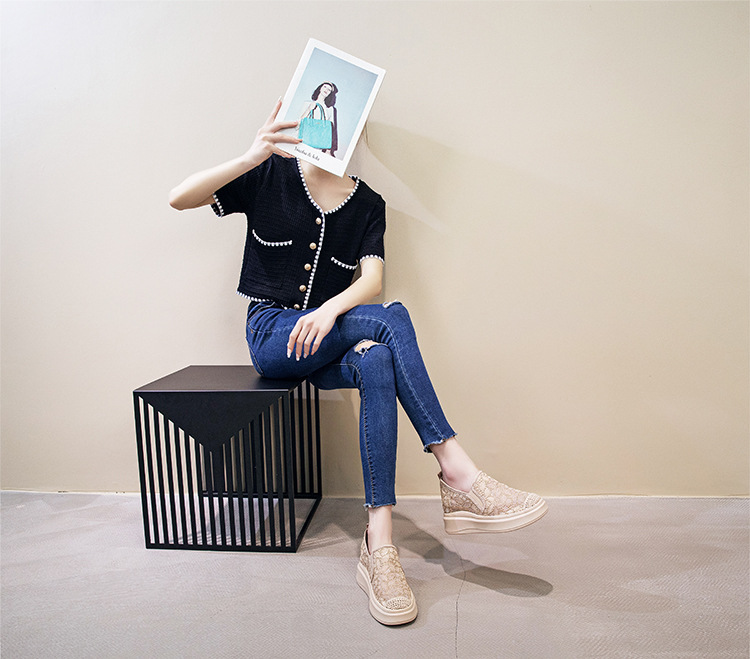 7cm 신형 메쉬 어부 신발 여성용 키높이 2025 여름 두꺼운 밑창 캐주얼 신발 소형 사이즈 31 32 33 로퍼
