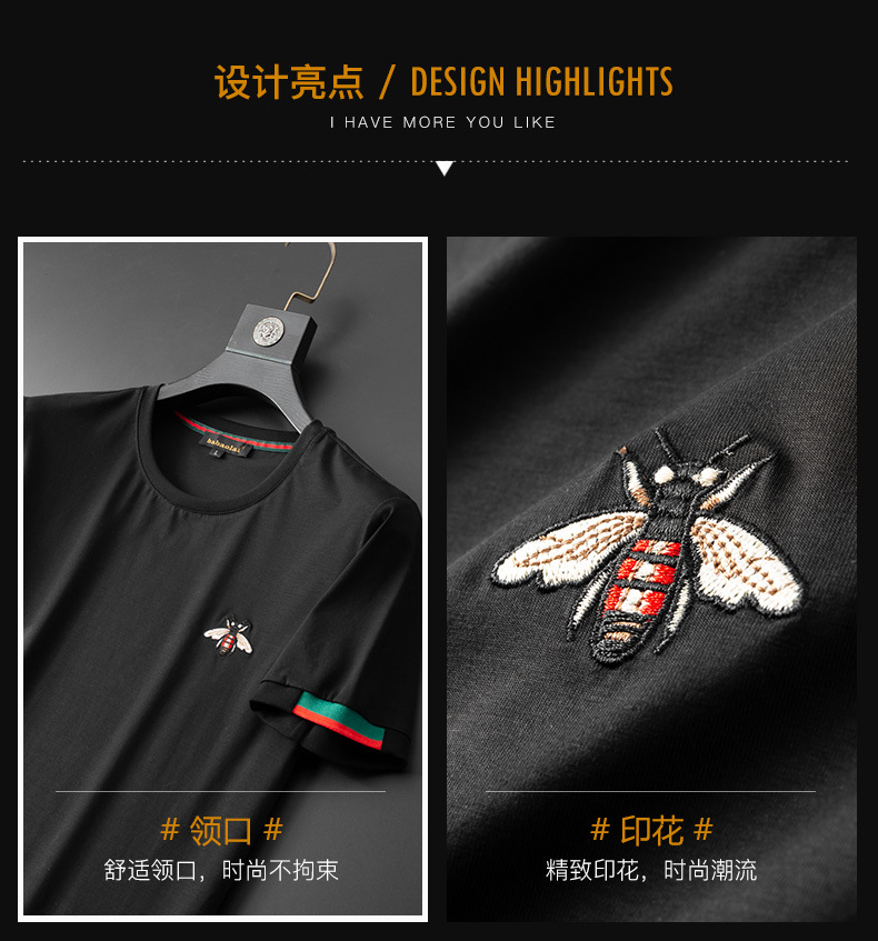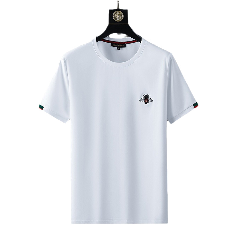 리틀 비 자수 캐주얼 반팔 남성 티셔츠 2023 여름 새 커플 화이트 베이스 반팔 티셔츠 트렌디