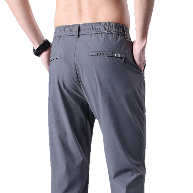 하이 스트레치 아이스 실크 팬츠 2023 여름 새 남성 캐주얼 바지 남성용 경량 통기성 속건 스트레이트 롱 팬츠