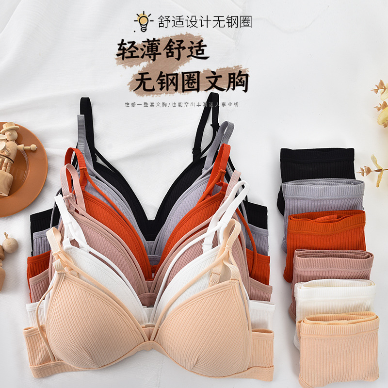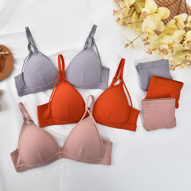 속옷 세트 여자의 작은 가슴 섹시 얇은 프랑스 삼각형 컵 아니 스틸 링 아름다운 뒤 브래지어 팬티 2 종 세트