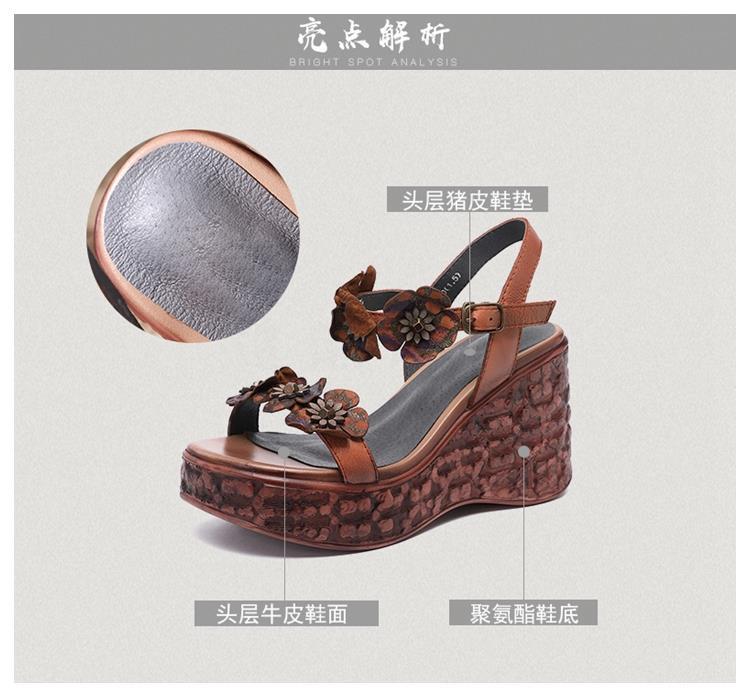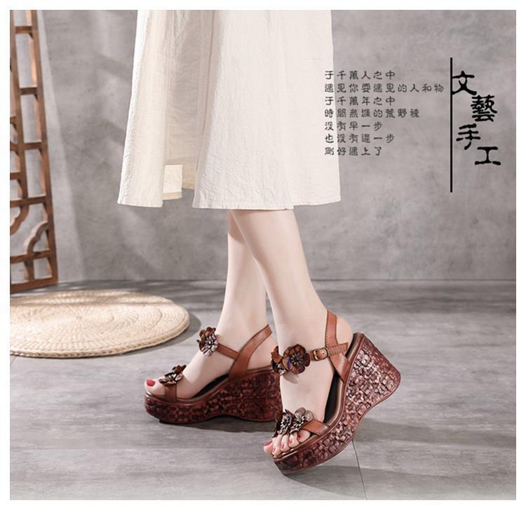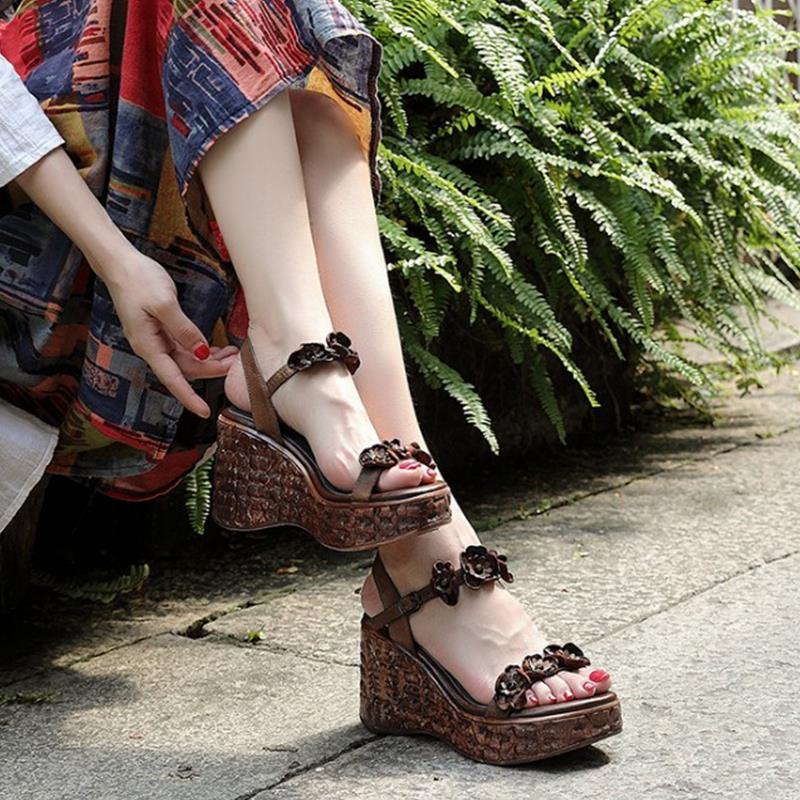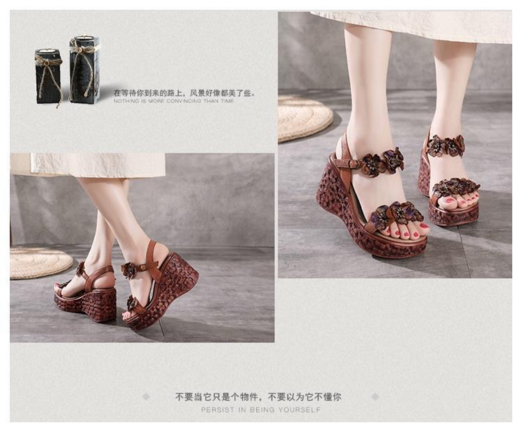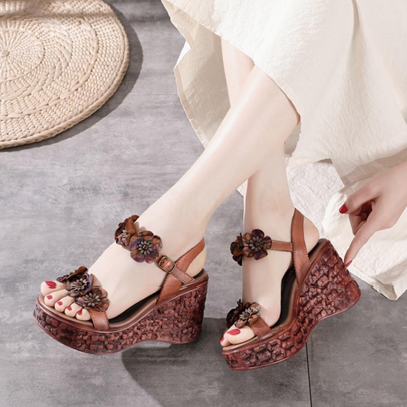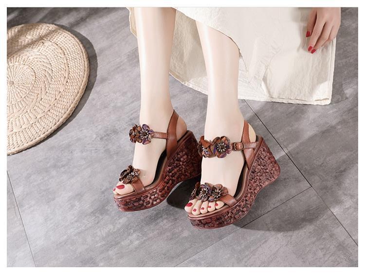 에스닉 스타일 플라워 플랫폼 높이 증가 샌들 여성의 겉옷 2023 여름 새로운 패션 복고풍 웨지 하이힐 여성 신발