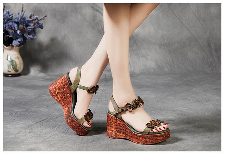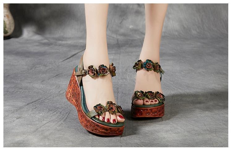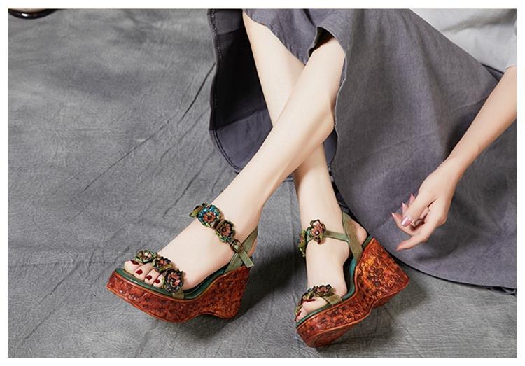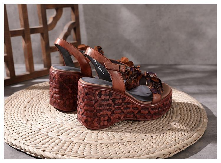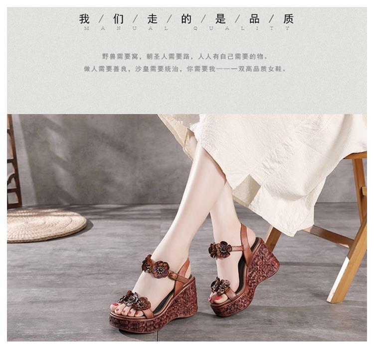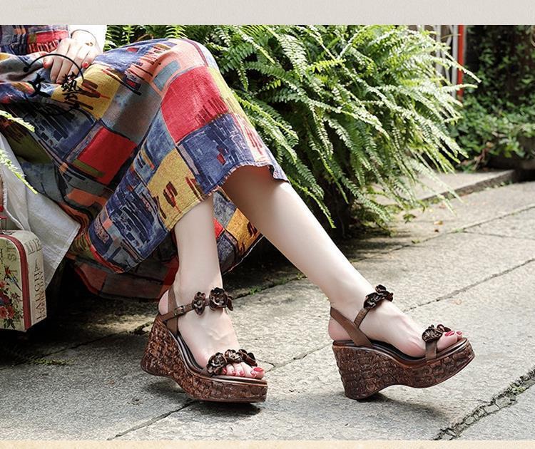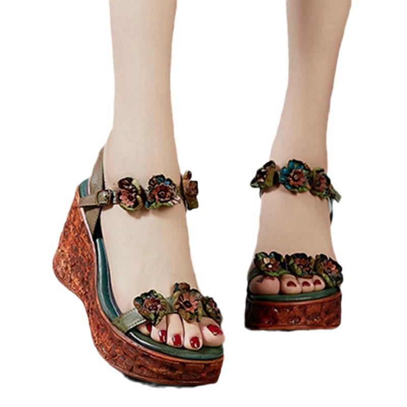 에스닉 스타일 플라워 플랫폼 높이 증가 샌들 여성의 겉옷 2023 여름 새로운 패션 복고풍 웨지 하이힐 여성 신발