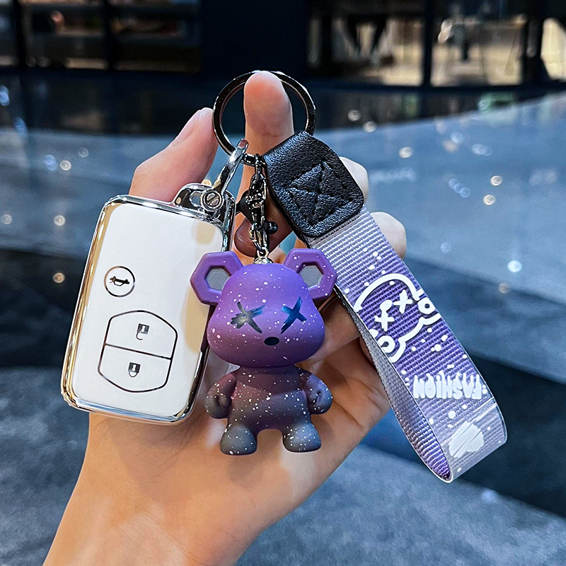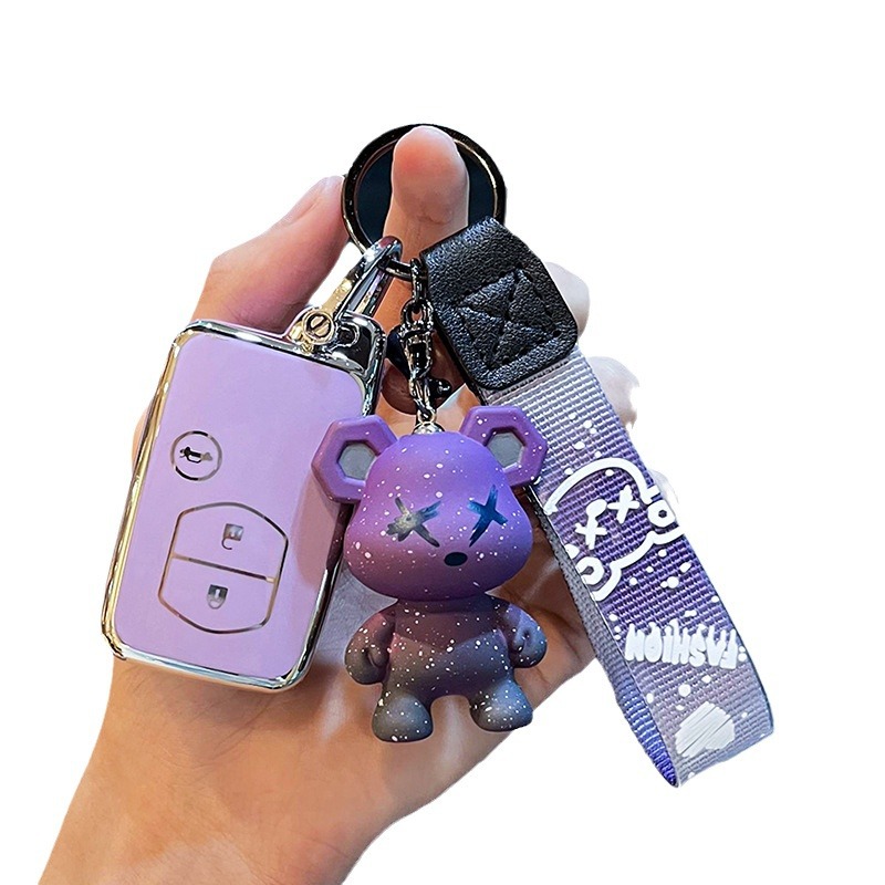 도요타 I-스마트 4 키 [싱글 쉘 퍼플] + 퍼플 난폭한 곰 펜던트