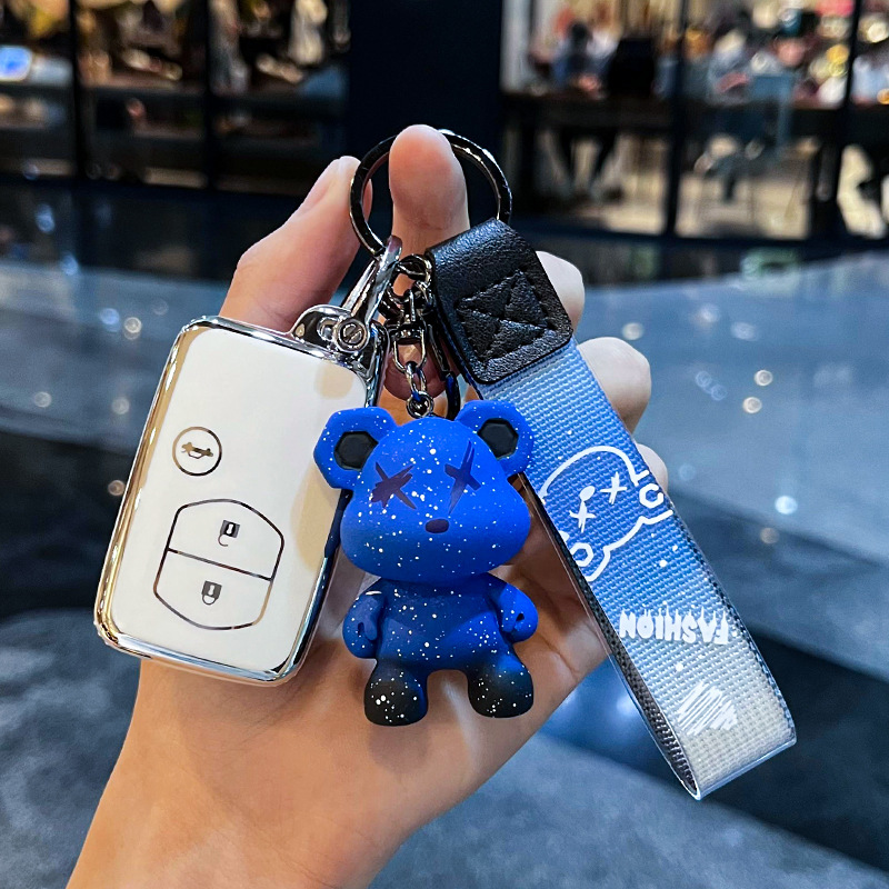 도요타 I-스마트 4 키 [싱글 쉘 화이트] + 블루 폭력 곰 펜던트