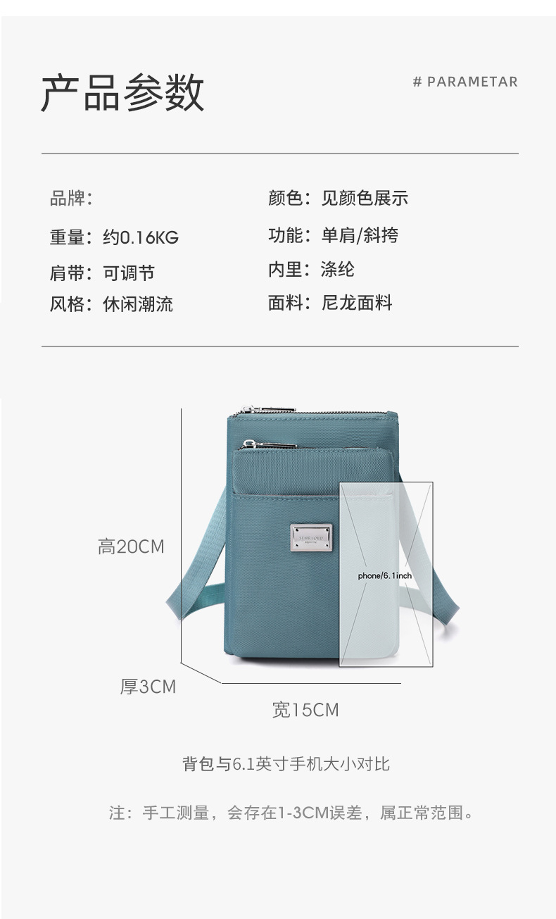 크로스보더 신상 여성 가방 나일론 패션 스몰 스퀘어백 숄더백 크로스백 여성 가방 경량 휴대폰 가방 동전 지갑