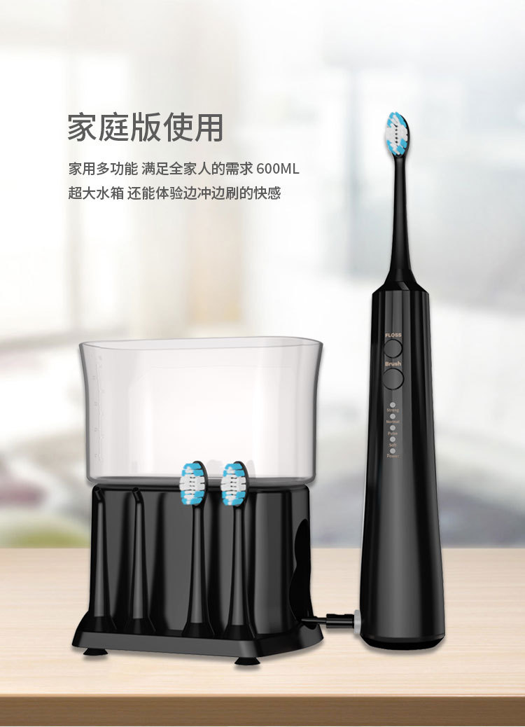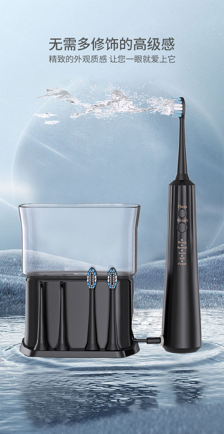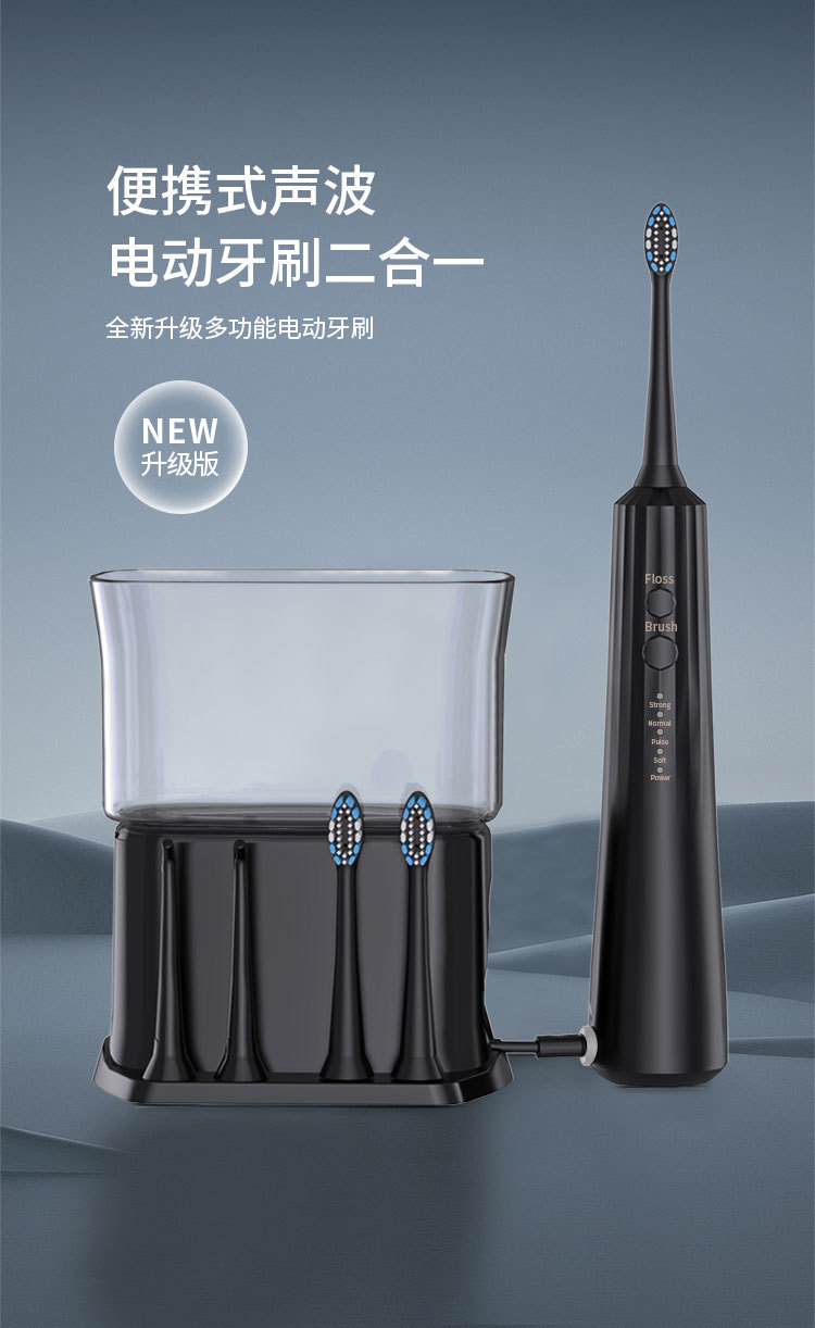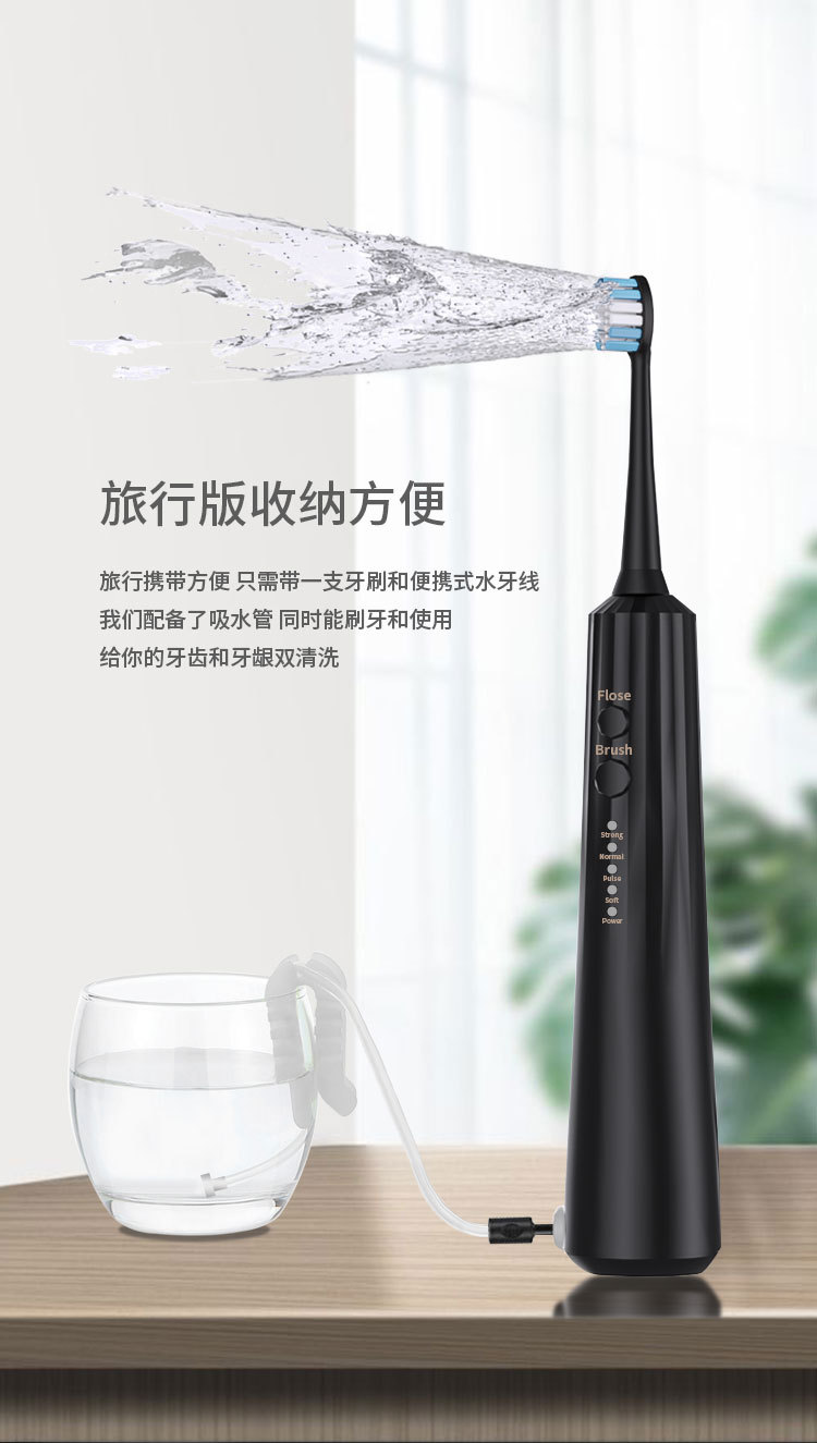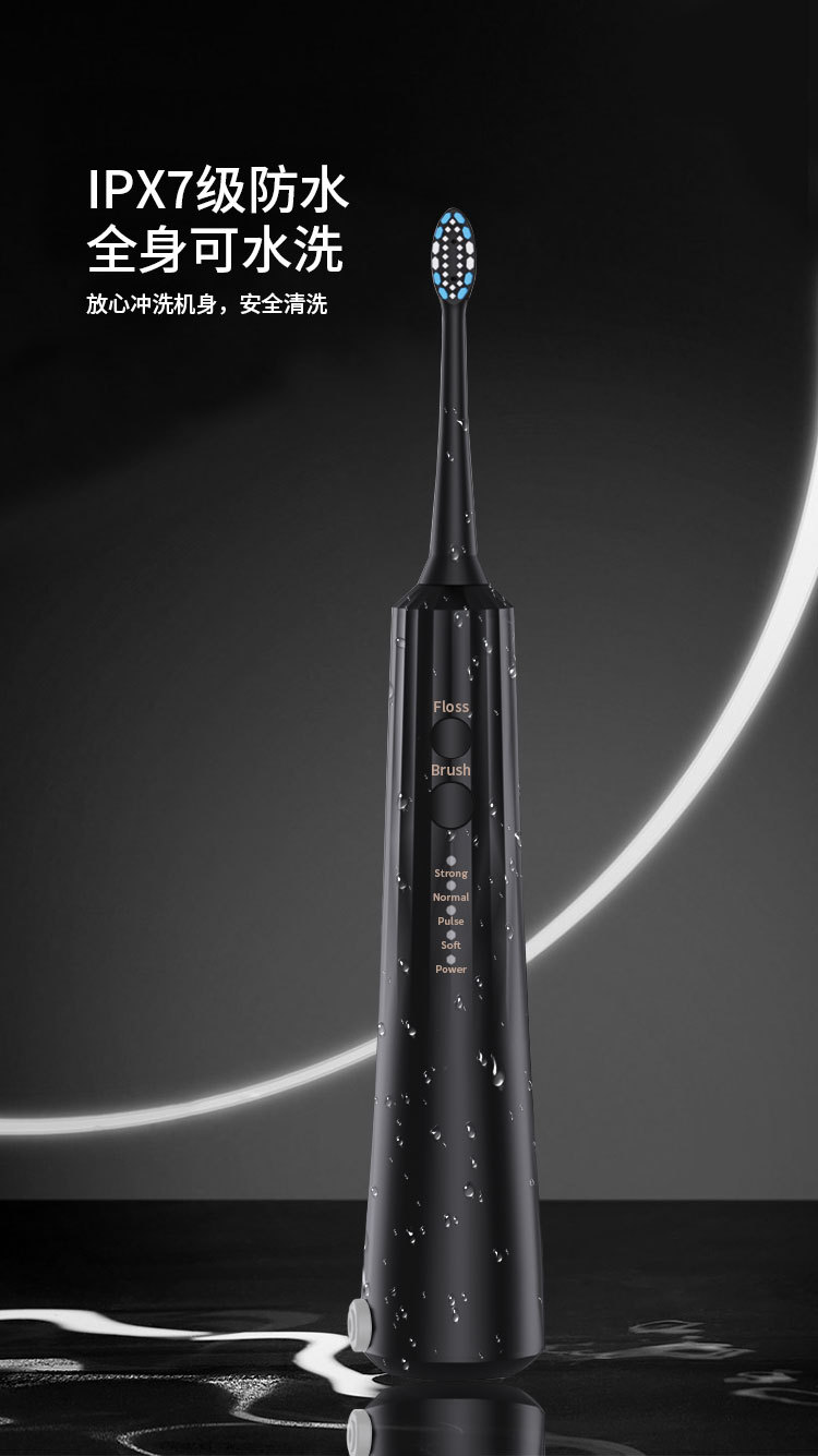새로운 음파 칫솔과 물세정기 일체형 2-in-1 전동 휴대용 대용량 구강세정기, 긴 배터리 수명
