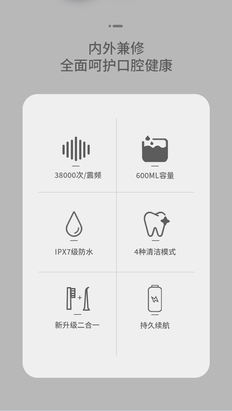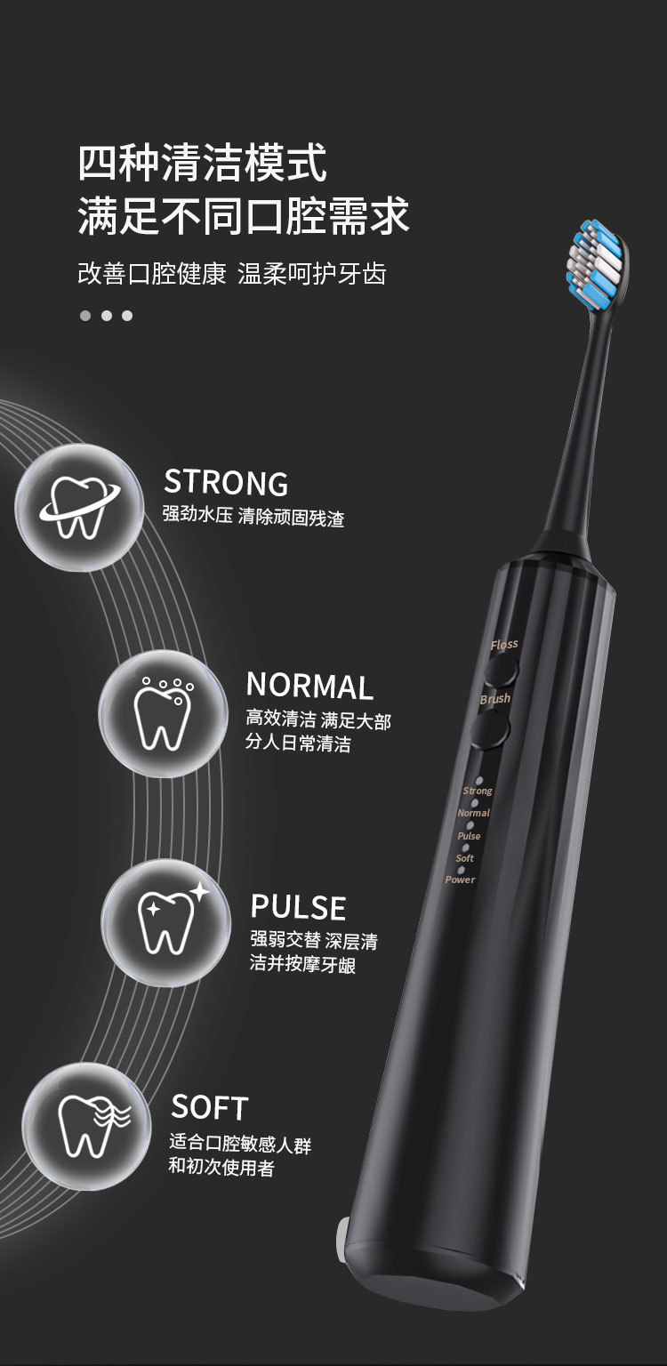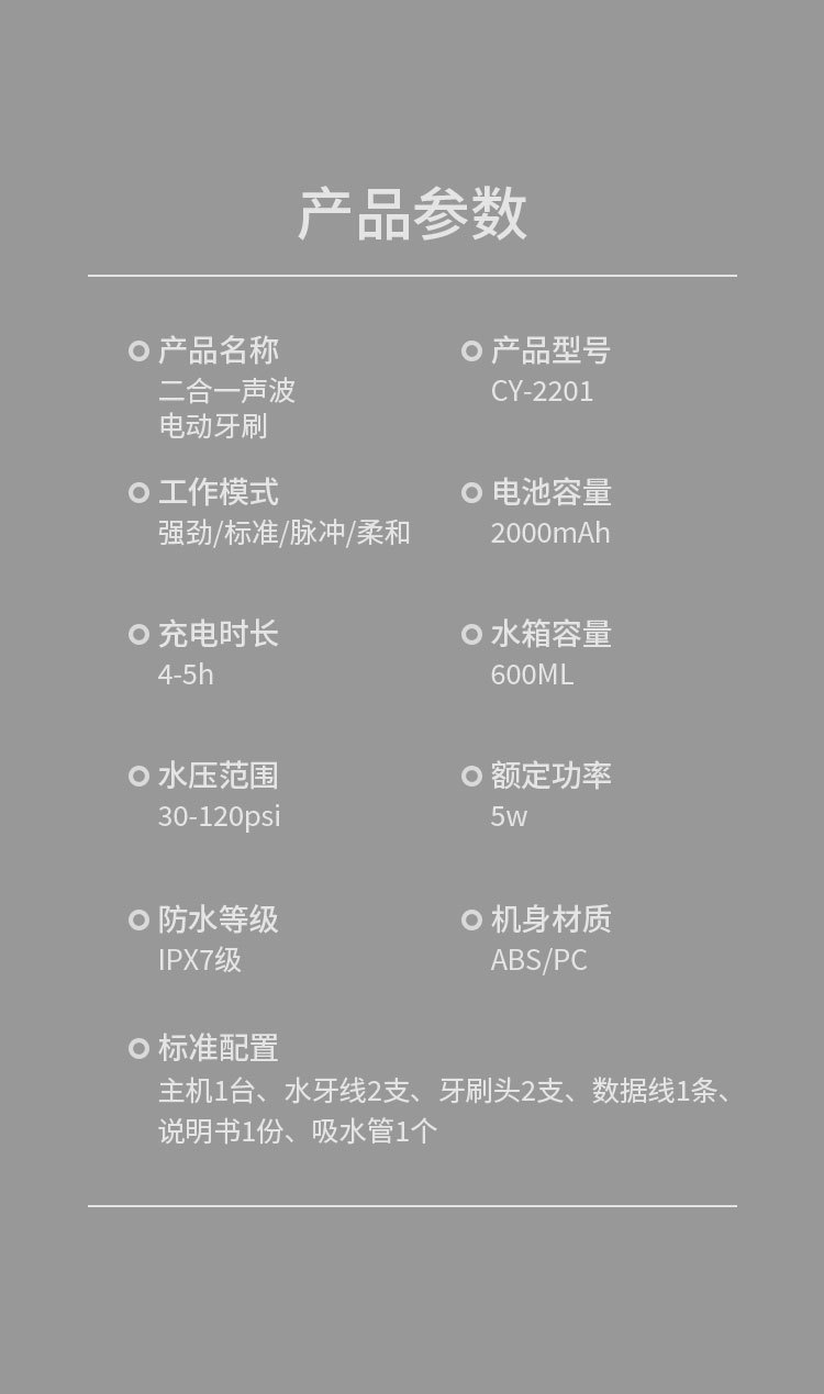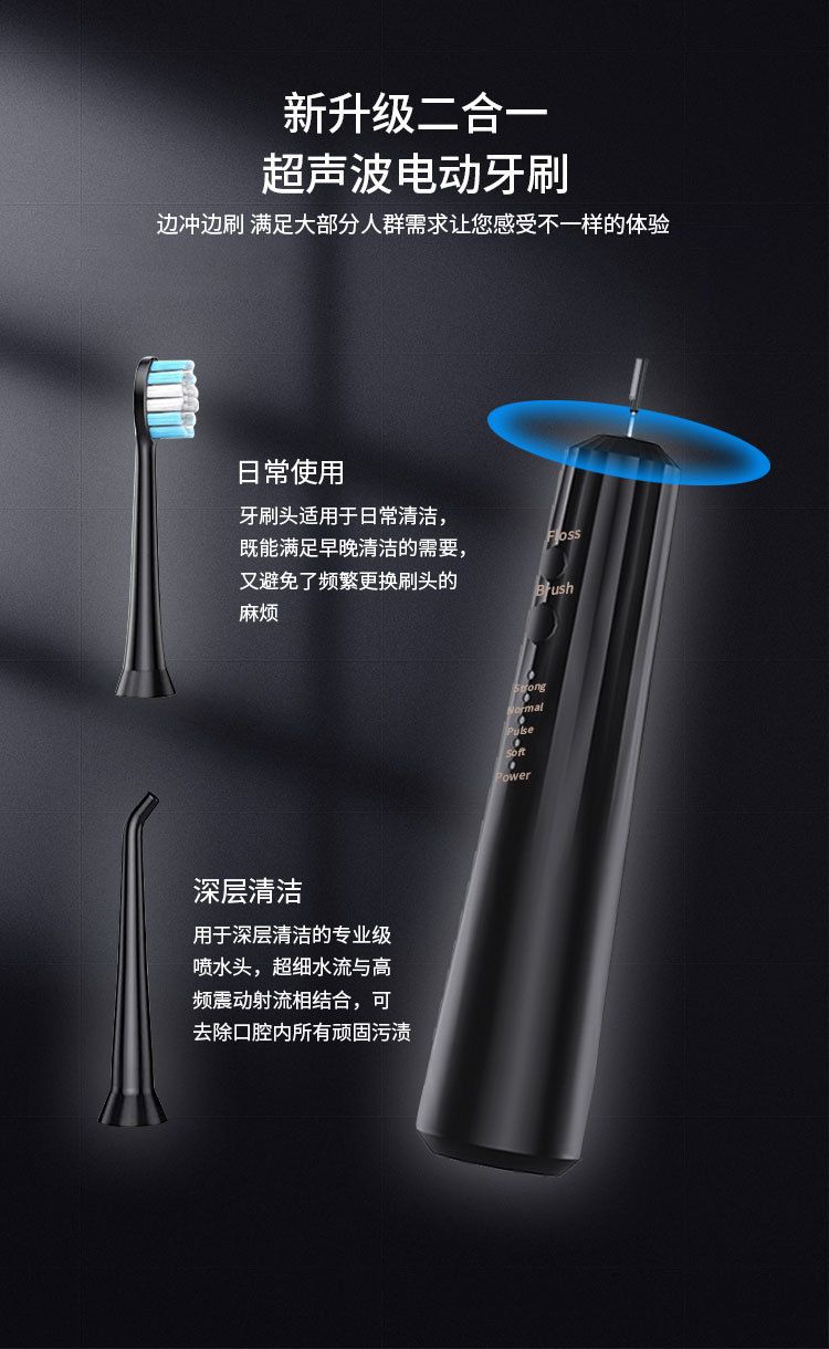 새로운 음파 칫솔과 물세정기 일체형 2-in-1 전동 휴대용 대용량 구강세정기, 긴 배터리 수명
