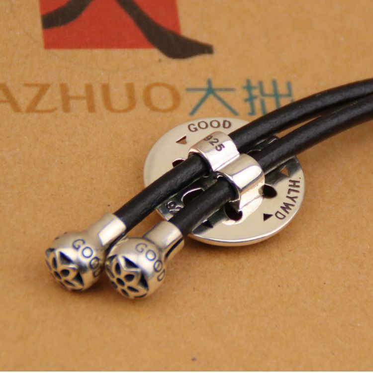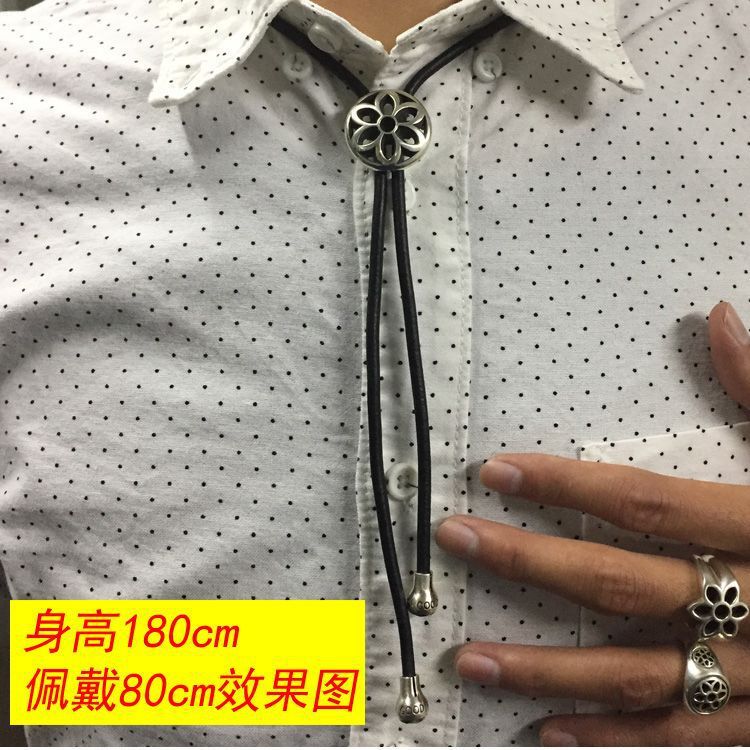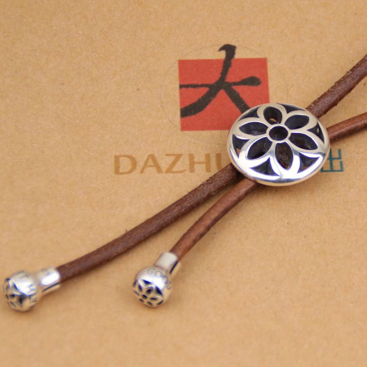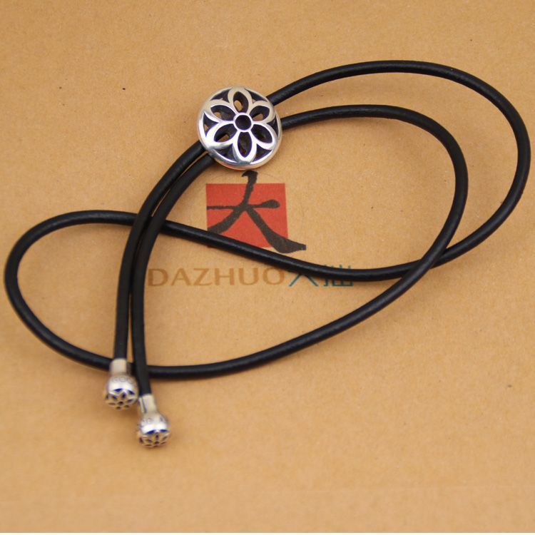 좋은 예술 큰 벚꽃 폴로 나비 넥타이 가죽 코드 넥타이 925 스털링 실버 좋은 예술 펜던트 목걸이