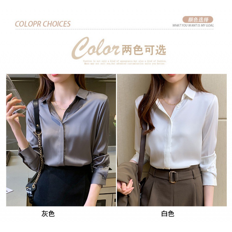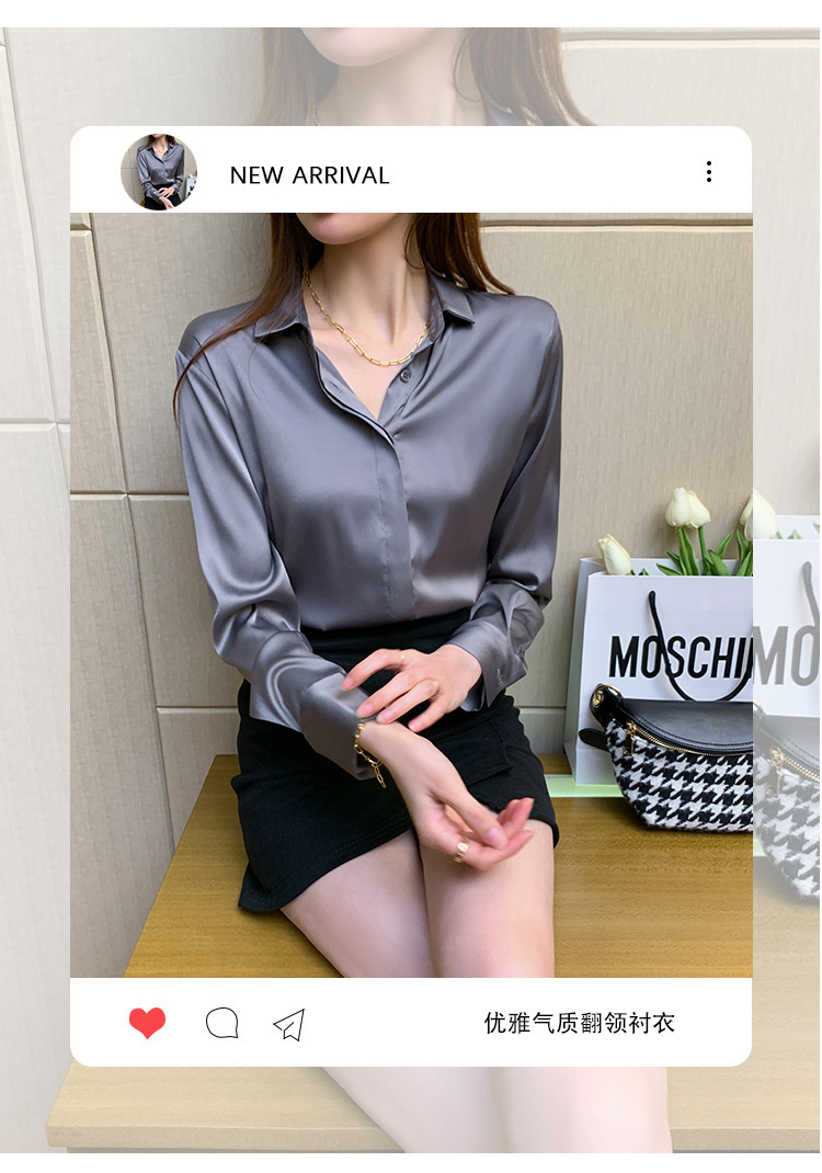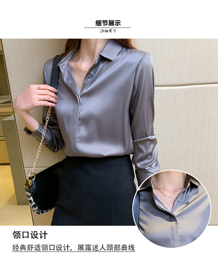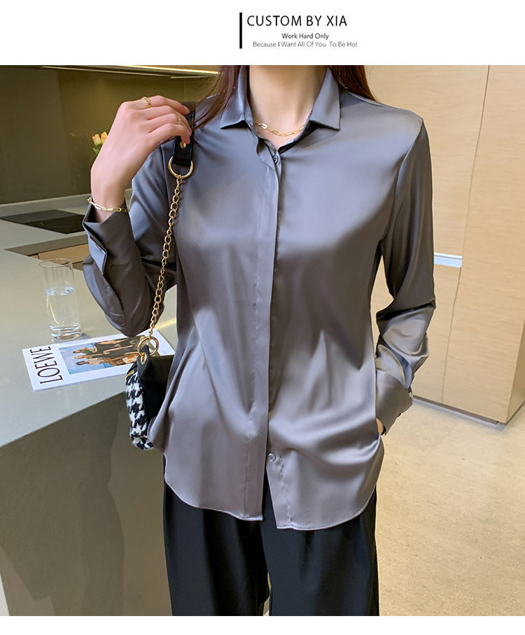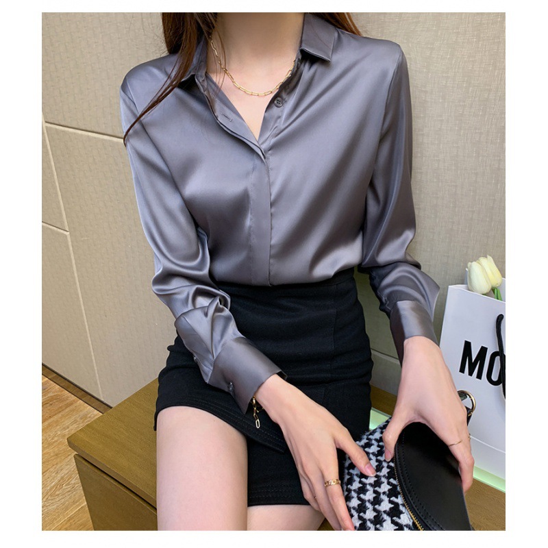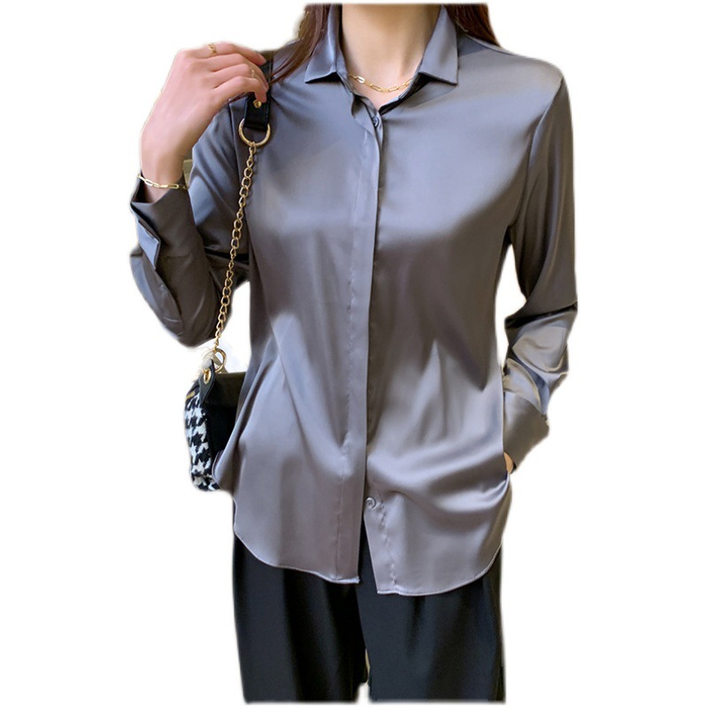 크로스 보더 가을 새틴 긴팔 셔츠 여성의 디자인 감각 틈새 빛 성숙한 홍콩 스타일 전문 통근 쉬폰 셔츠 여성