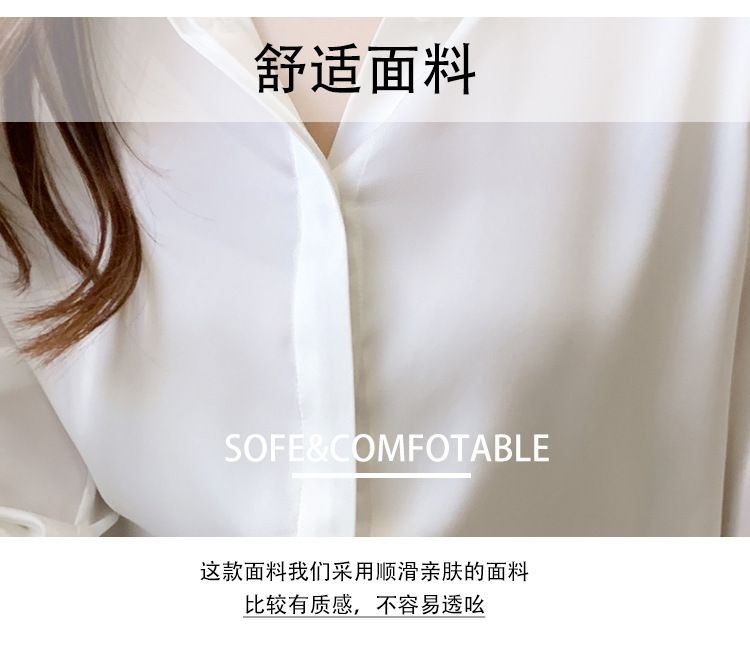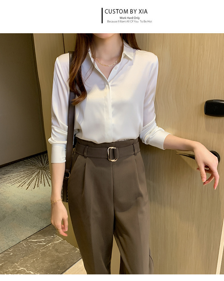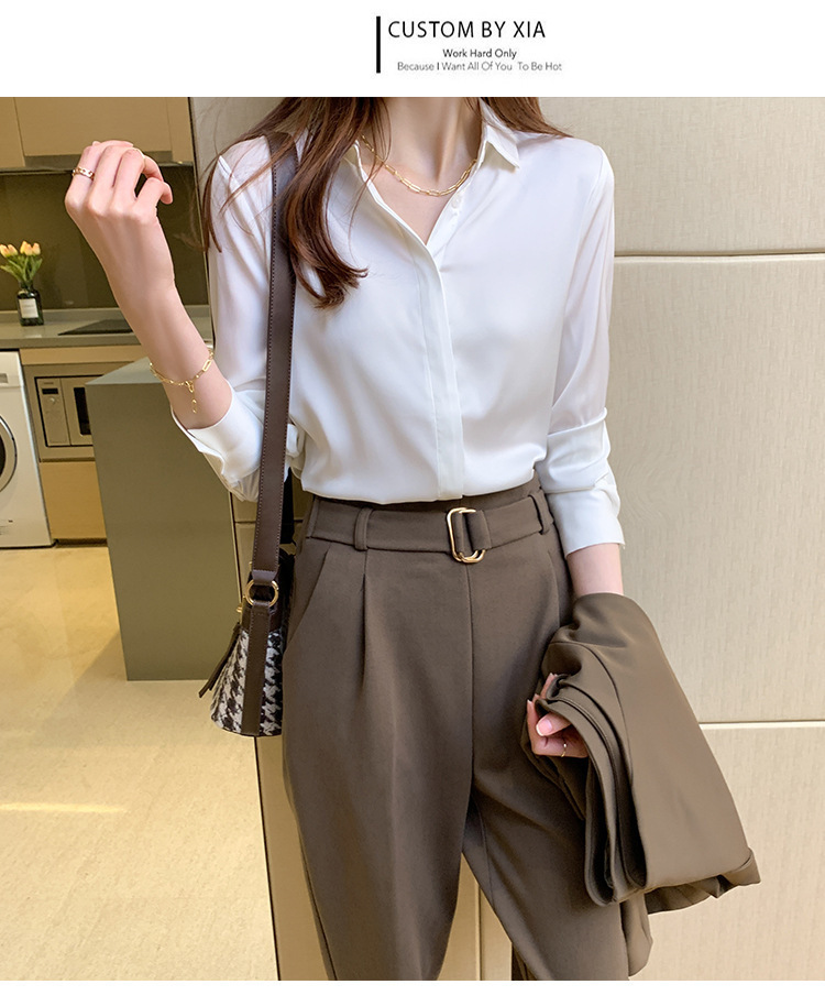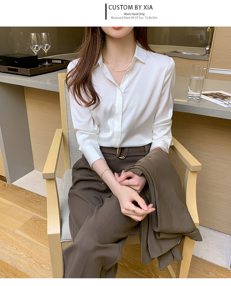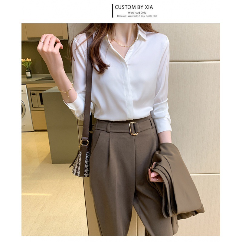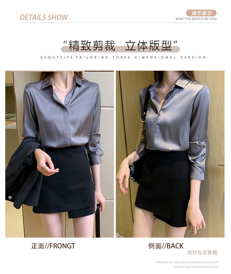 크로스 보더 가을 새틴 긴팔 셔츠 여성의 디자인 감각 틈새 빛 성숙한 홍콩 스타일 전문 통근 쉬폰 셔츠 여성