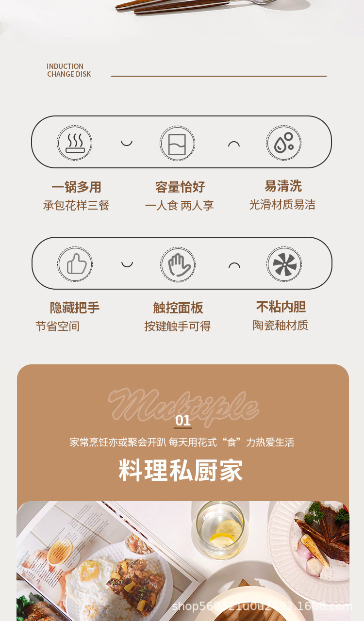 전기 냄비 전기 프라이팬 가정용 요리 기숙사 소형 자동 붙지 않는 밥솥 끓는 튀김 및 조림 통합 전기 냄비