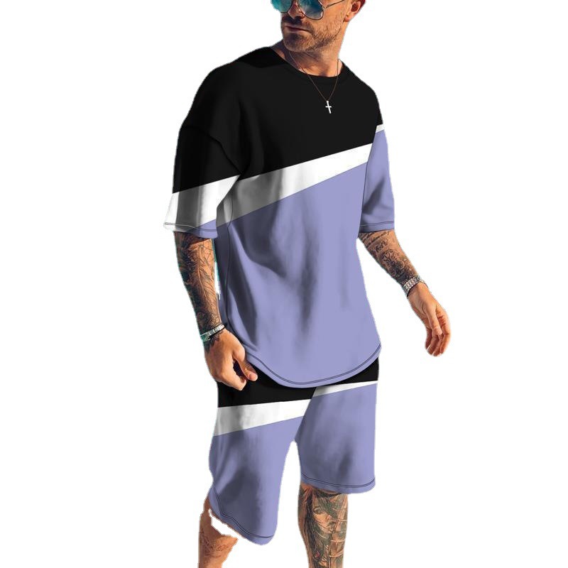 2023 유럽과 미국의 국경 여름 남성 패션 캐주얼 해변 스타일 질감 3D 디지털 인쇄 티셔츠 반바지 세트