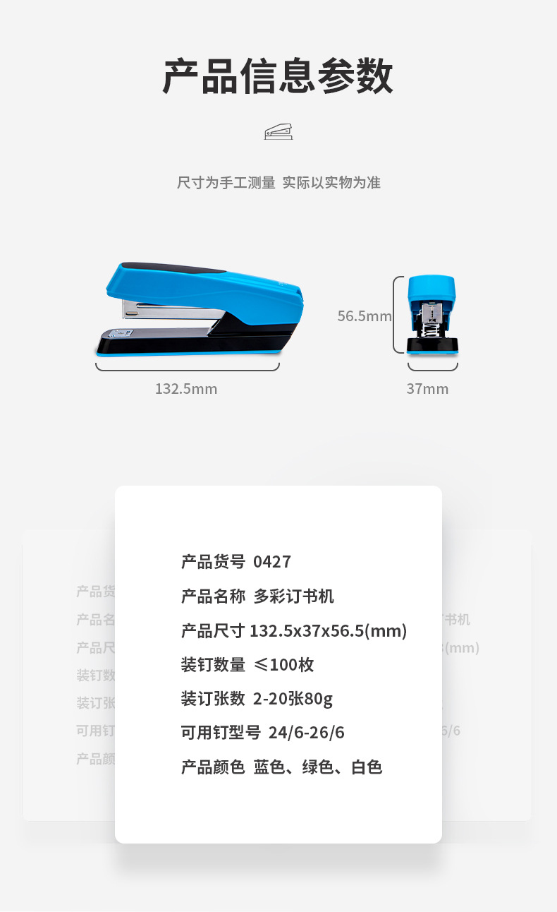 델리 0427 패션 컬러 노동 절약 스테이플러 12 바늘 중형 표준 스테이플러 사무용품